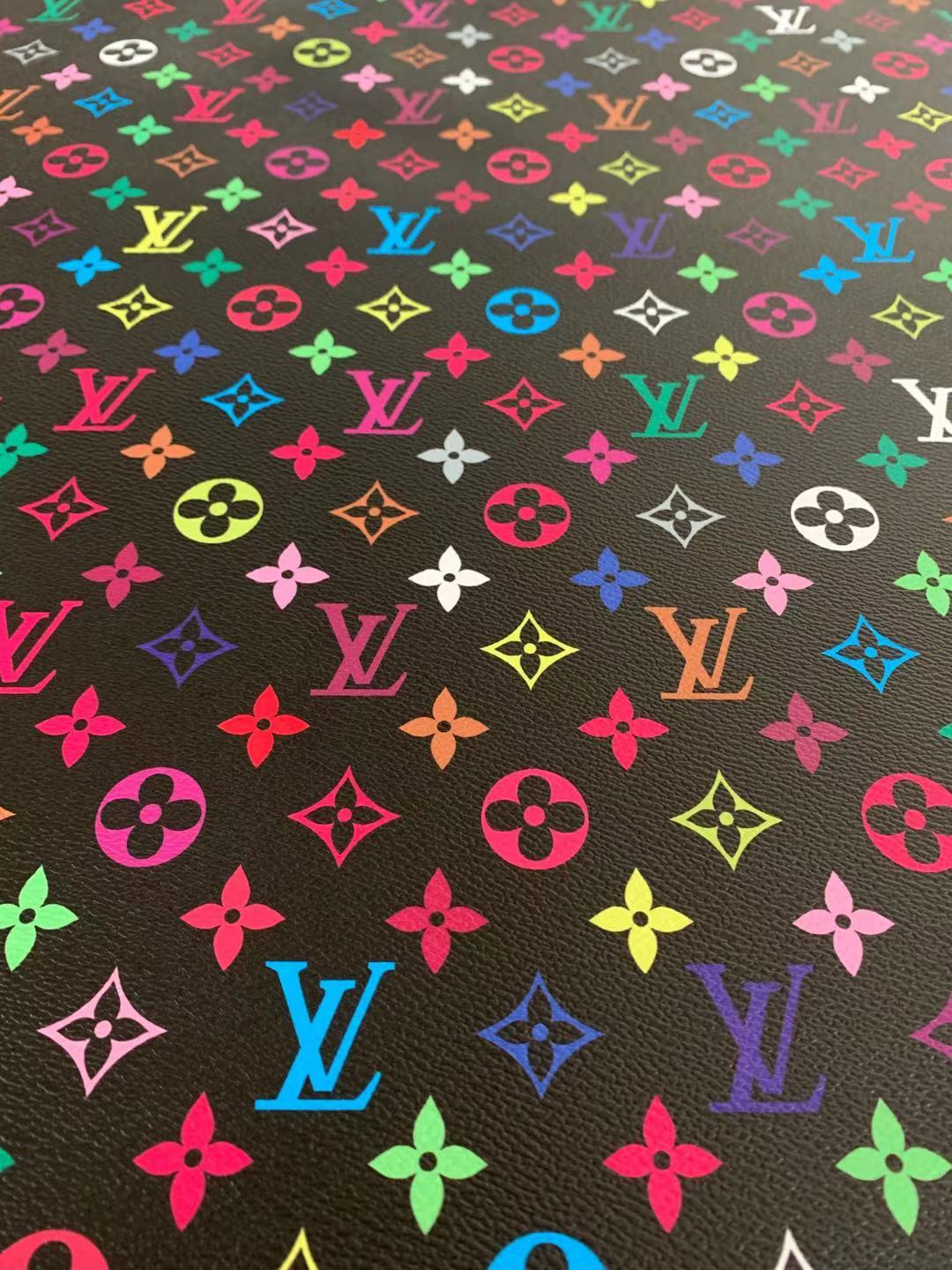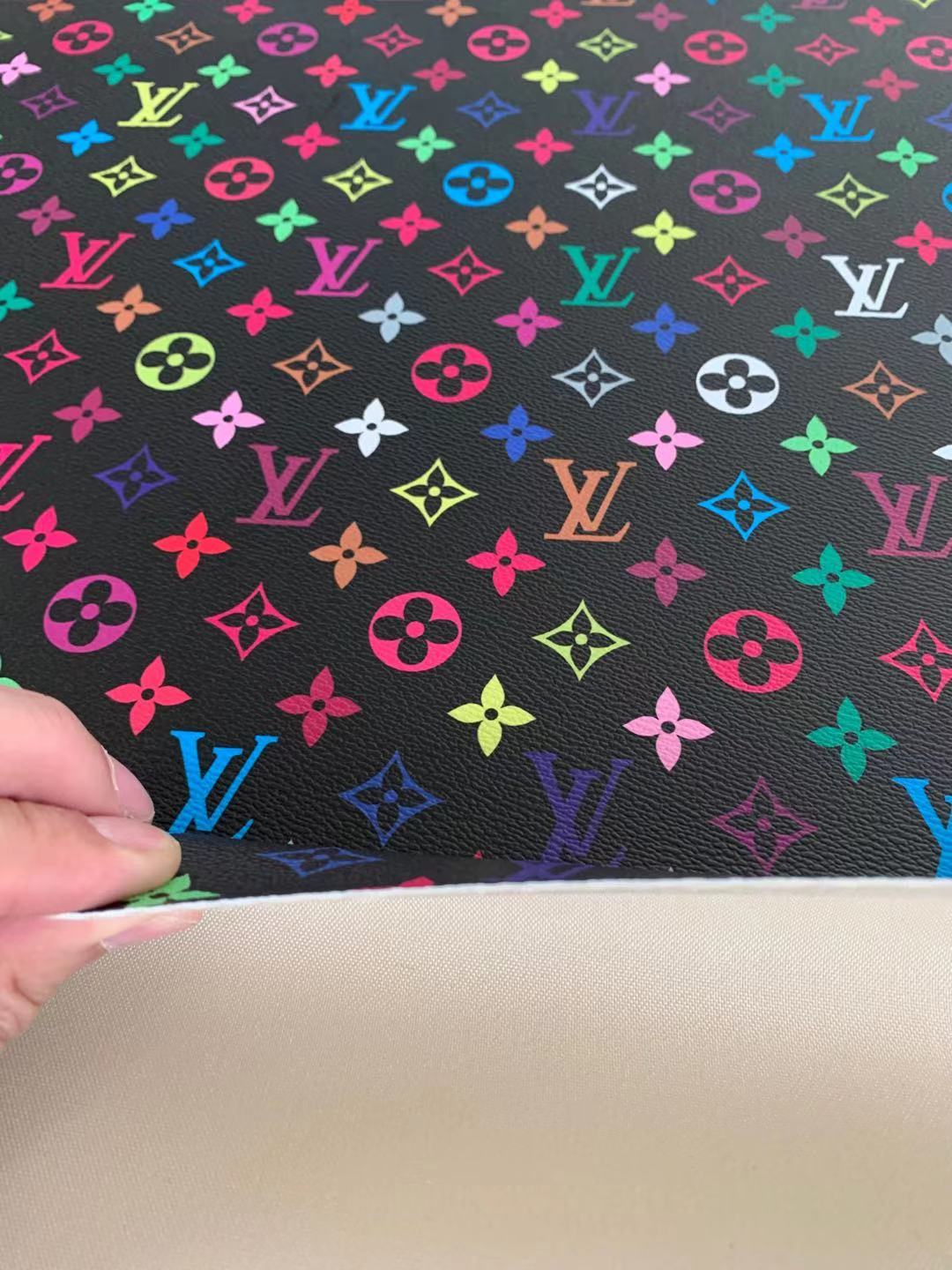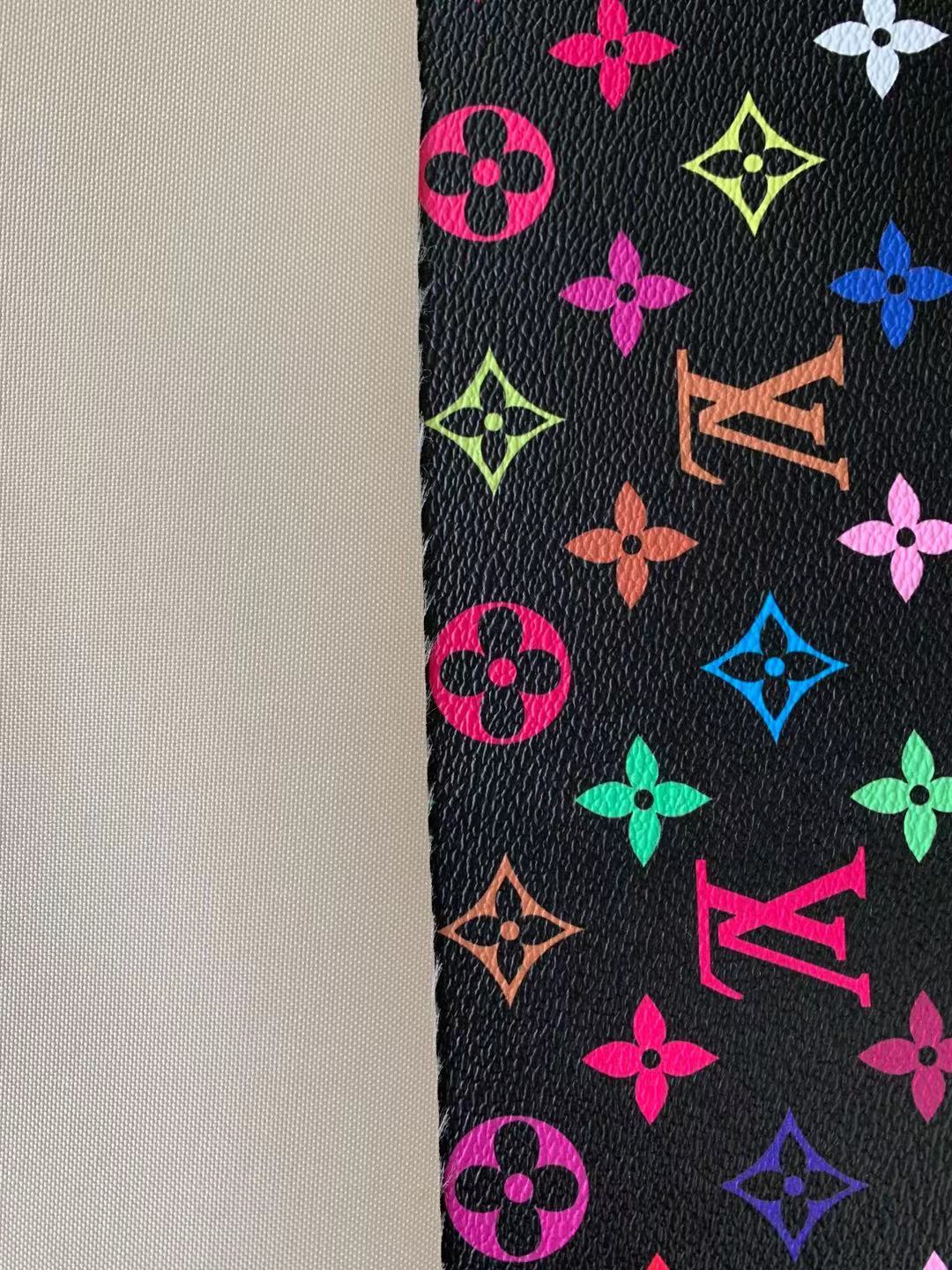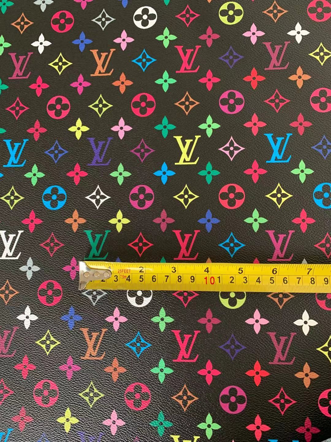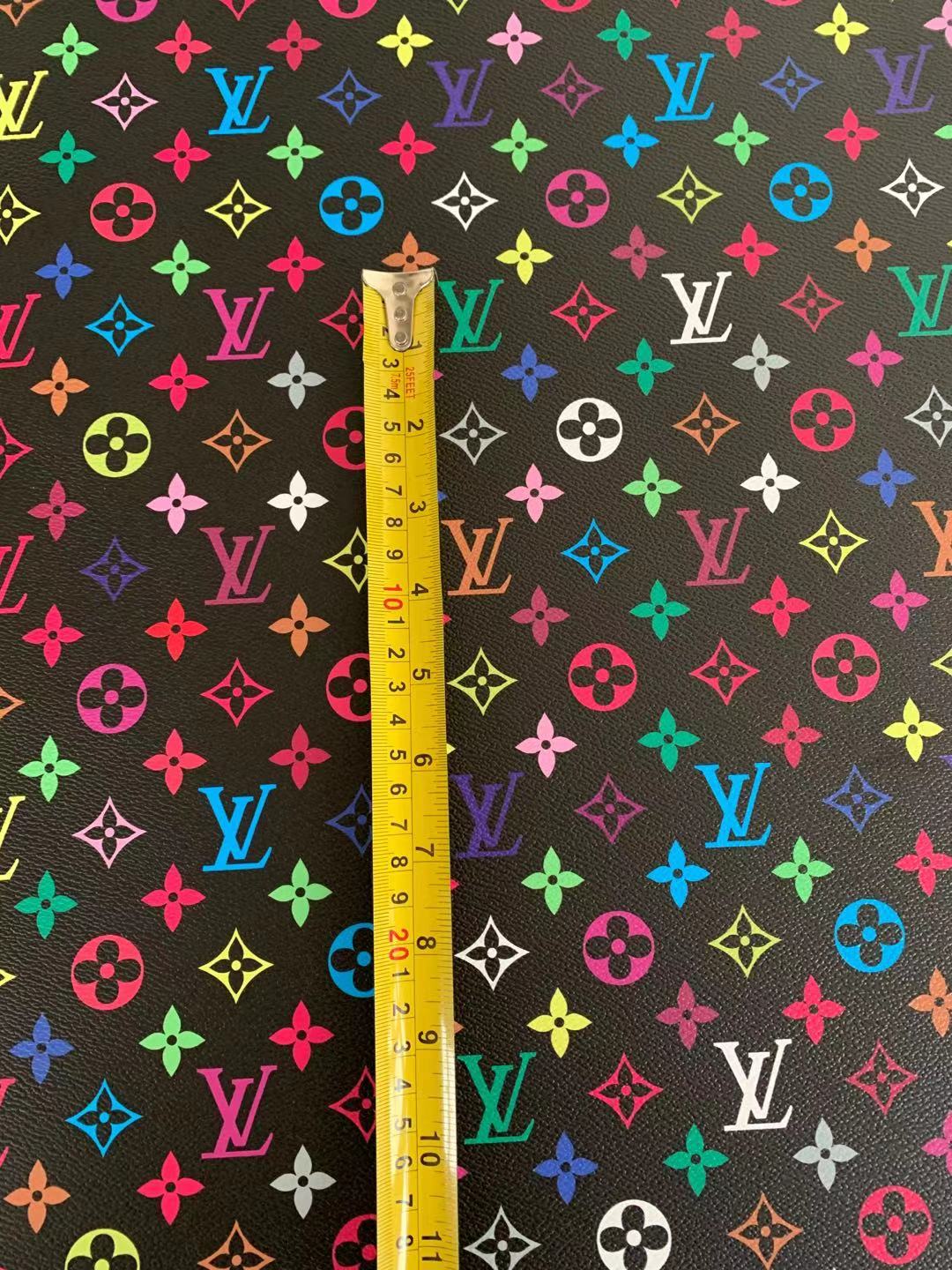 Fashion LV vinyl crafting leather fabric For Handmade Bags Shoe and DIY Handicrafts By Yard (Colorful Black)
