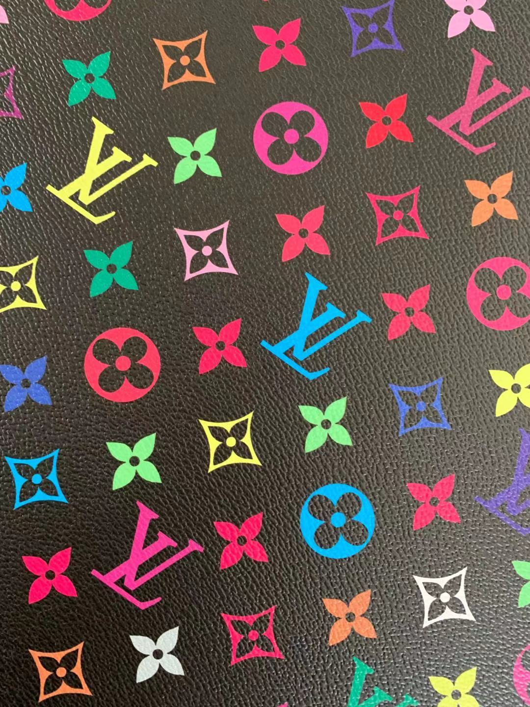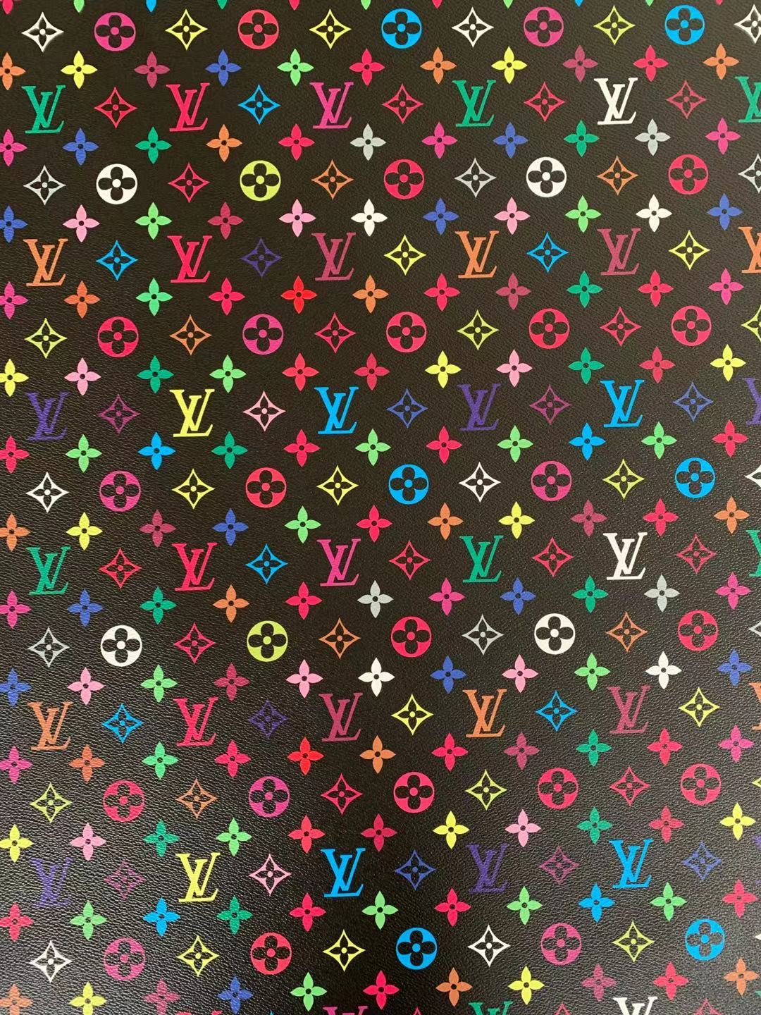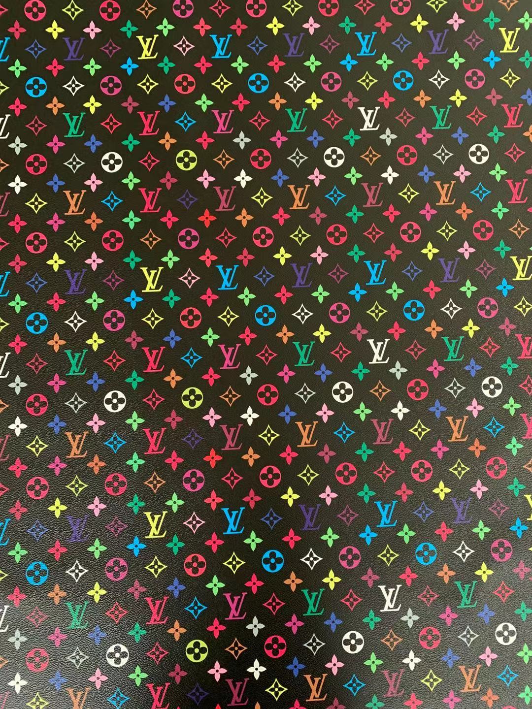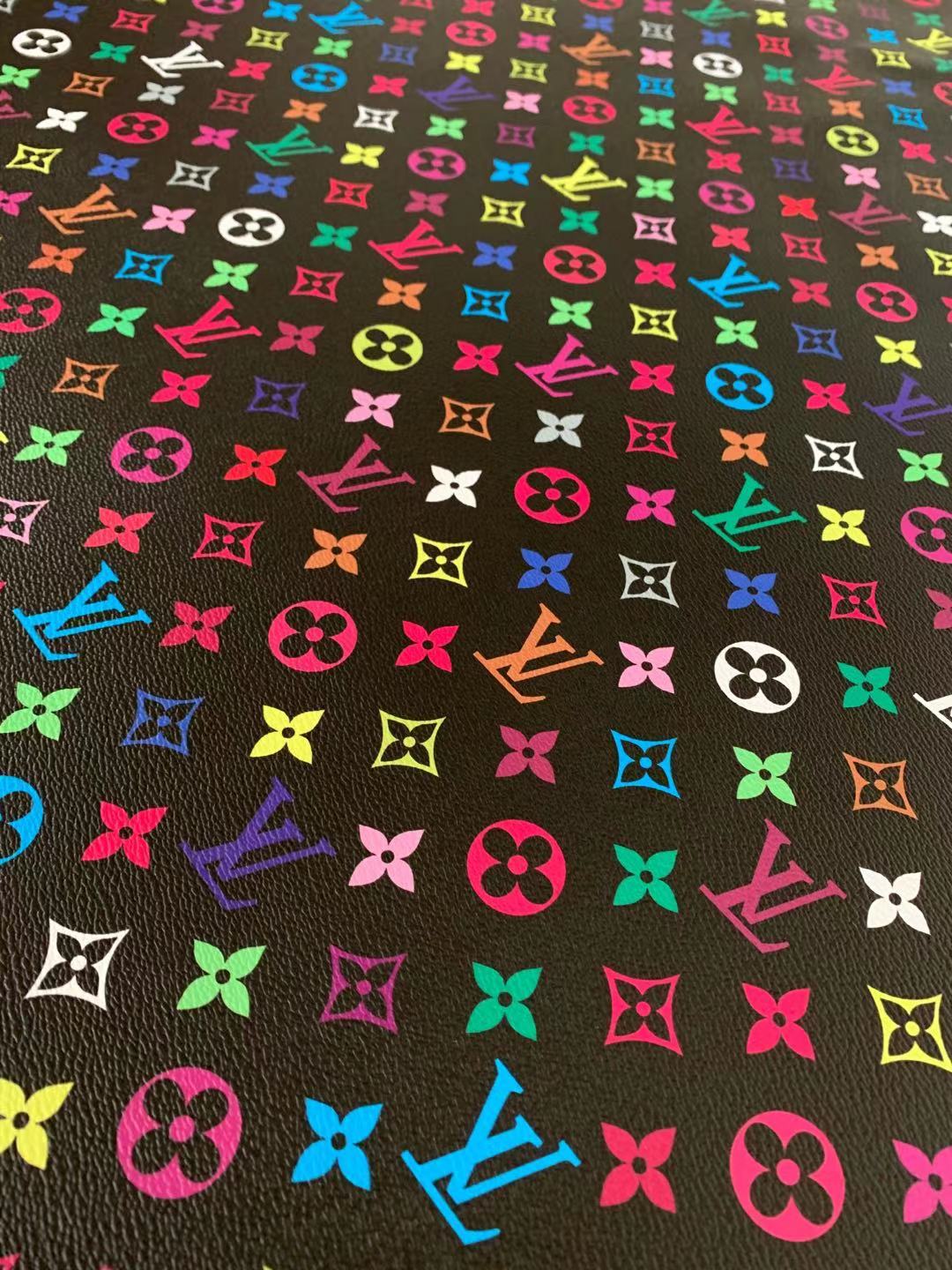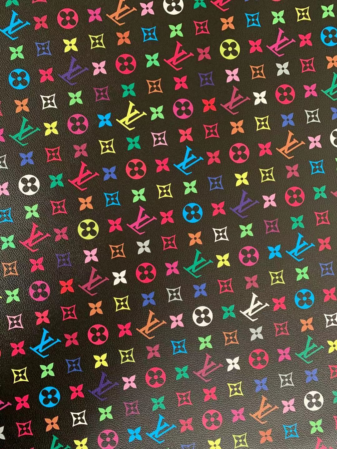 Fashion LV vinyl crafting leather fabric For Handmade Bags Shoe and DIY Handicrafts By Yard (Colorful Black)