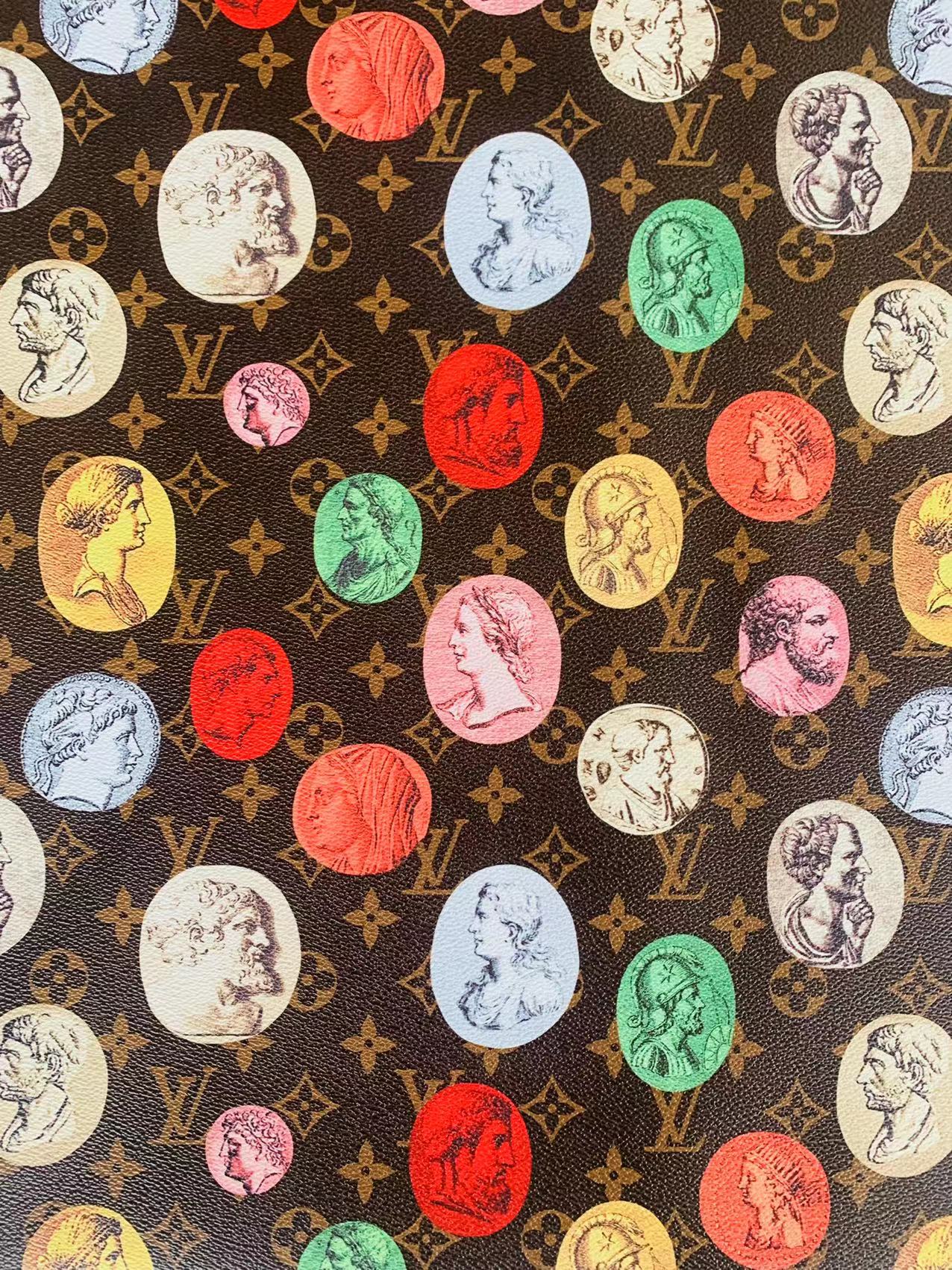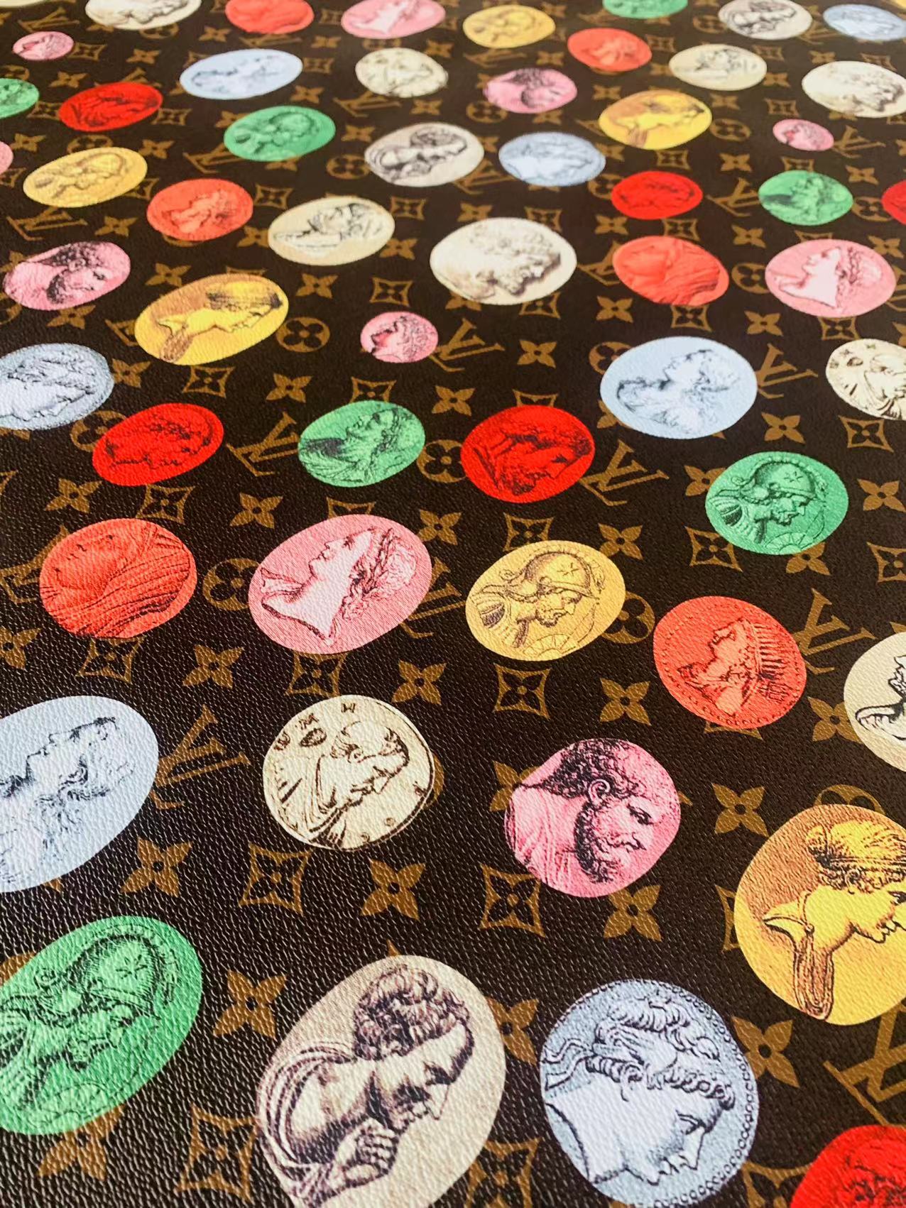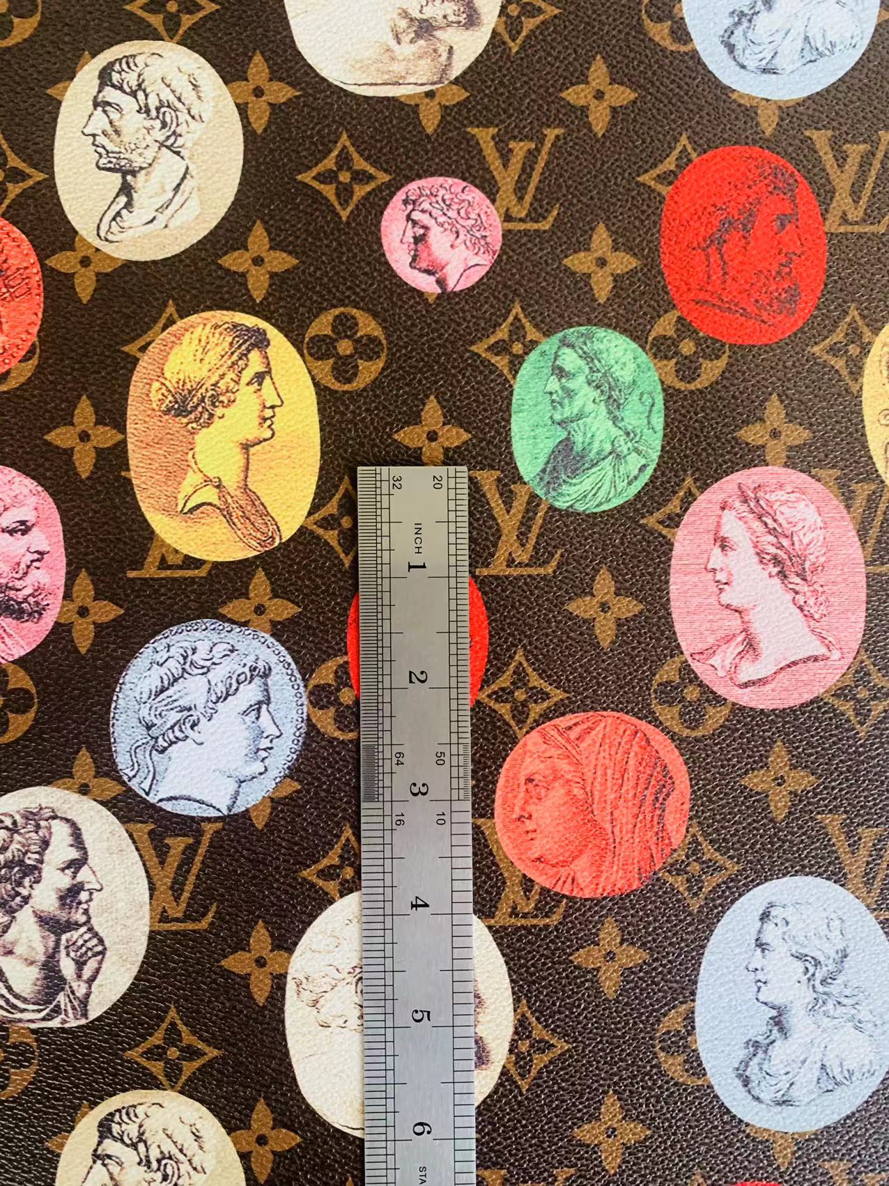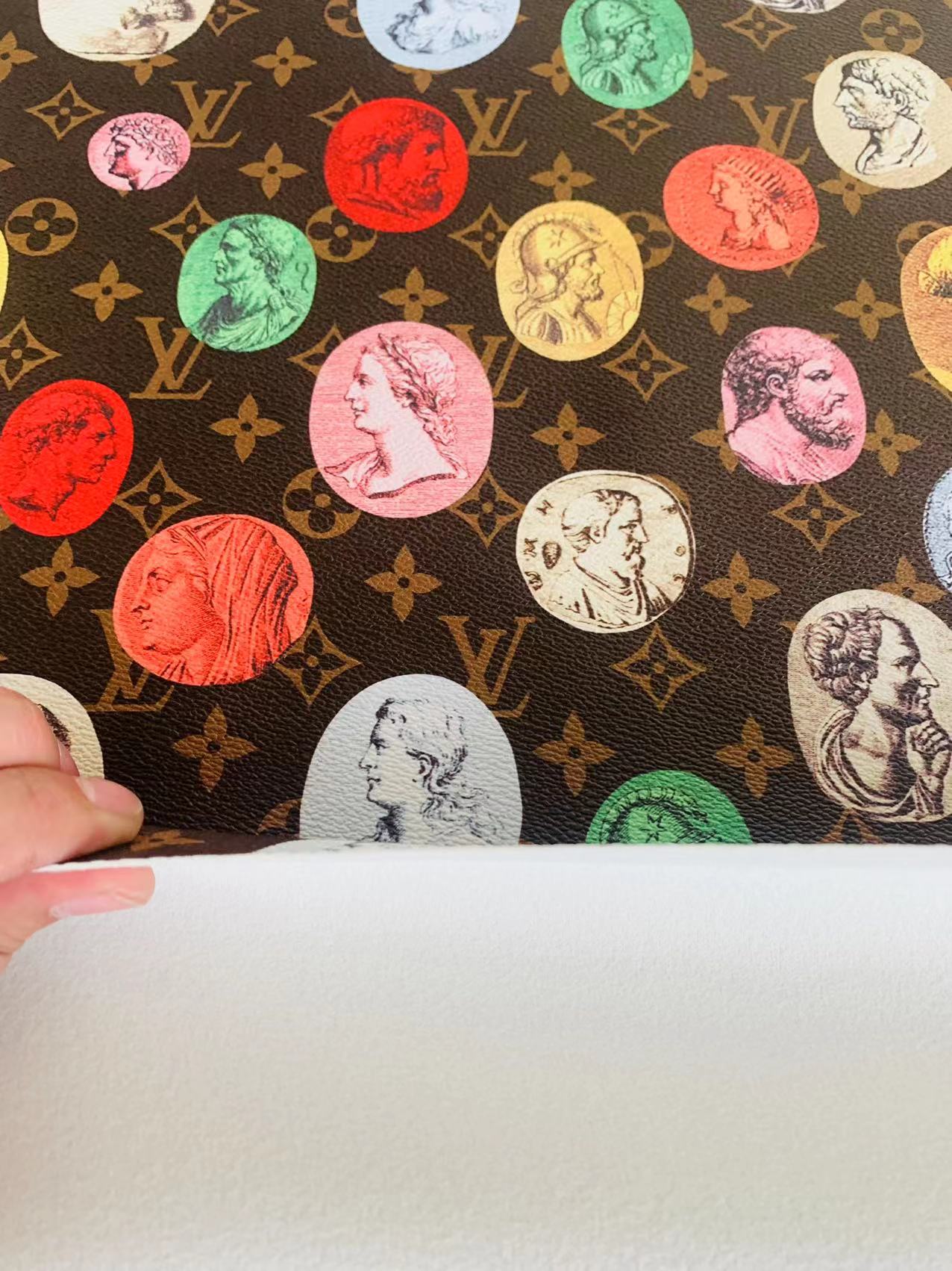CLASSIC LV With Character Leather Case Fabric, Handmade Bag Fabric, Handmade Shoes Fabric BY YARD