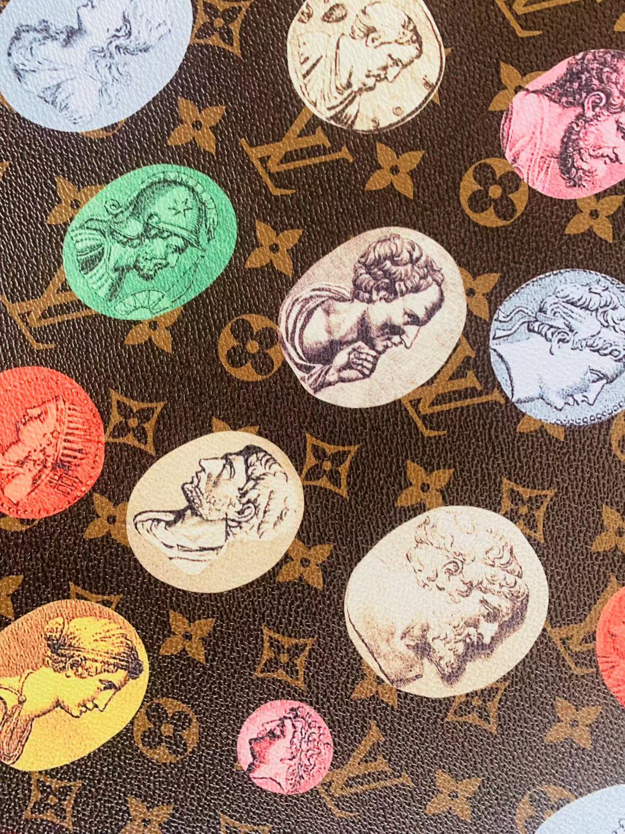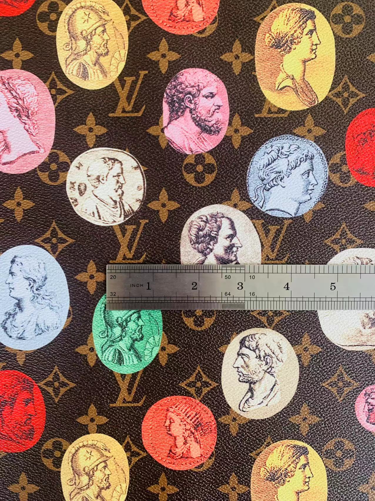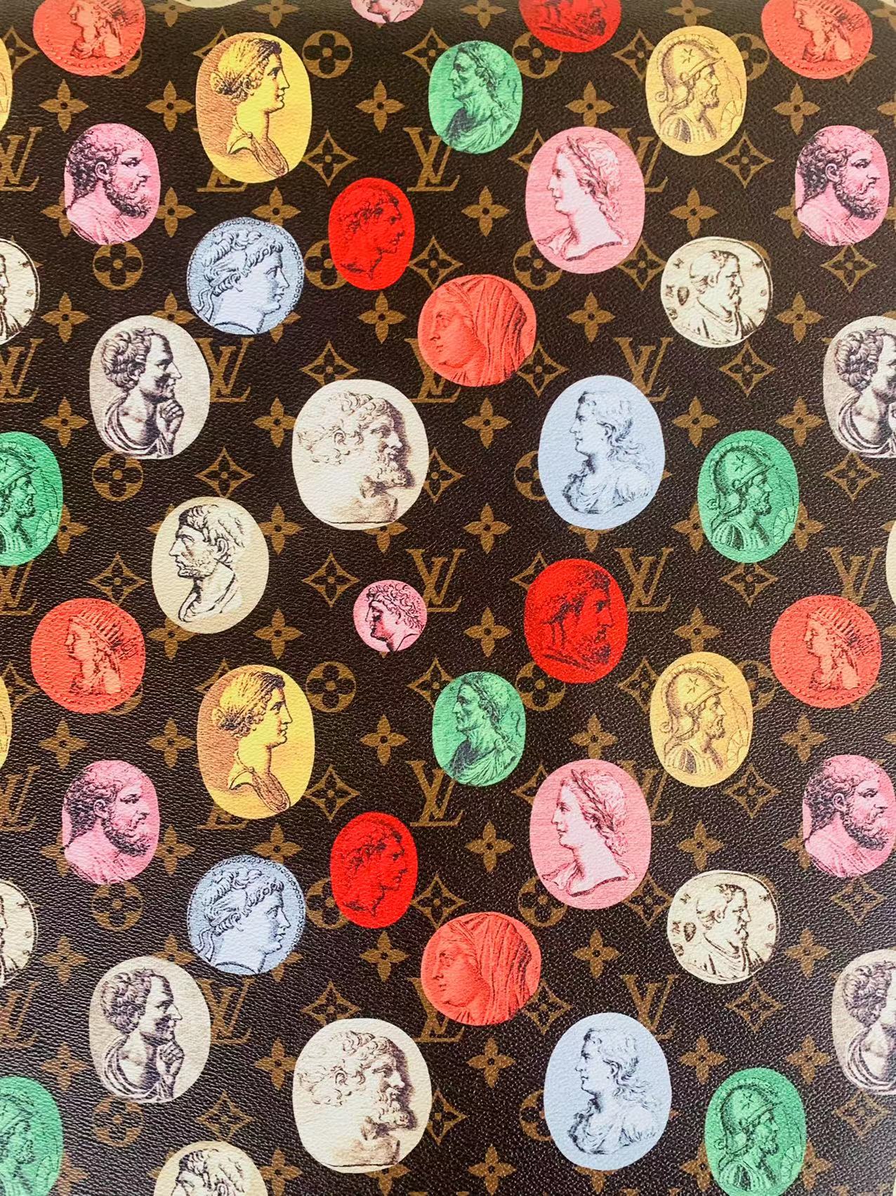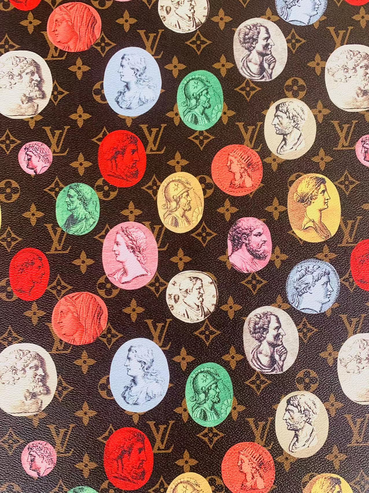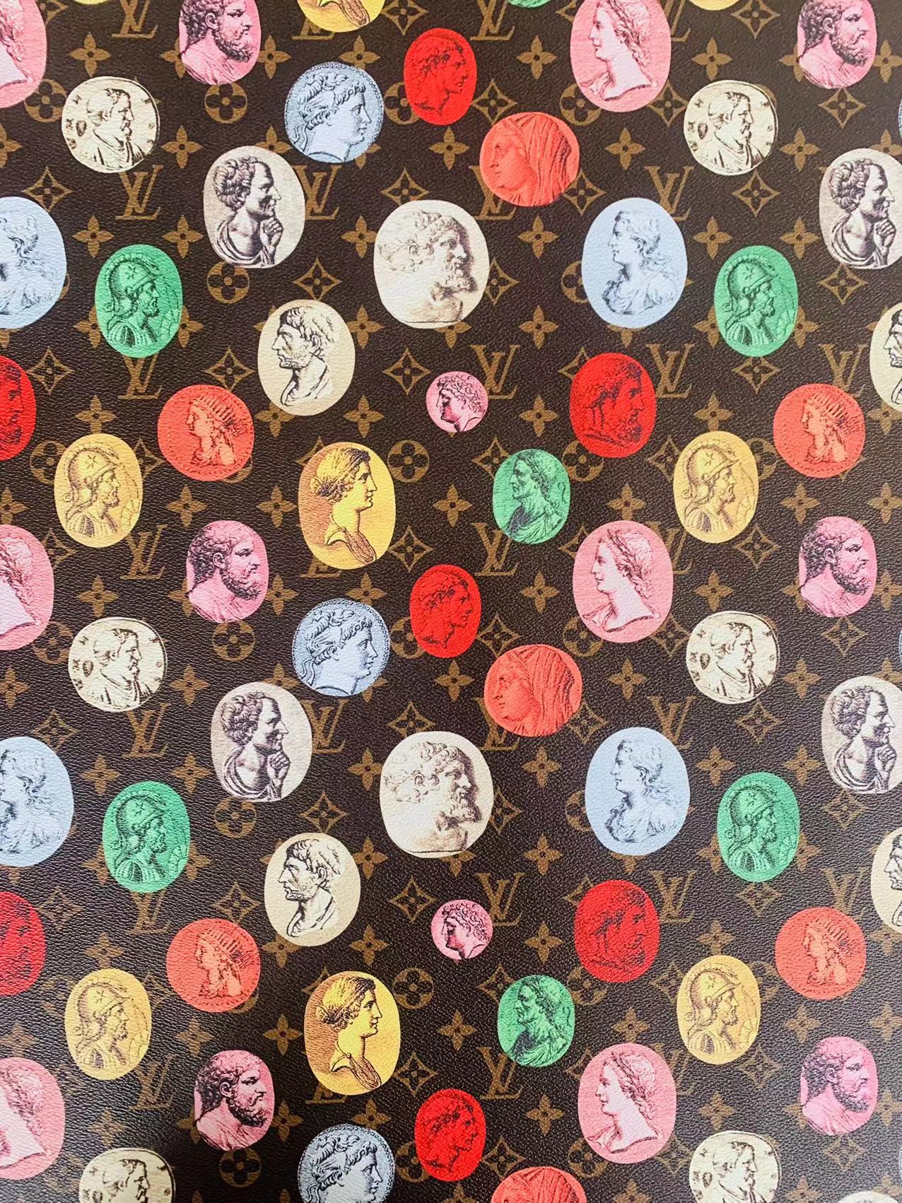 CLASSIC LV With Character Leather Case Fabric, Handmade Bag Fabric, Handmade Shoes Fabric BY YARD