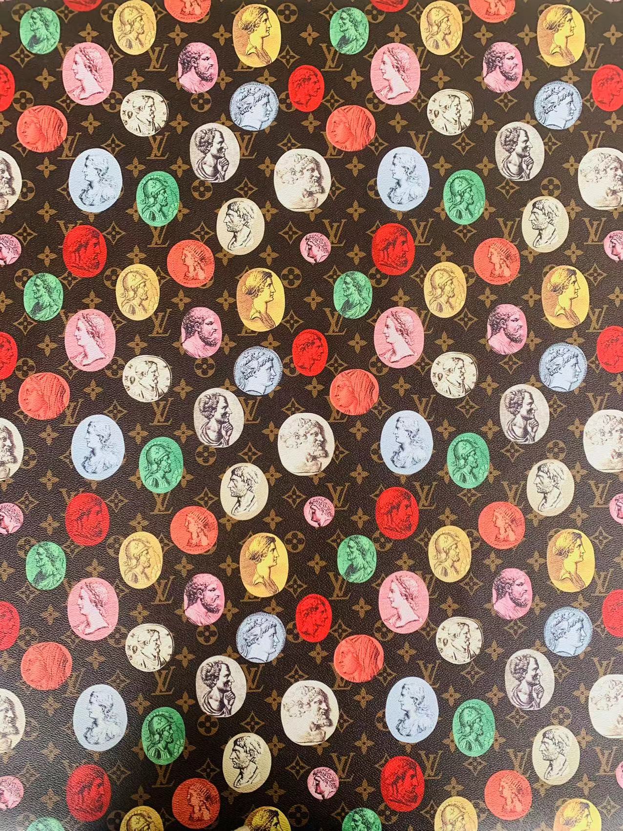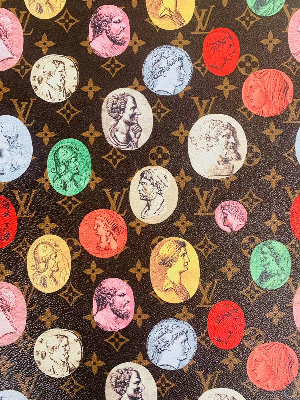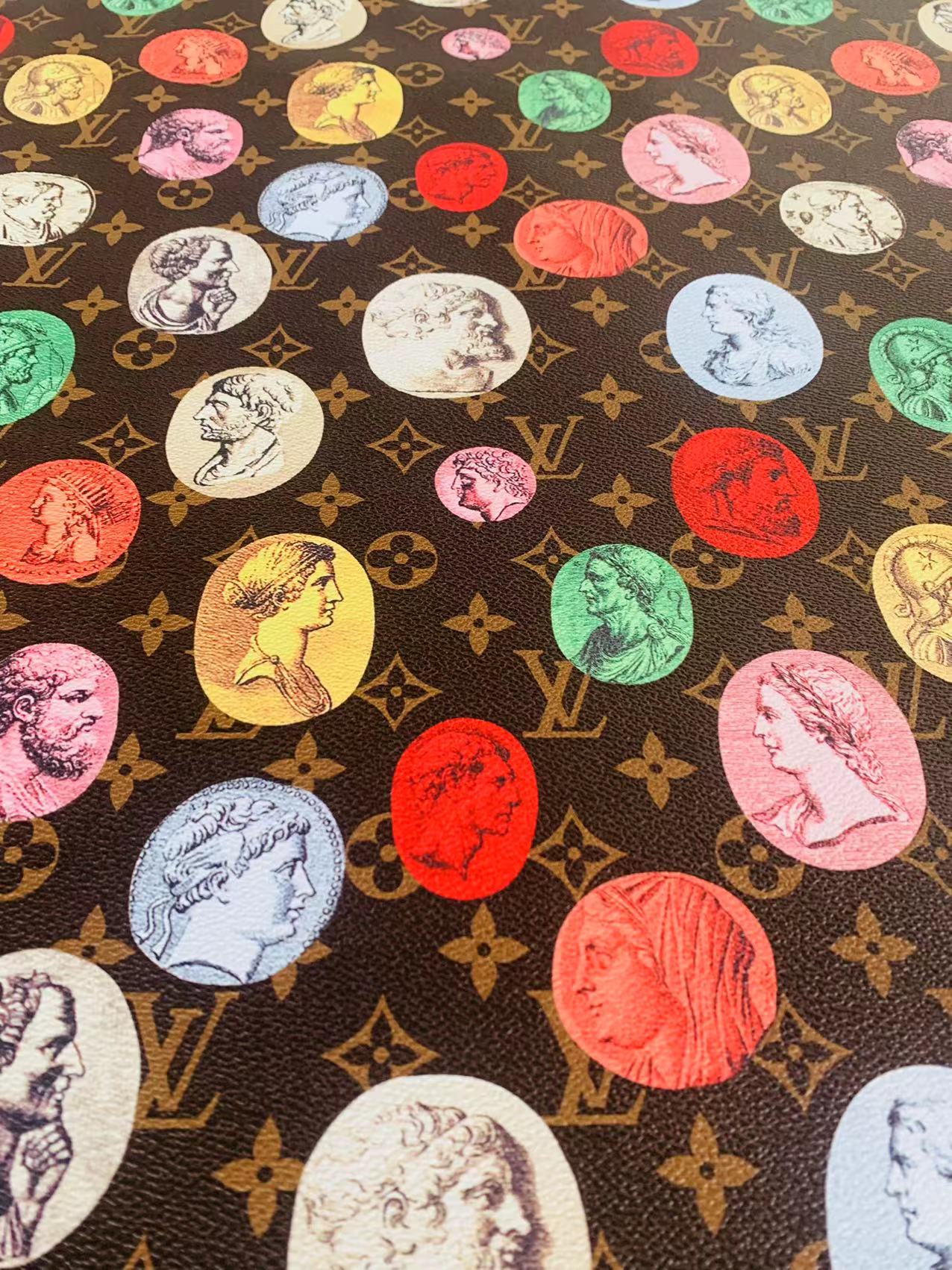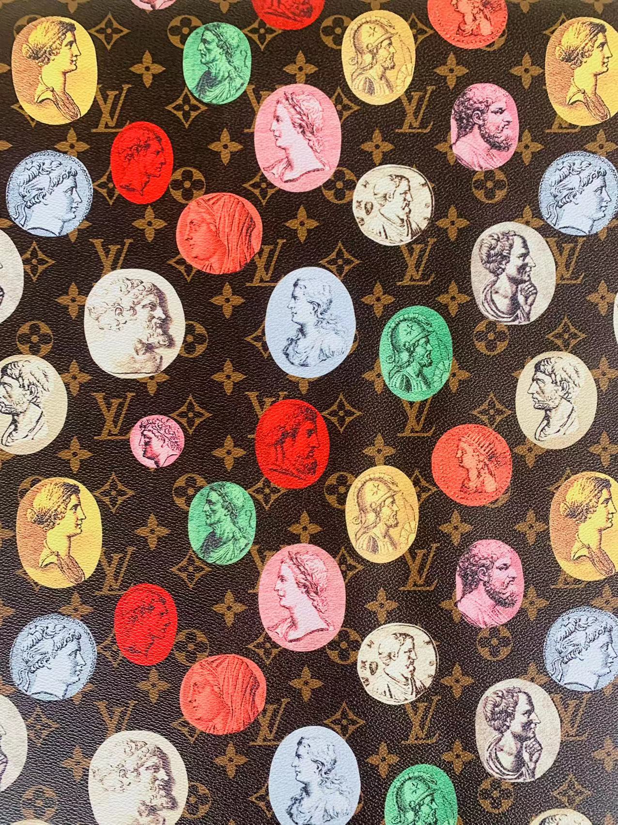 CLASSIC LV With Character Leather Case Fabric, Handmade Bag Fabric, Handmade Shoes Fabric BY YARD