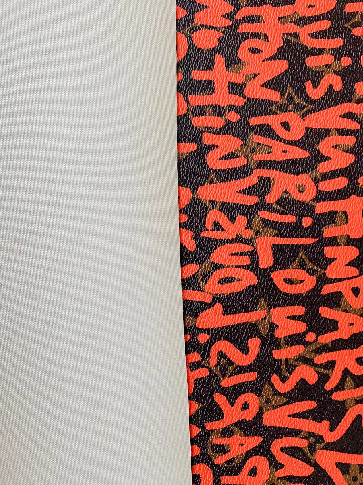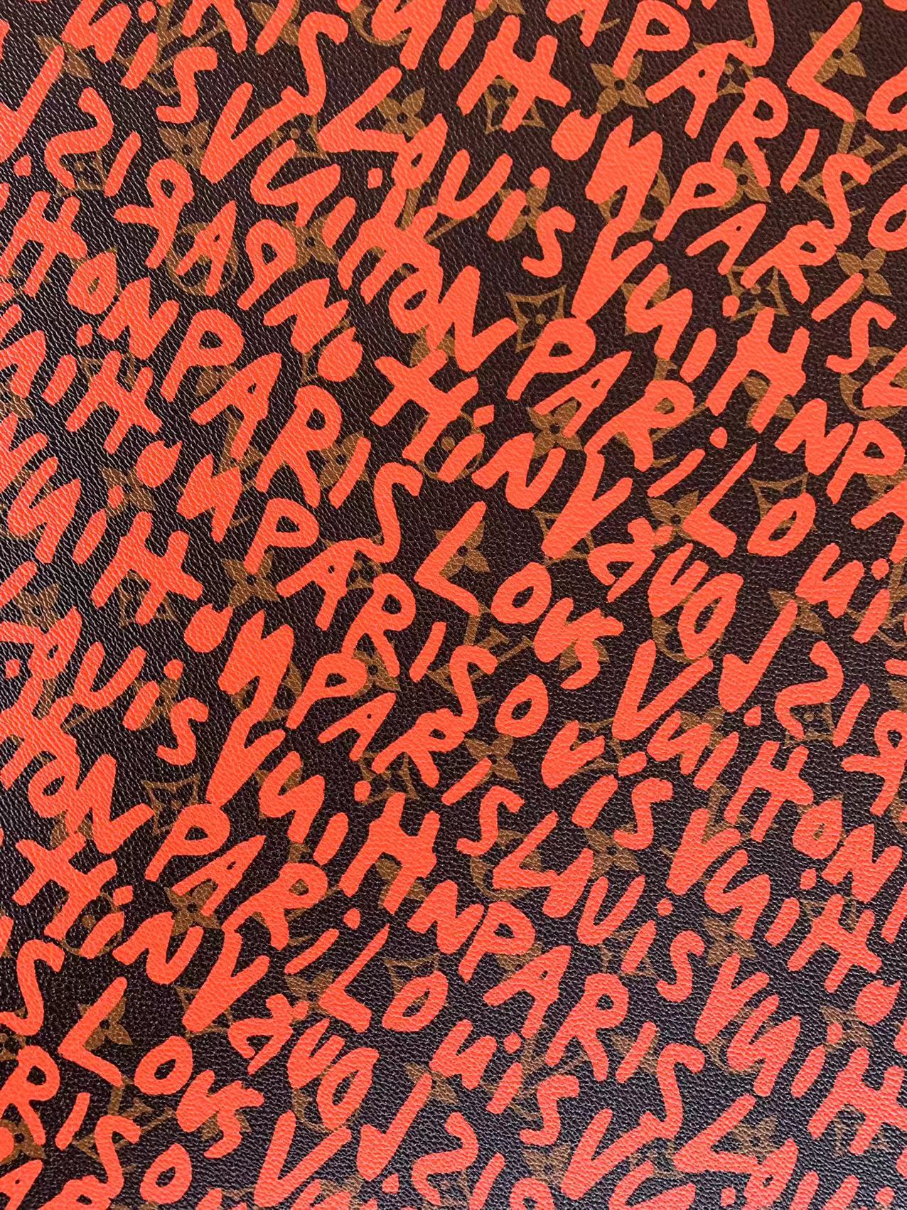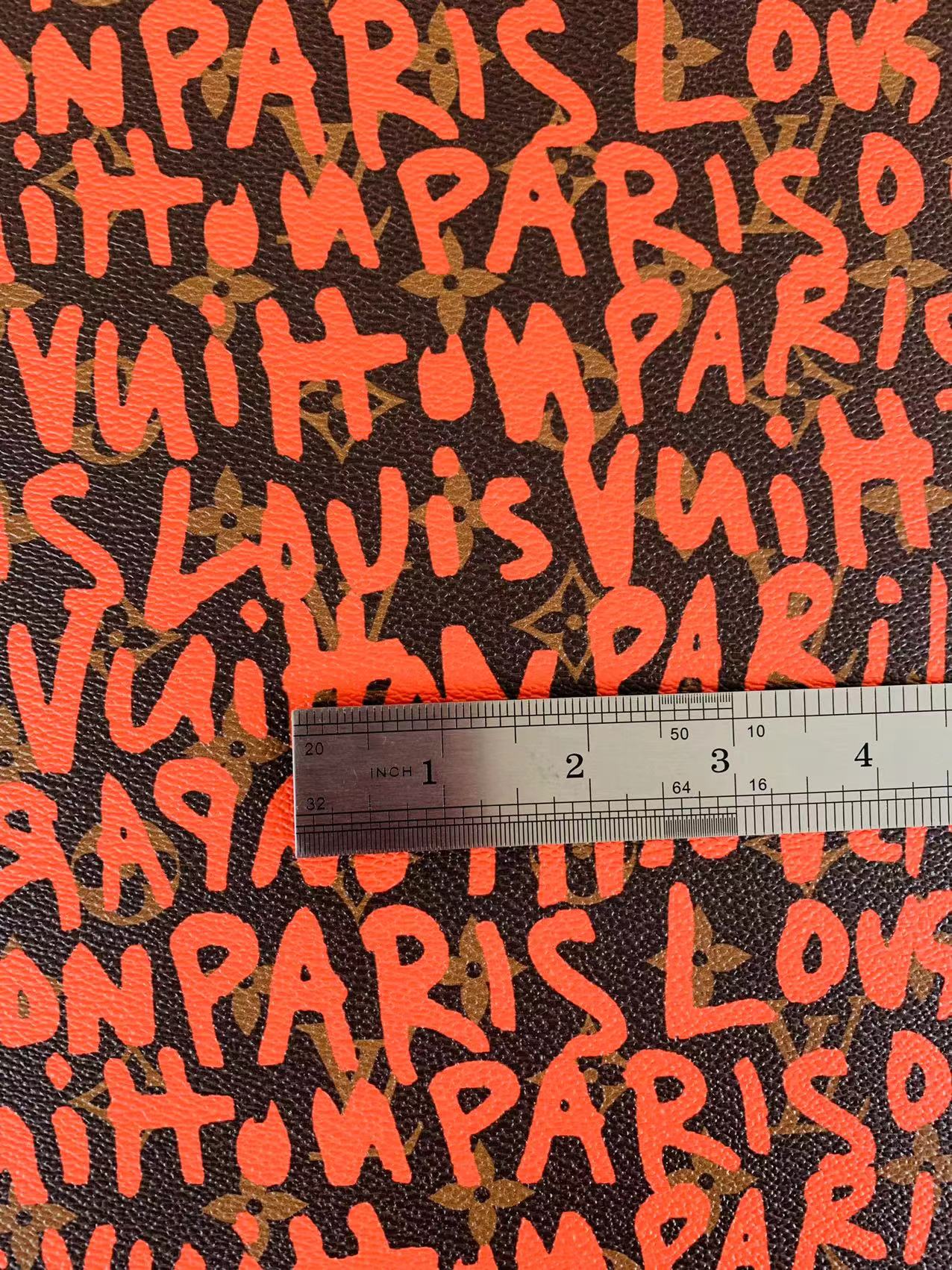 Classic LV With Graffiti Letter Design Vinyl Leather for Handmade Shoes ,Handmade Bags Leather By Yard (Orange )