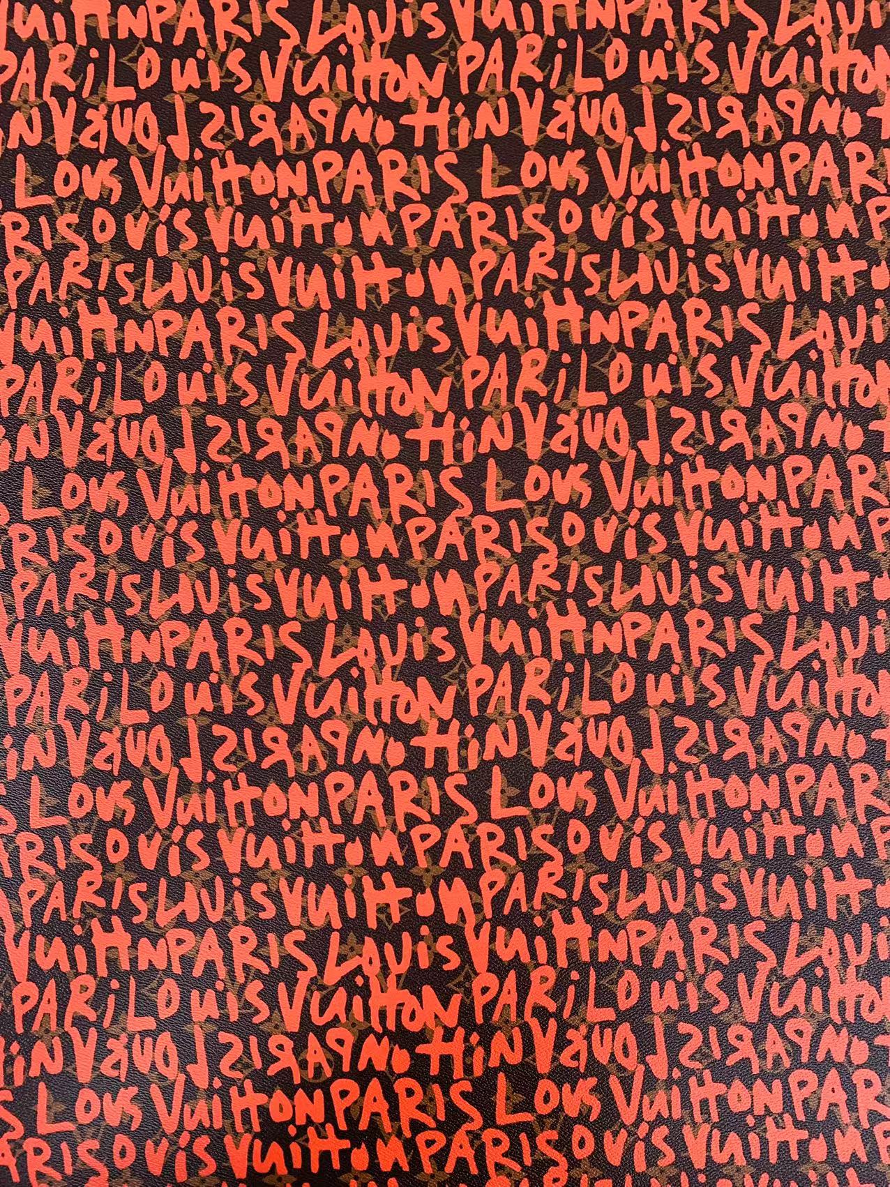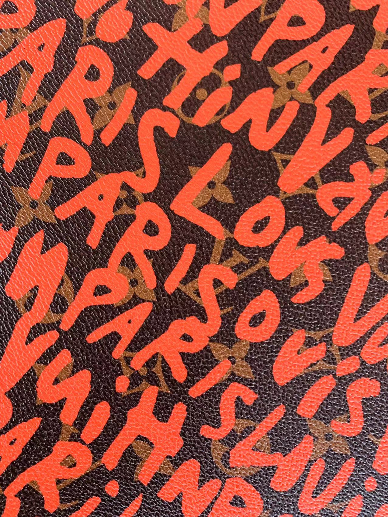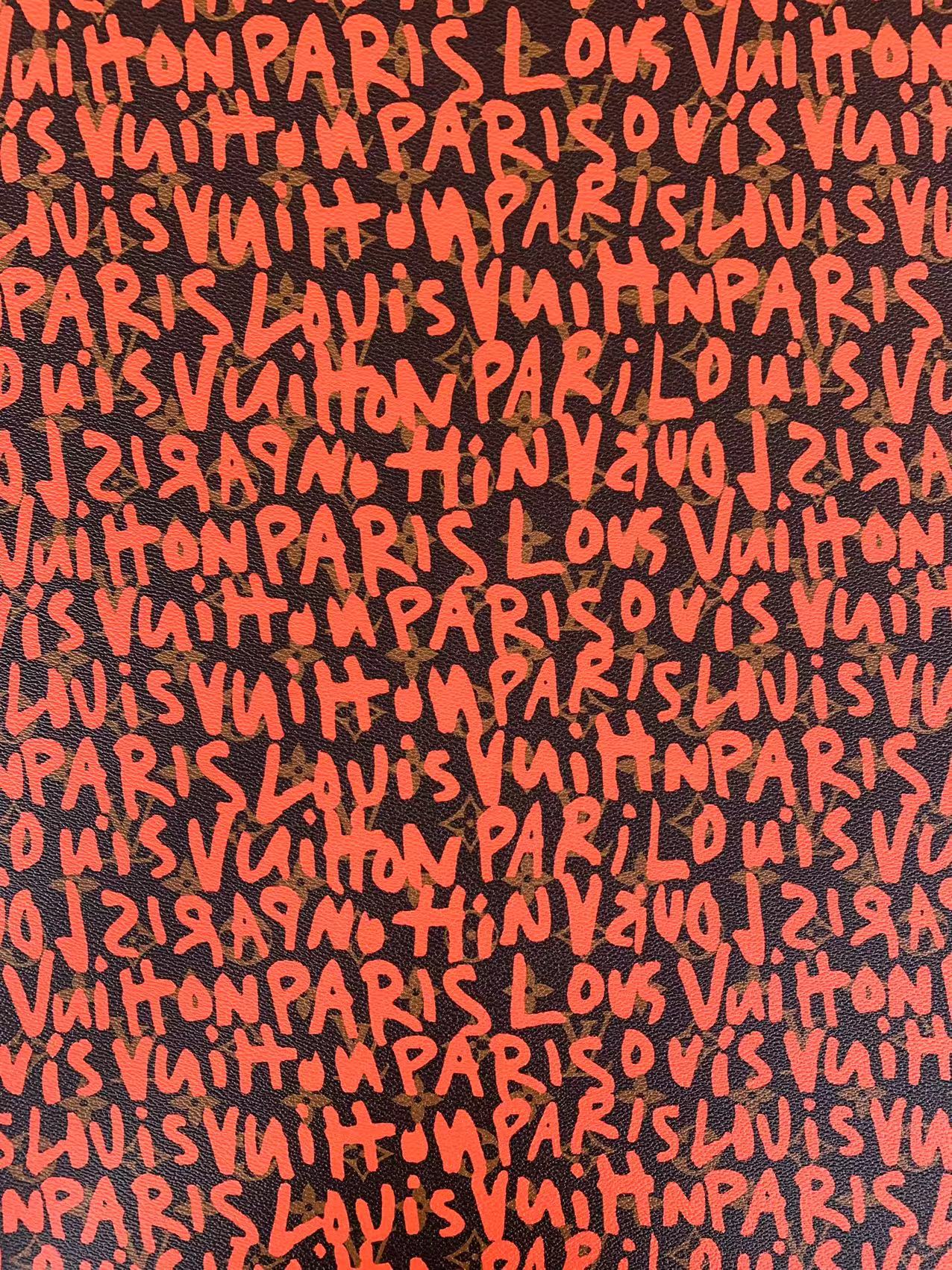 Classic LV With Graffiti Letter Design Vinyl Leather for Handmade Shoes ,Handmade Bags Leather By Yard (Orange )