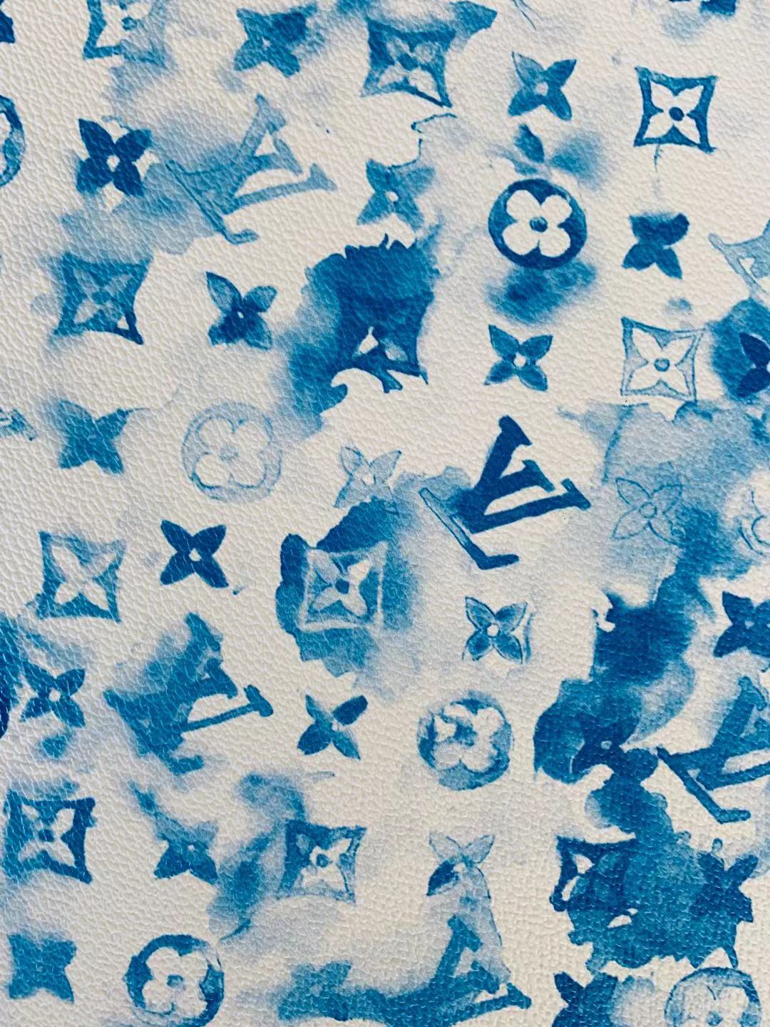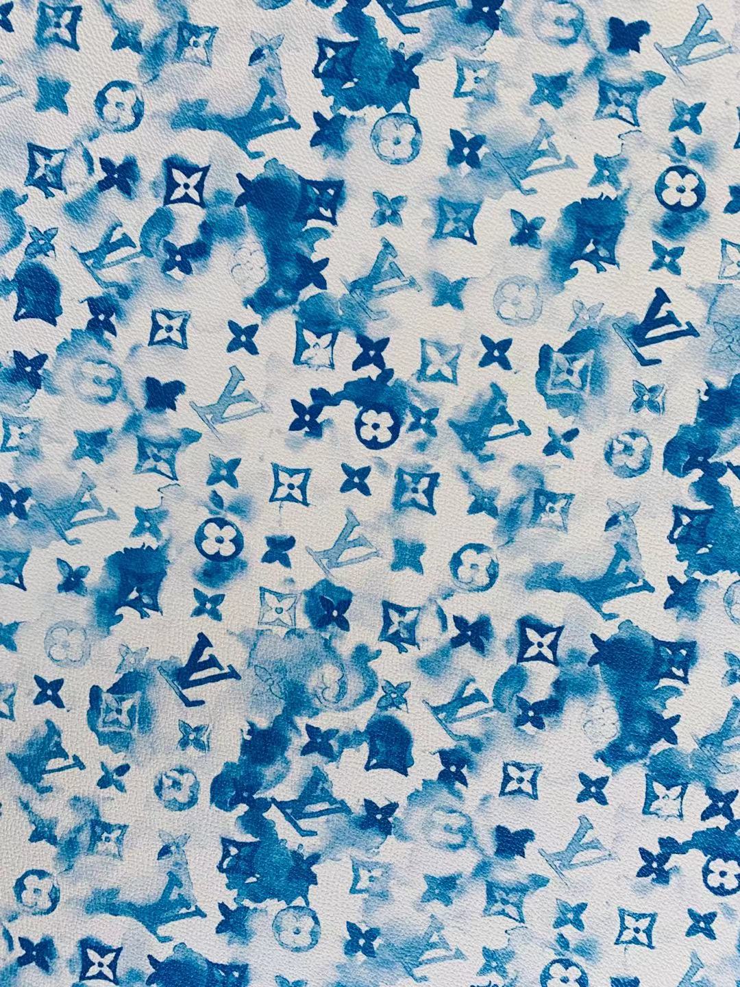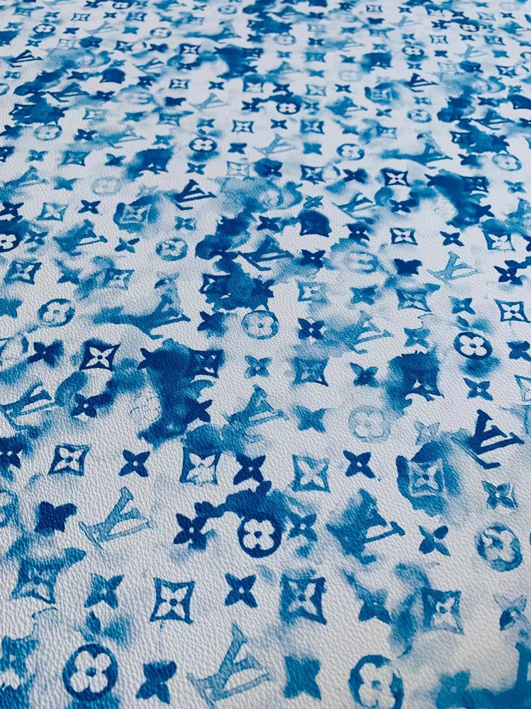 Classic Watercolour LV Leather Case Fabric, Handmade Bag Fabric, Hand-made Shoes Fabric By Yard (Blue)