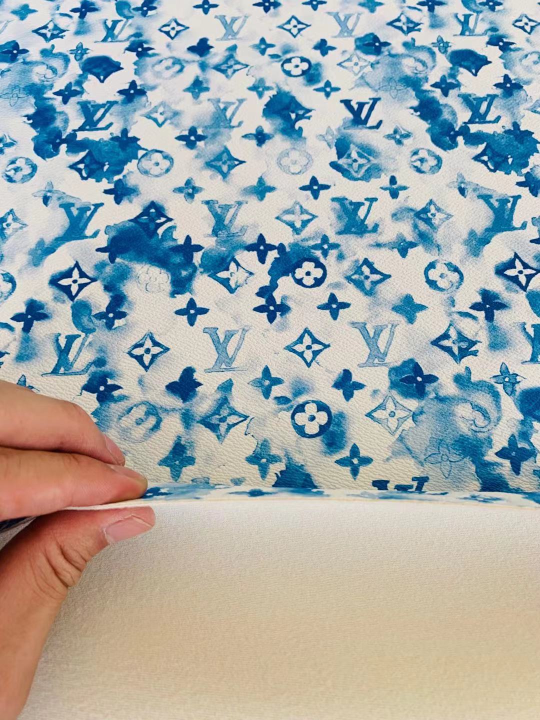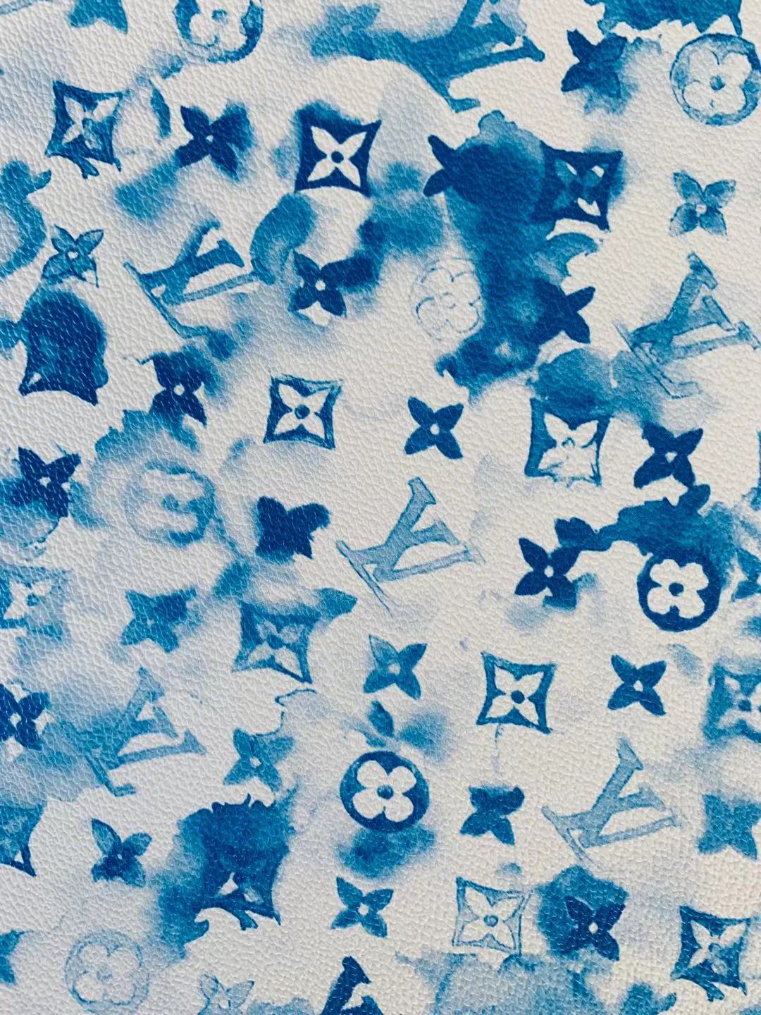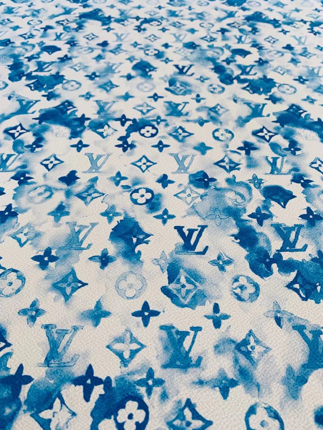 Classic Watercolour LV Leather Case Fabric, Handmade Bag Fabric, Hand-made Shoes Fabric By Yard (Blue)