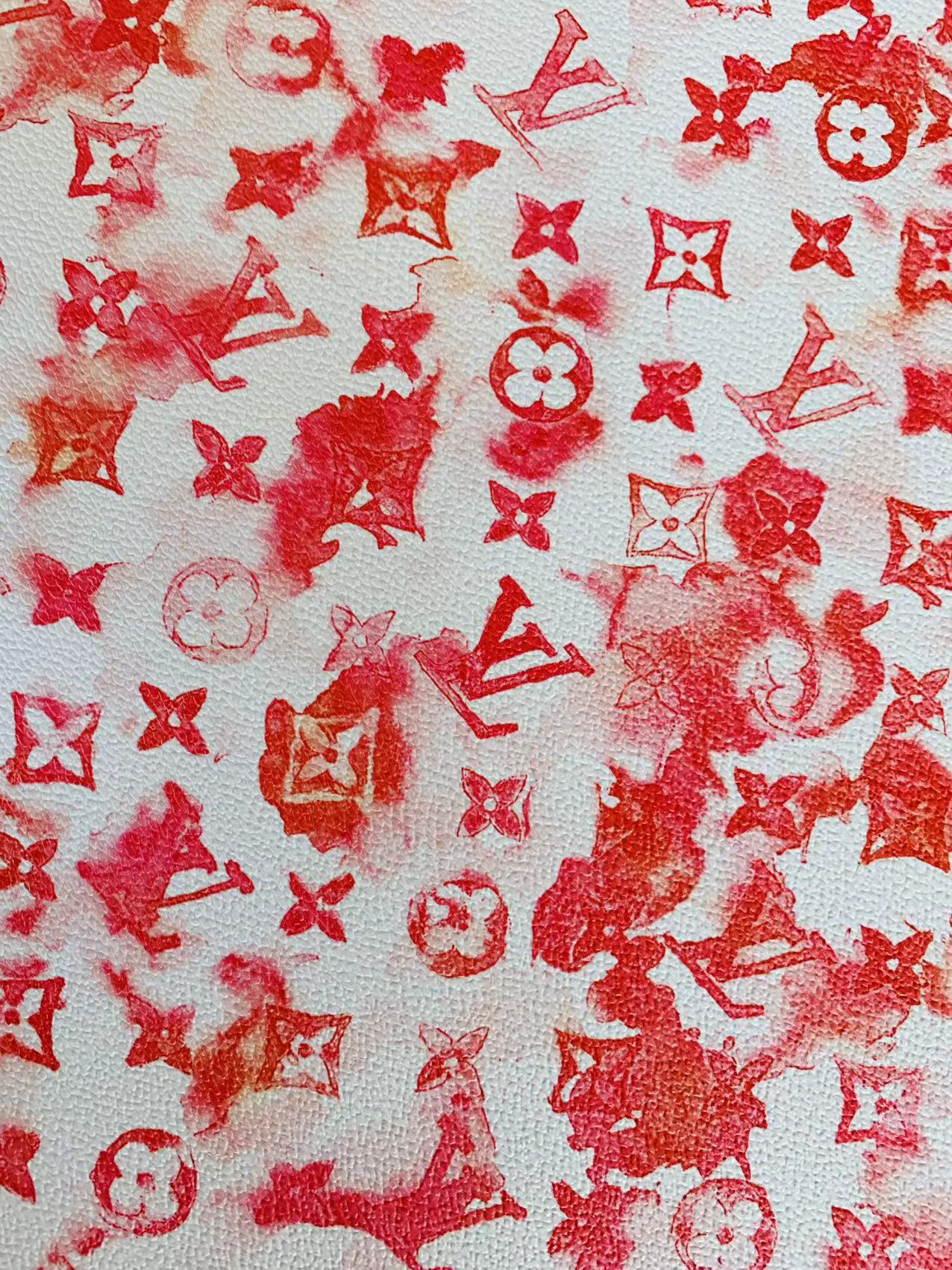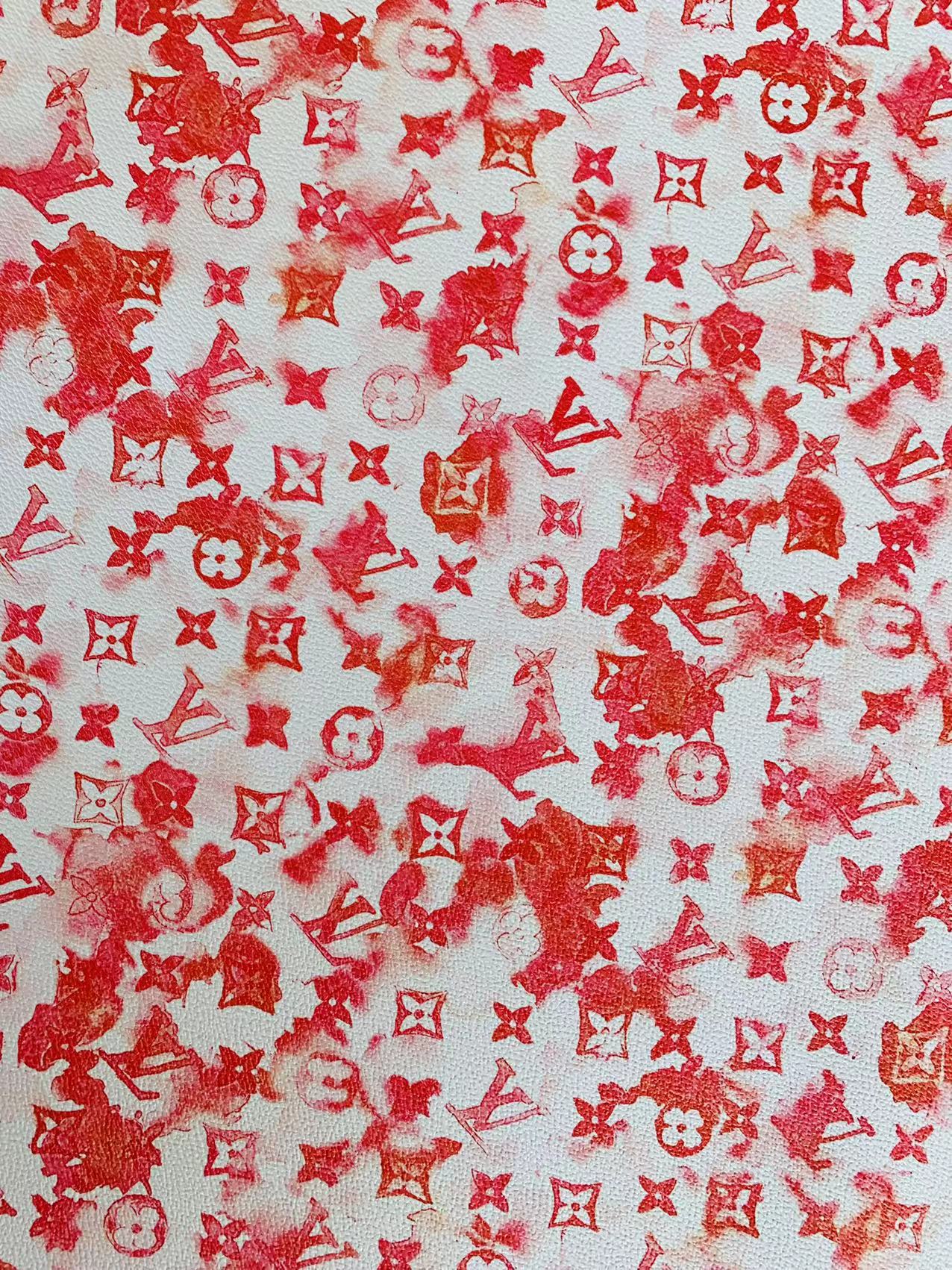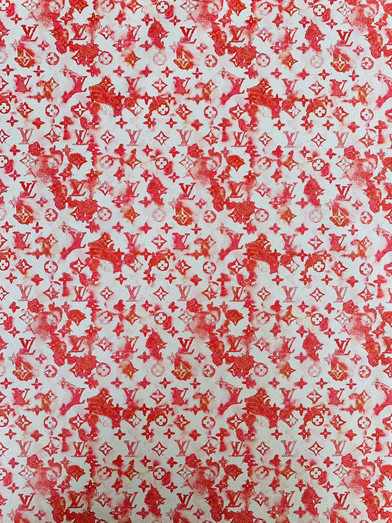 Classic Watercolour LV Leather Case Fabric, Handmade Bag Fabric, Hand-made Shoes Fabric By Yard (Red)