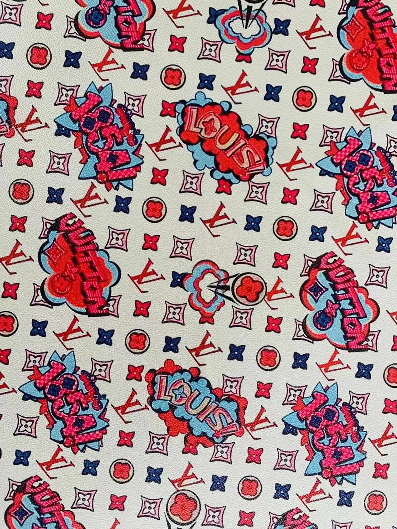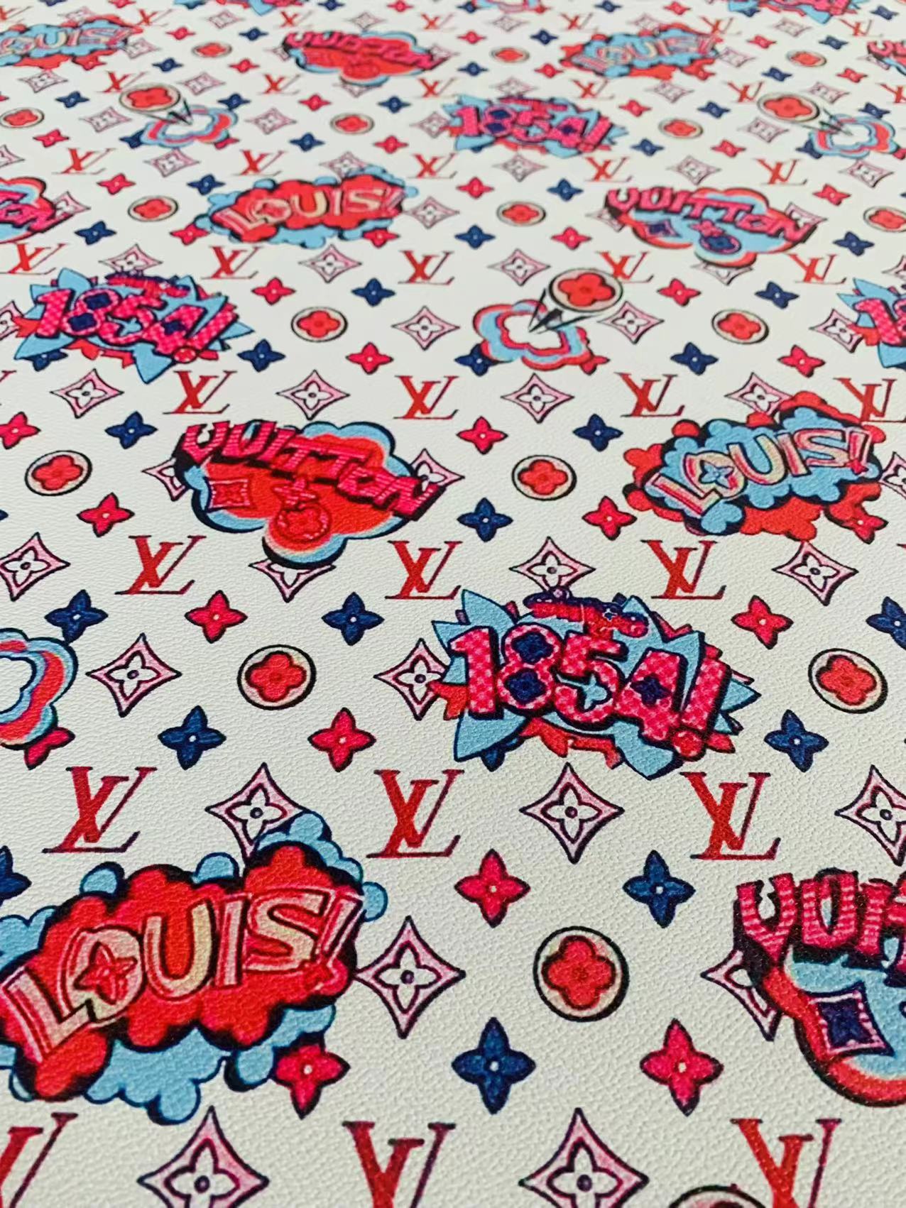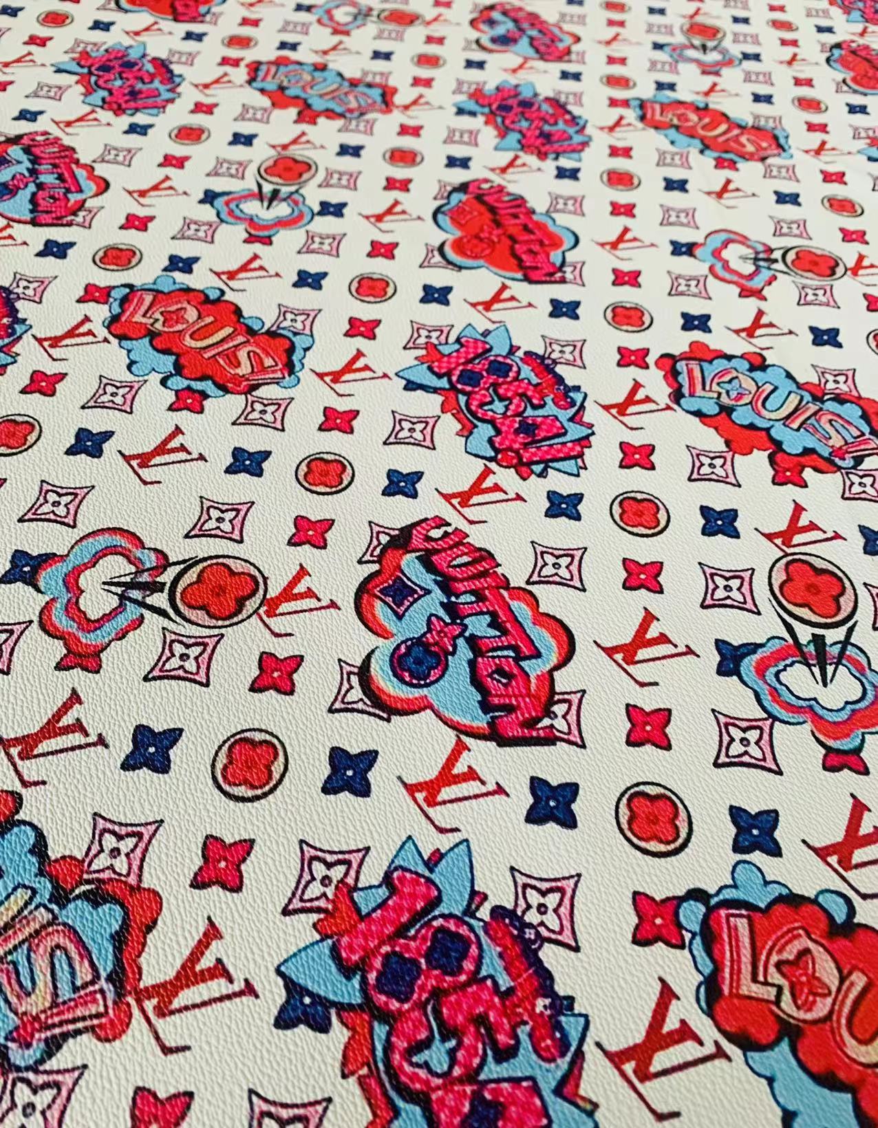 Colorful LV 1854 design Leather Case Fabric, Handmade Bag Fabric, Hand-made Shoes Fabric By Yard