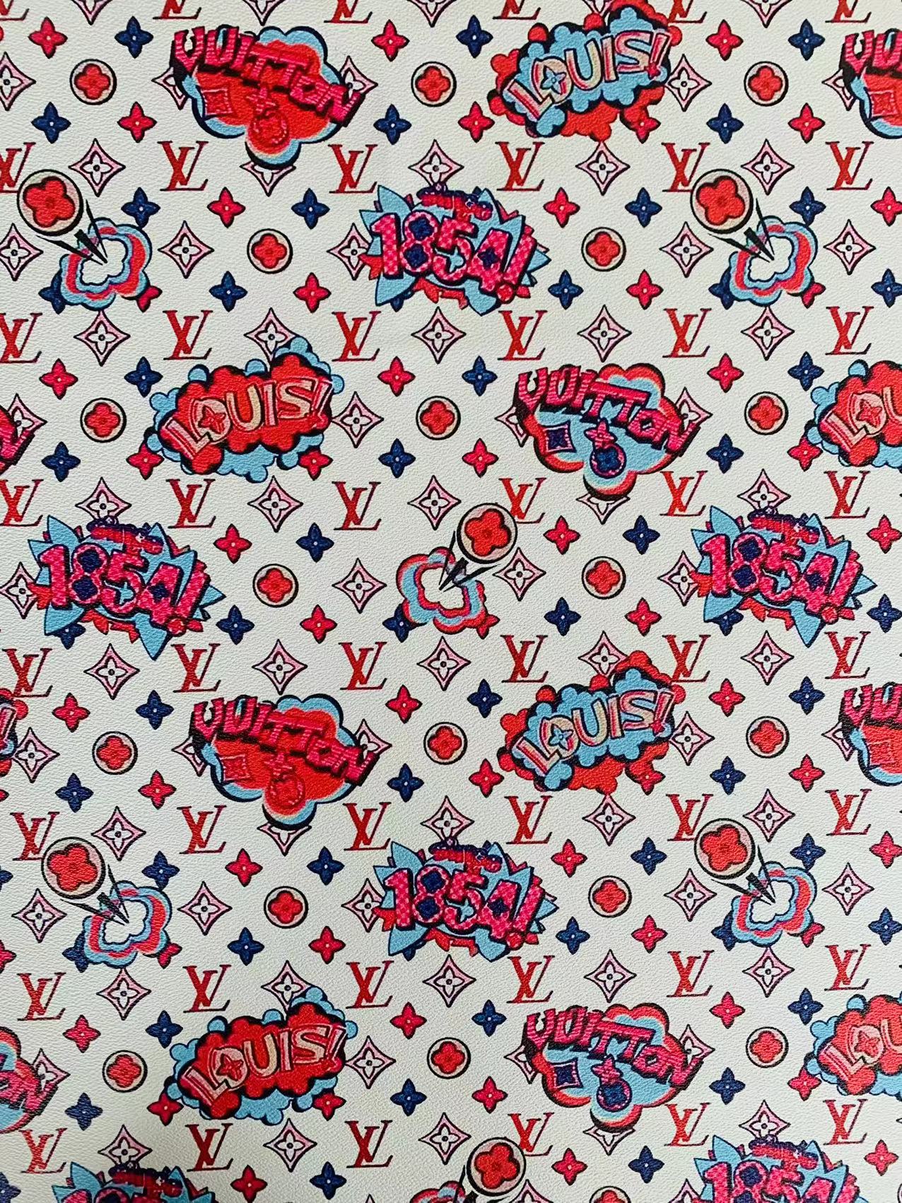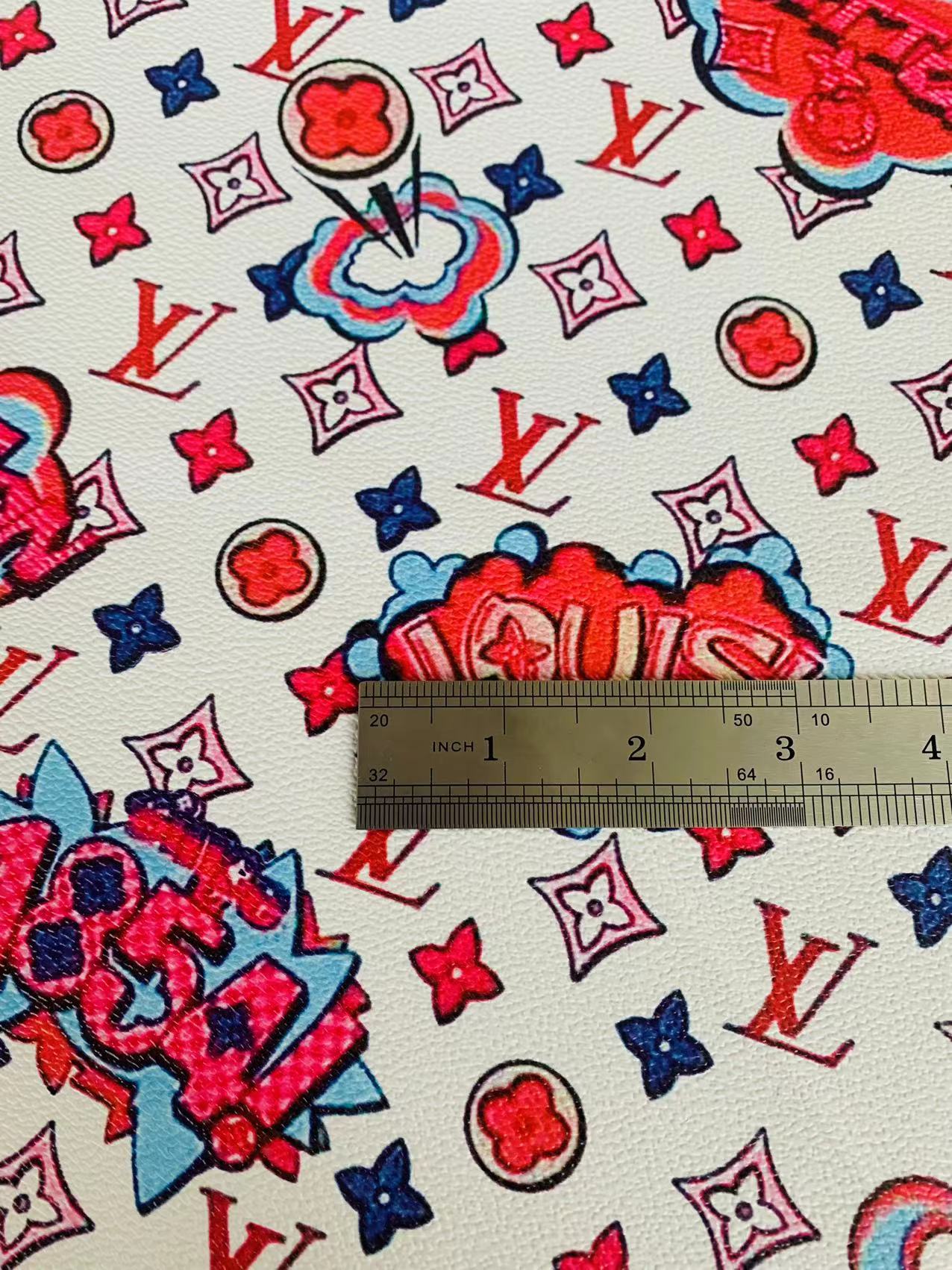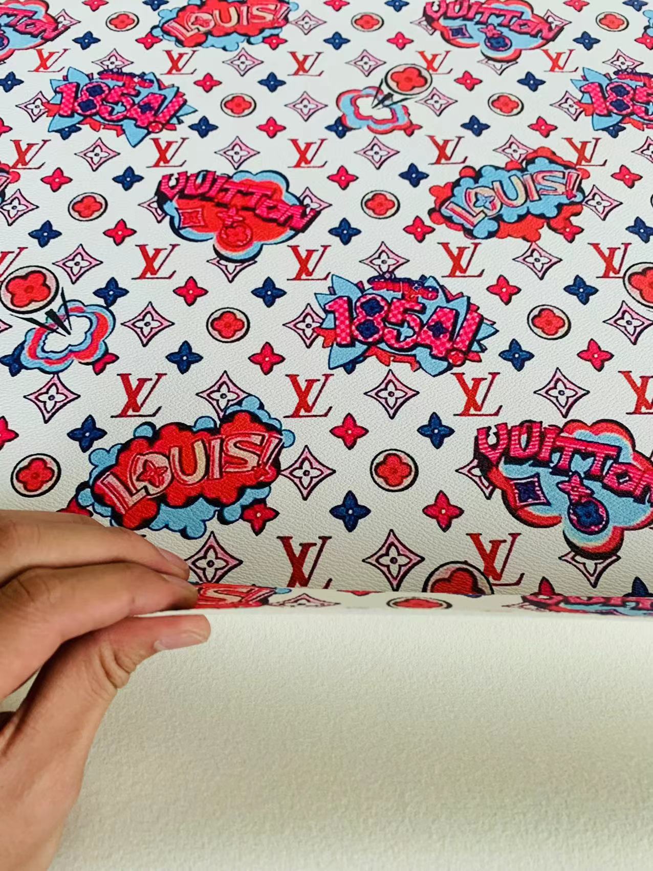 Colorful LV 1854 design Leather Case Fabric, Handmade Bag Fabric, Hand-made Shoes Fabric By Yard