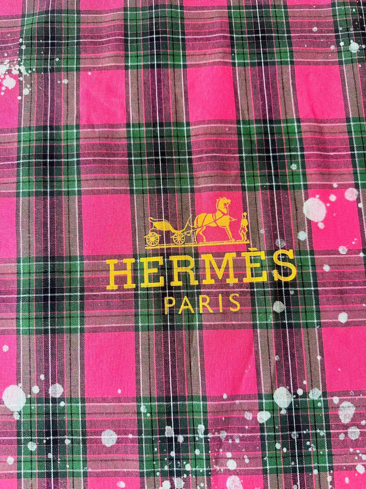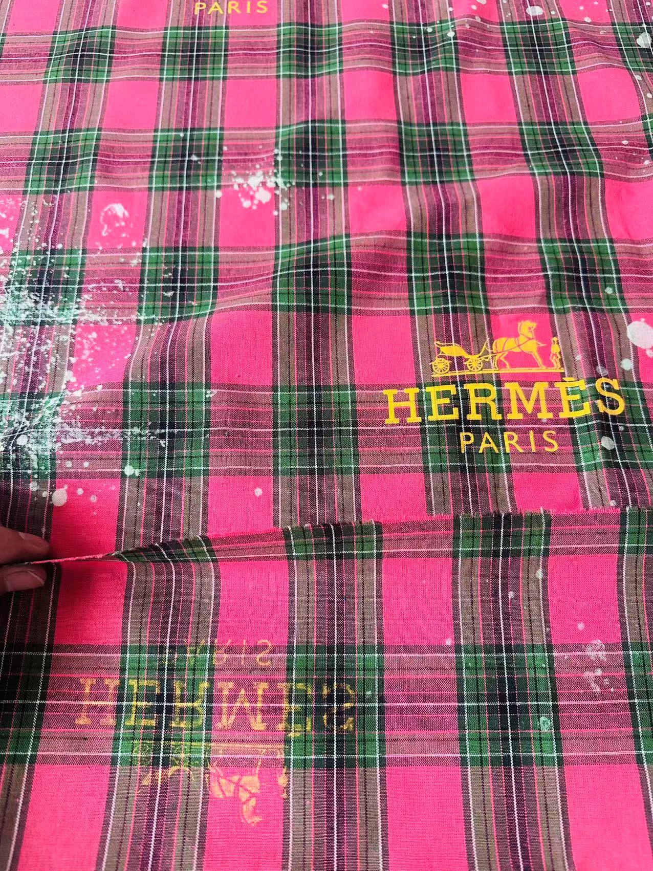 This fabric is customized by colored yarn , so the two side of fabric is same color ,front is Hermes LOGO