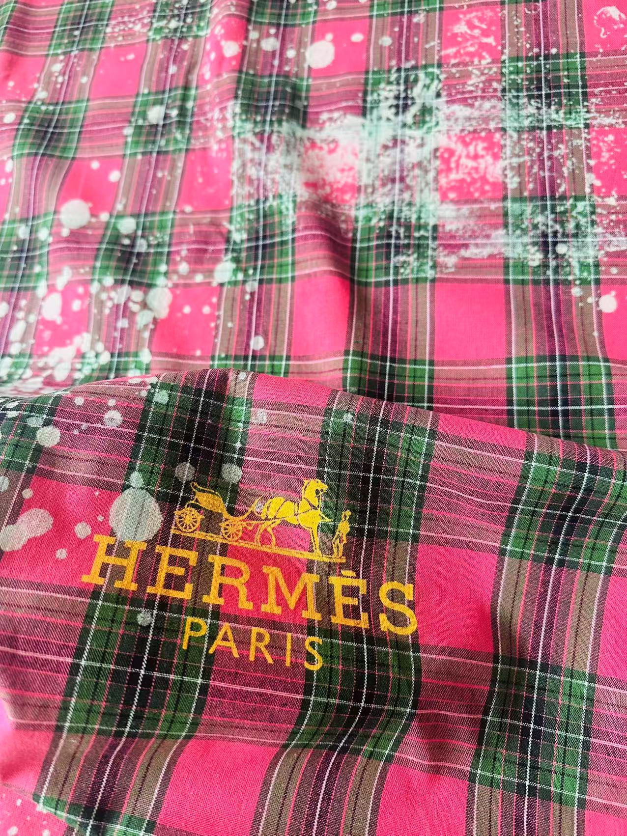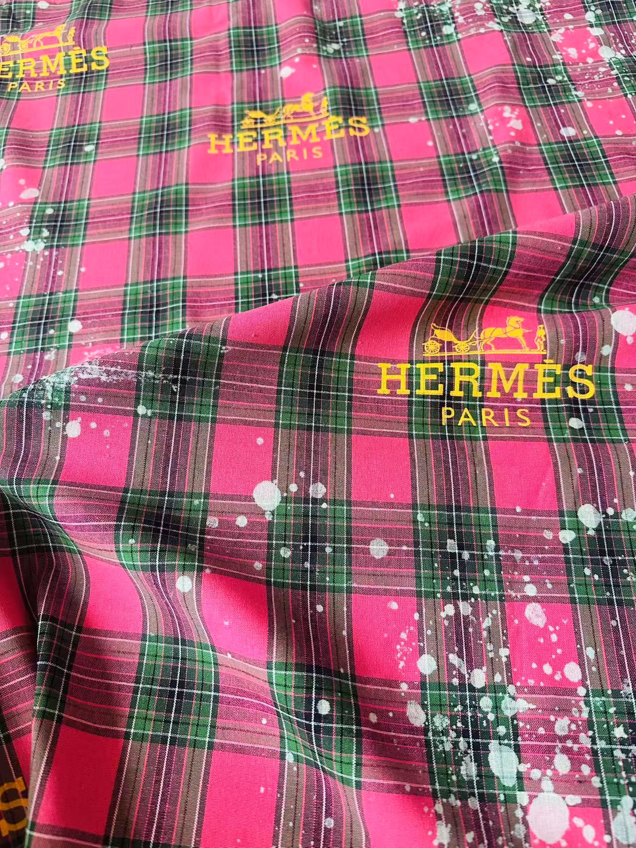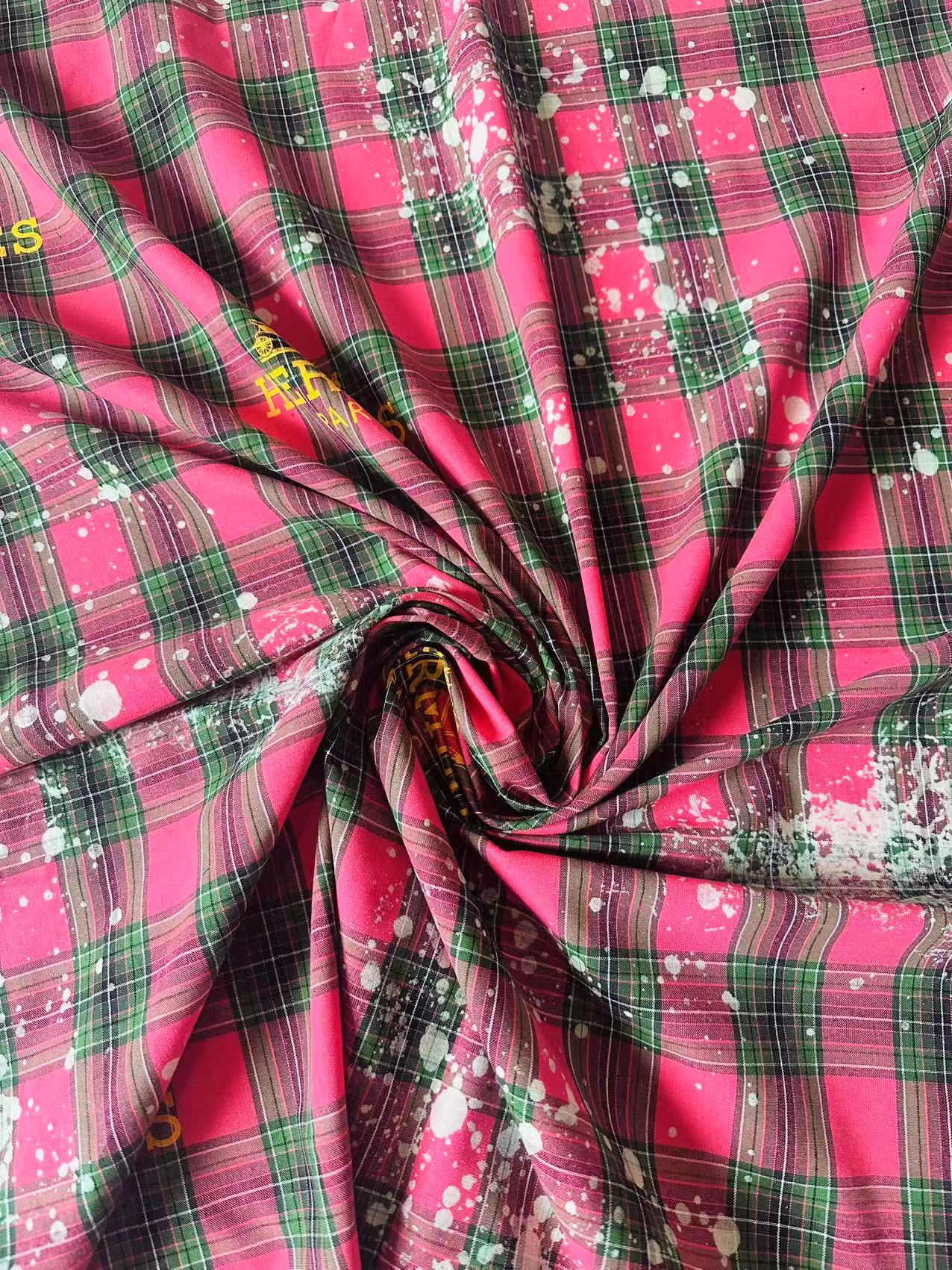 Craft 100% Cotton Hermes Yarn-dyed Plaid Shirt Fabric For Handmade Clothing,Shoes Goods By Yard (Hot Pink)