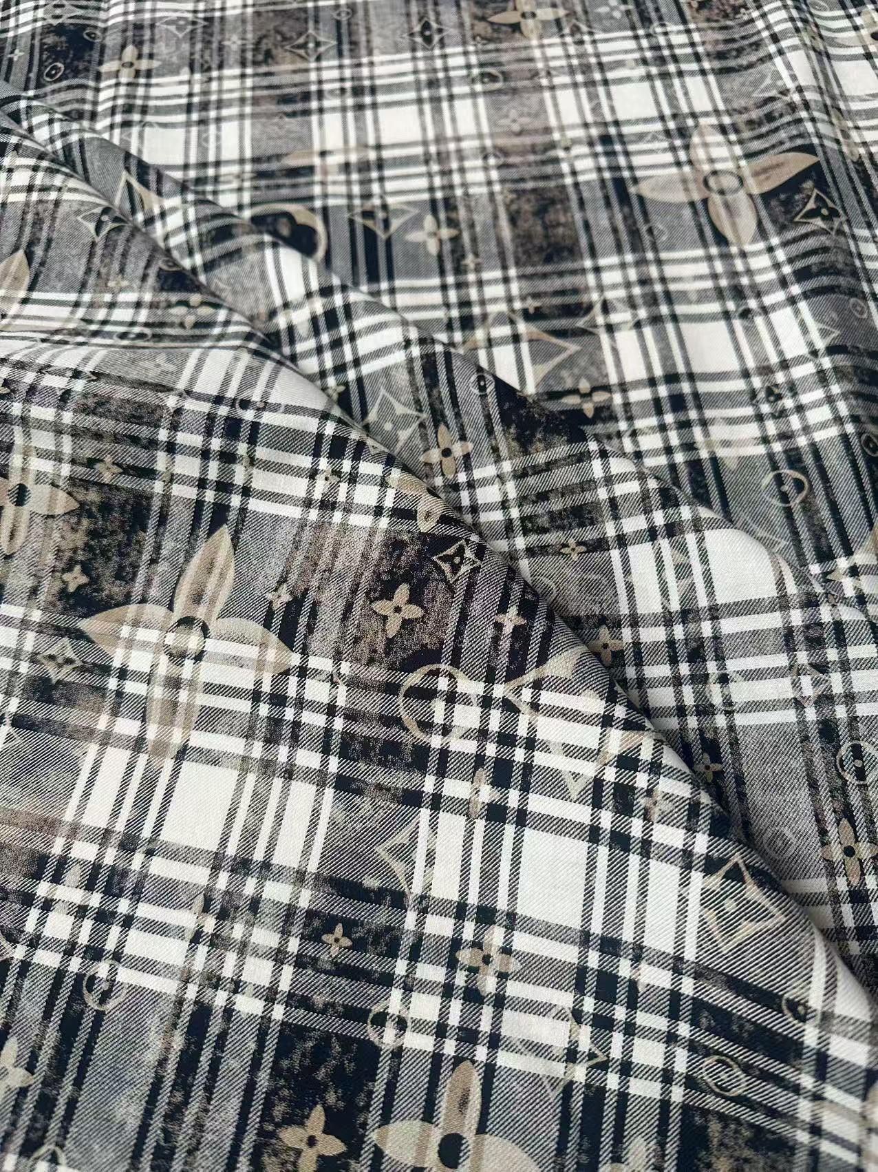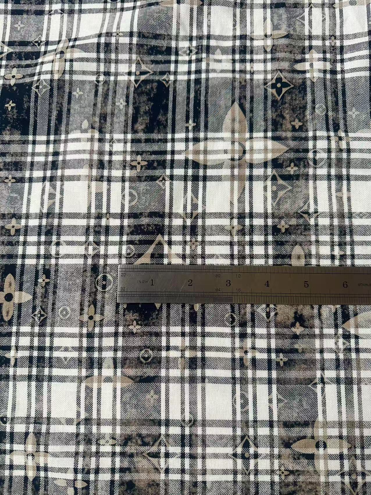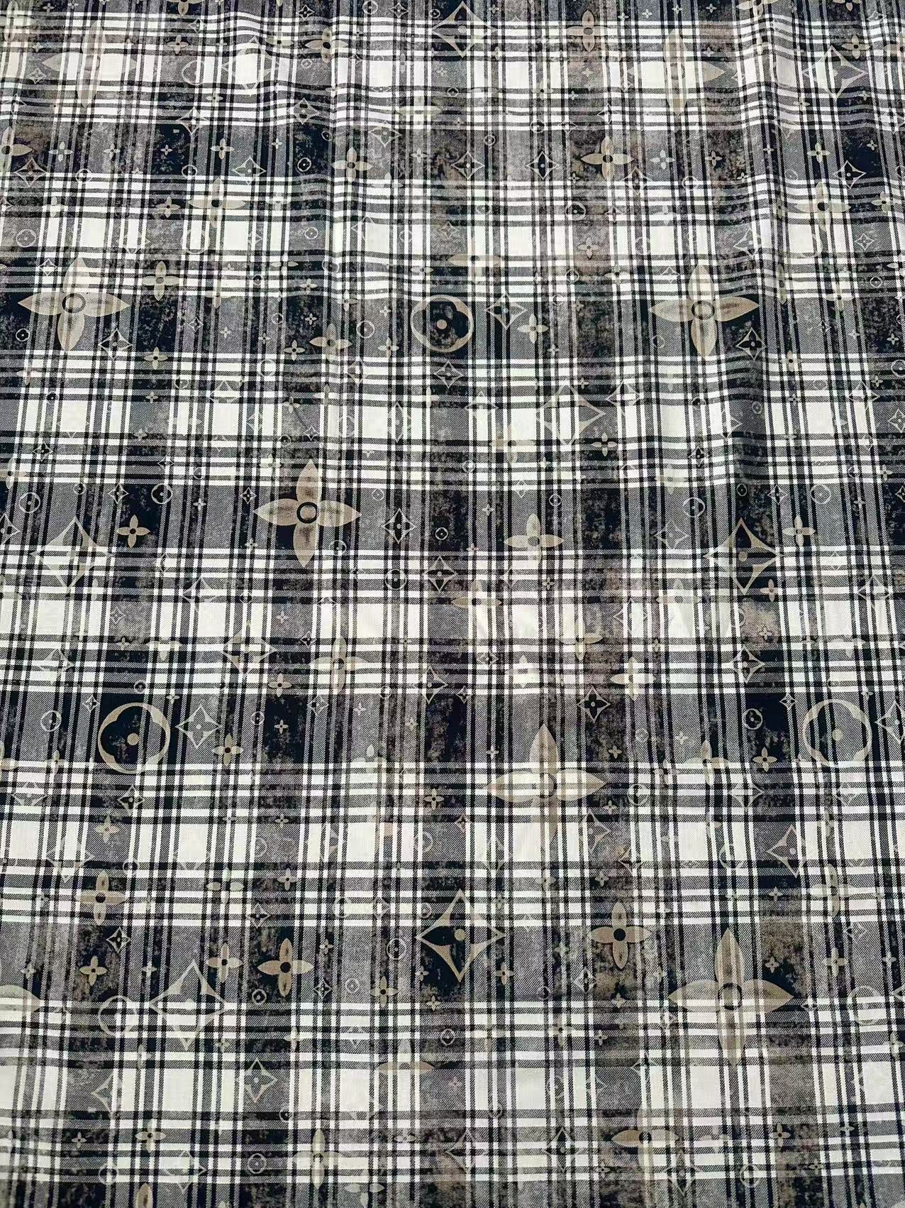 Craft 100% Cotton LV Yarn-dyed Plaid Shirt Fabric For Handmade Clothing,Shoes Goods By Yard (Black With White)