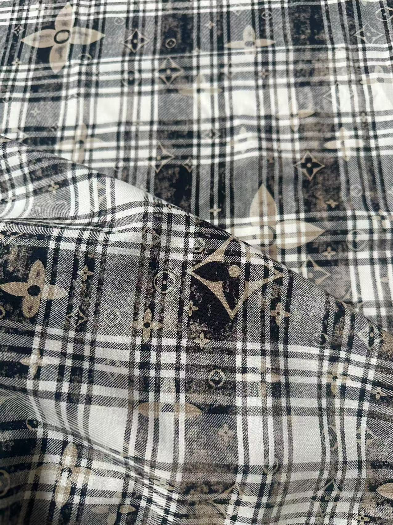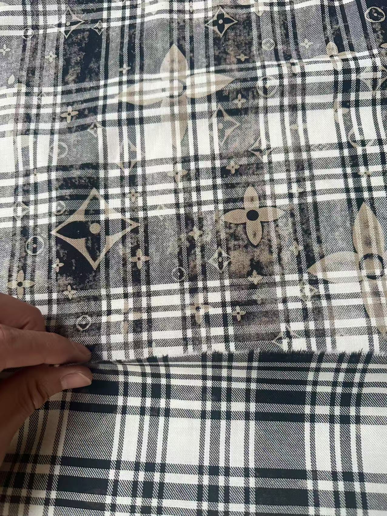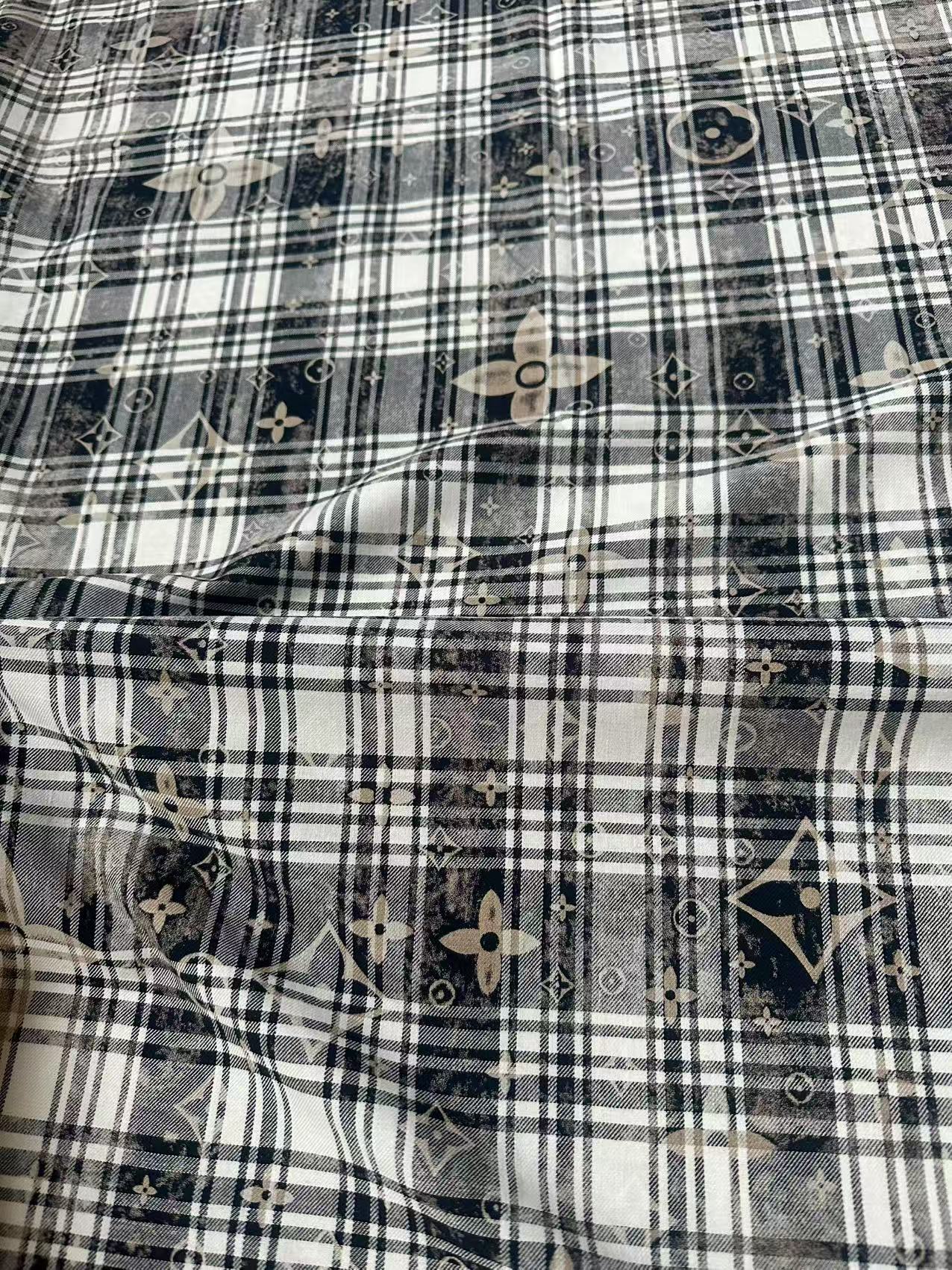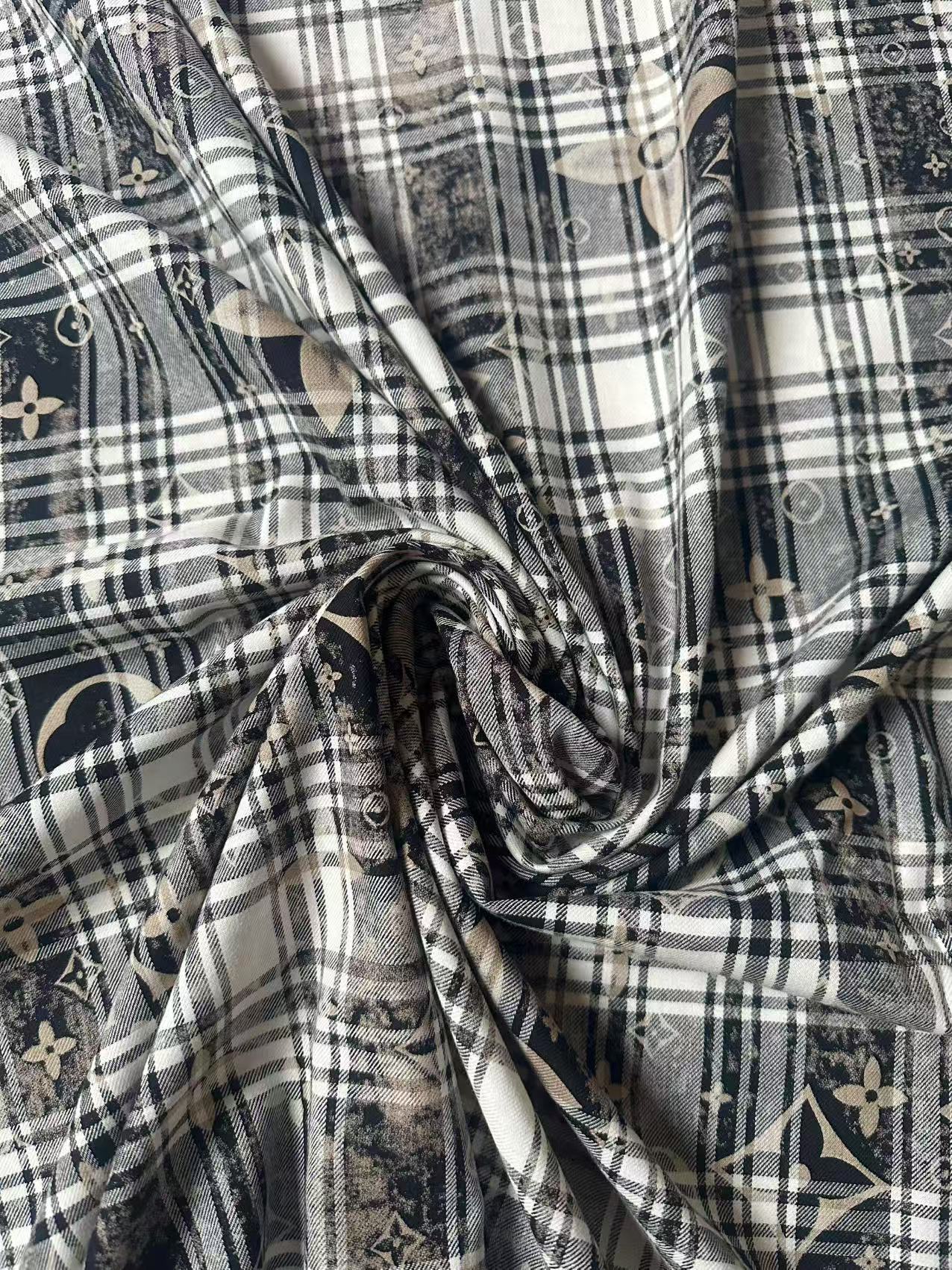 Craft 100% Cotton LV Yarn-dyed Plaid Shirt Fabric For Handmade Clothing,Shoes Goods By Yard (Black With White)