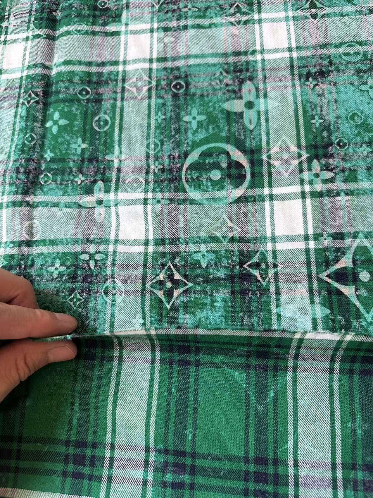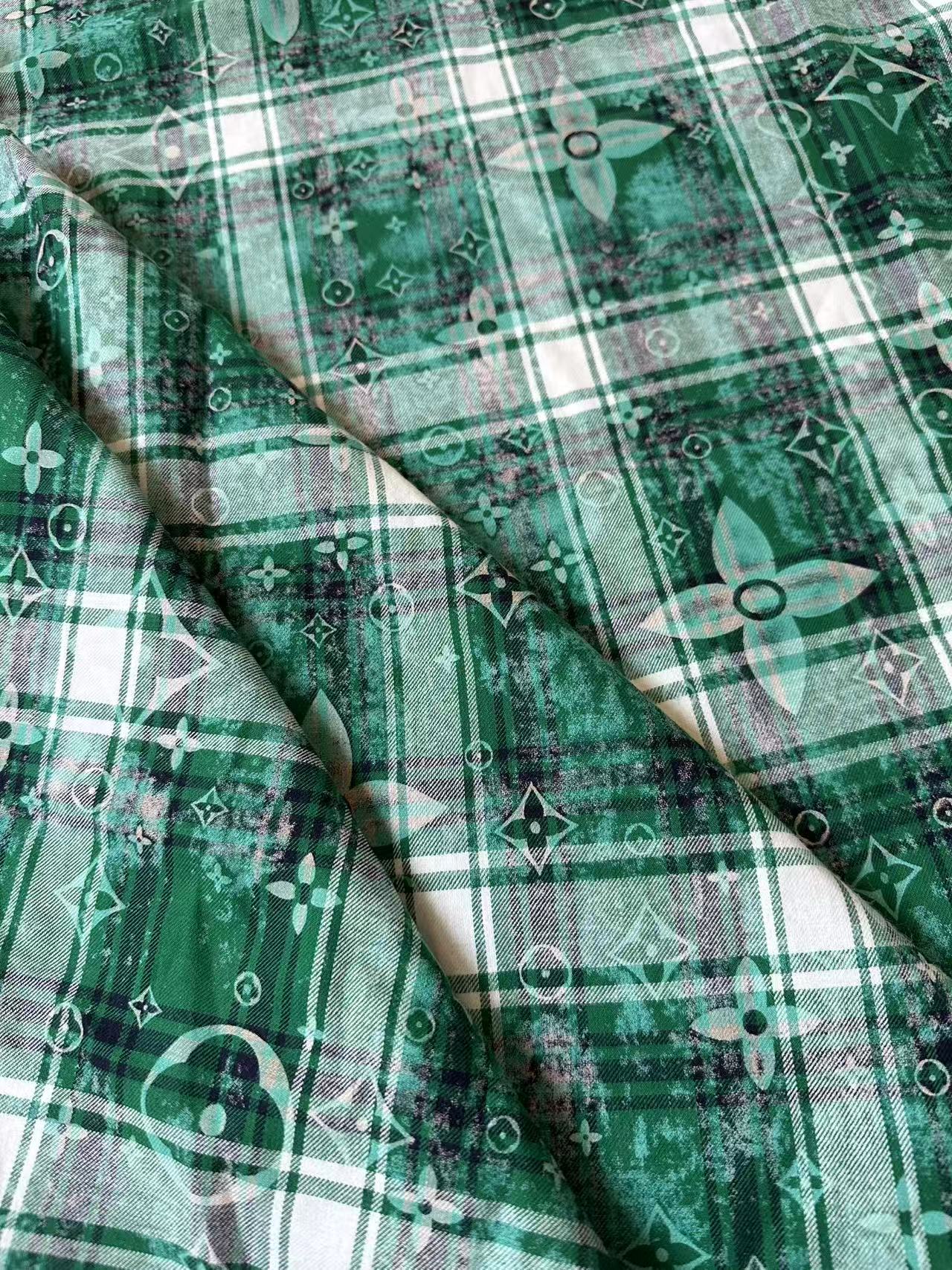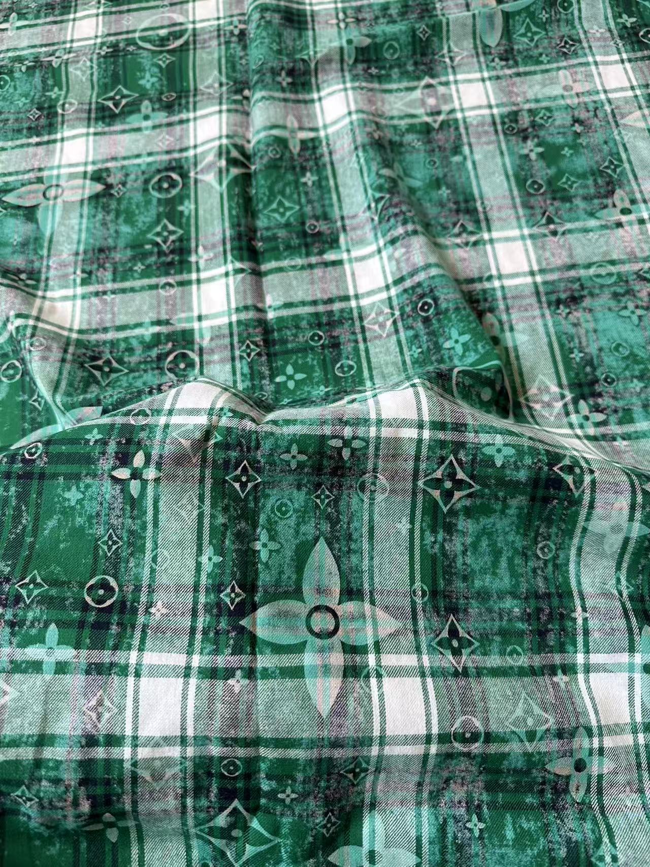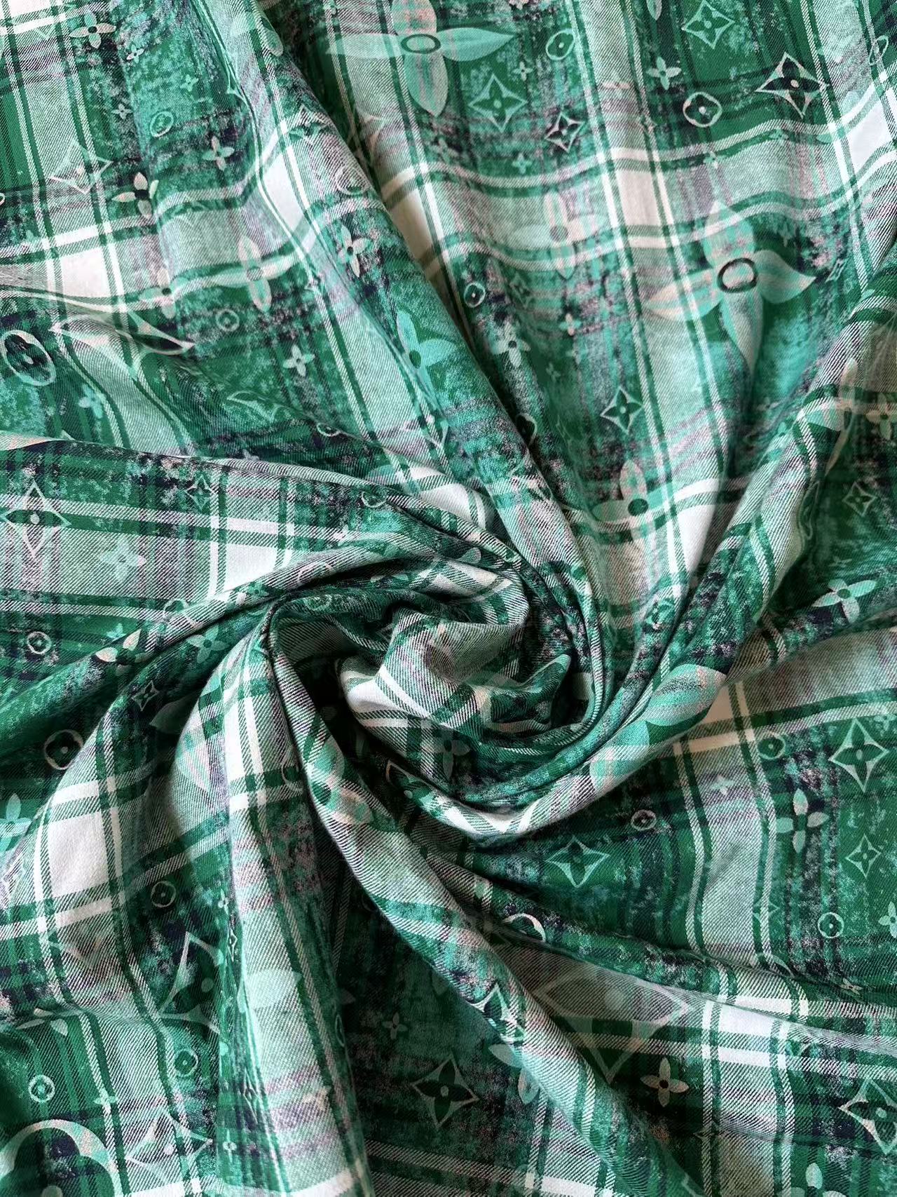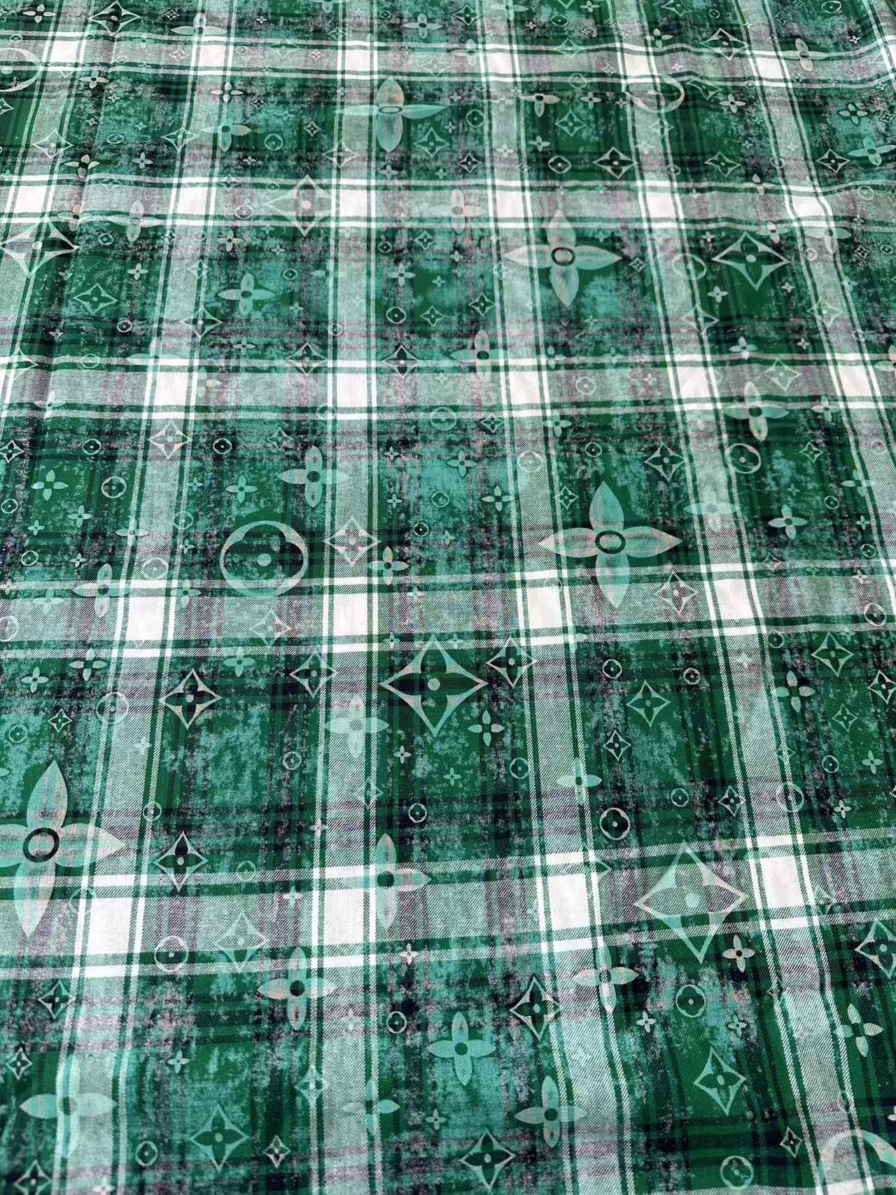 Craft 100% Cotton LV Yarn-dyed Plaid Shirt Fabric For Handmade Clothing,Shoes Goods By Yard (Green)