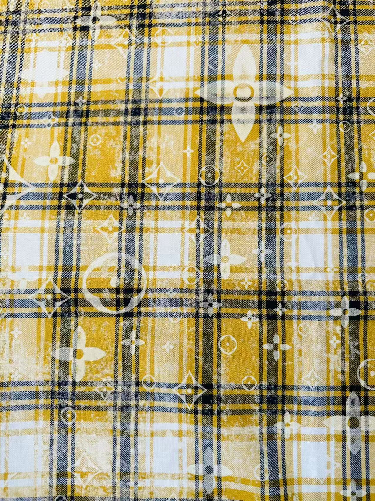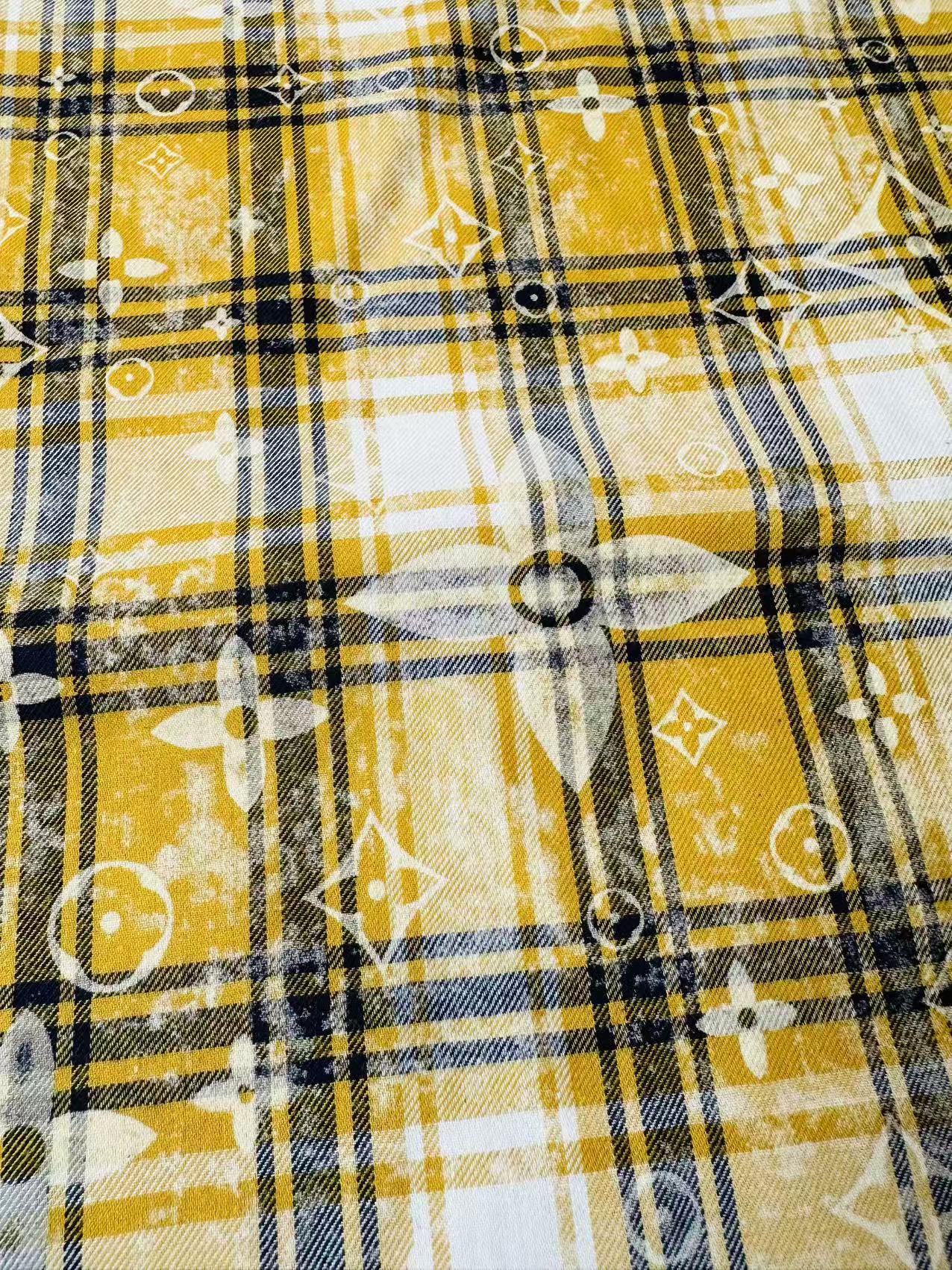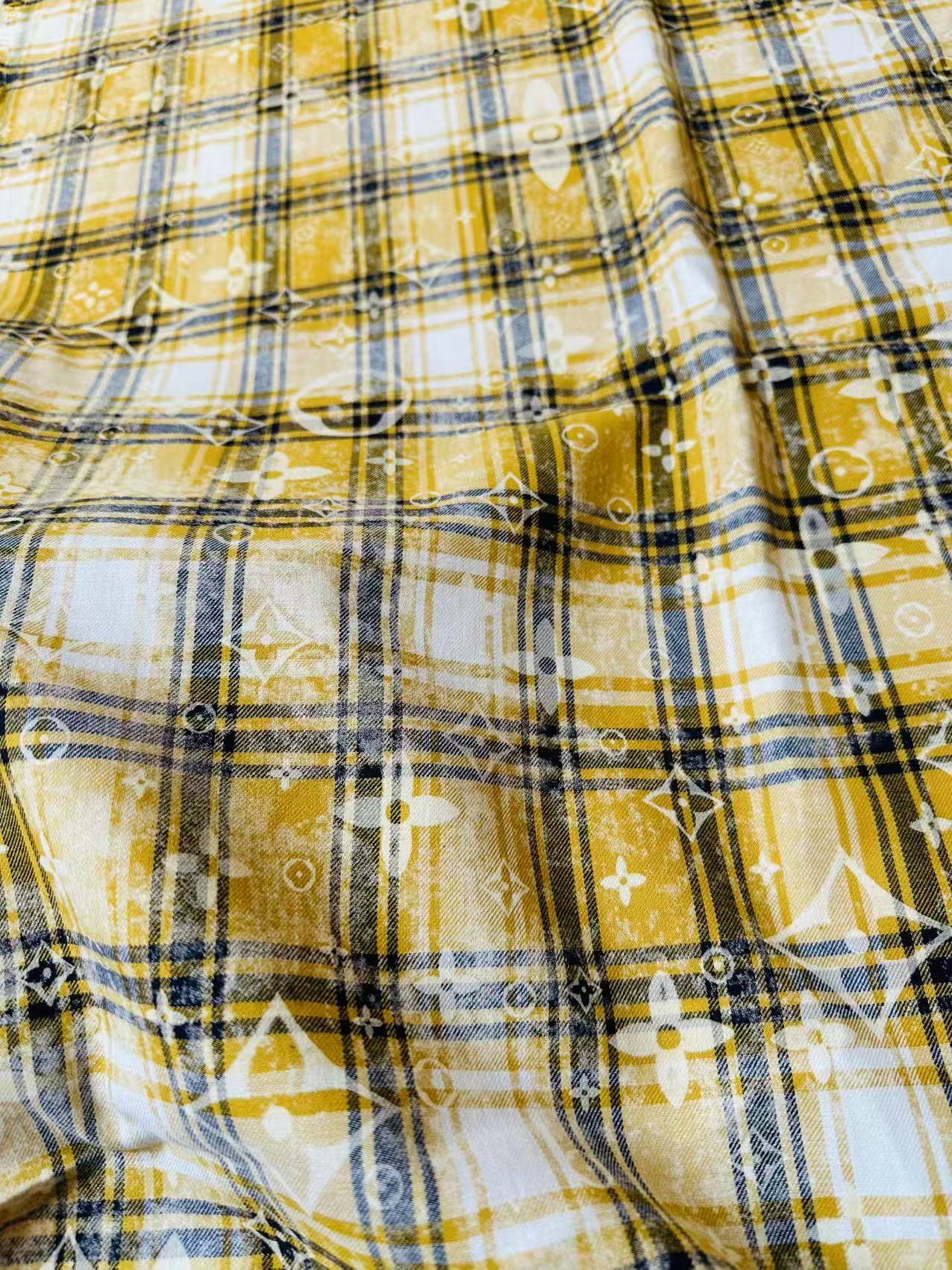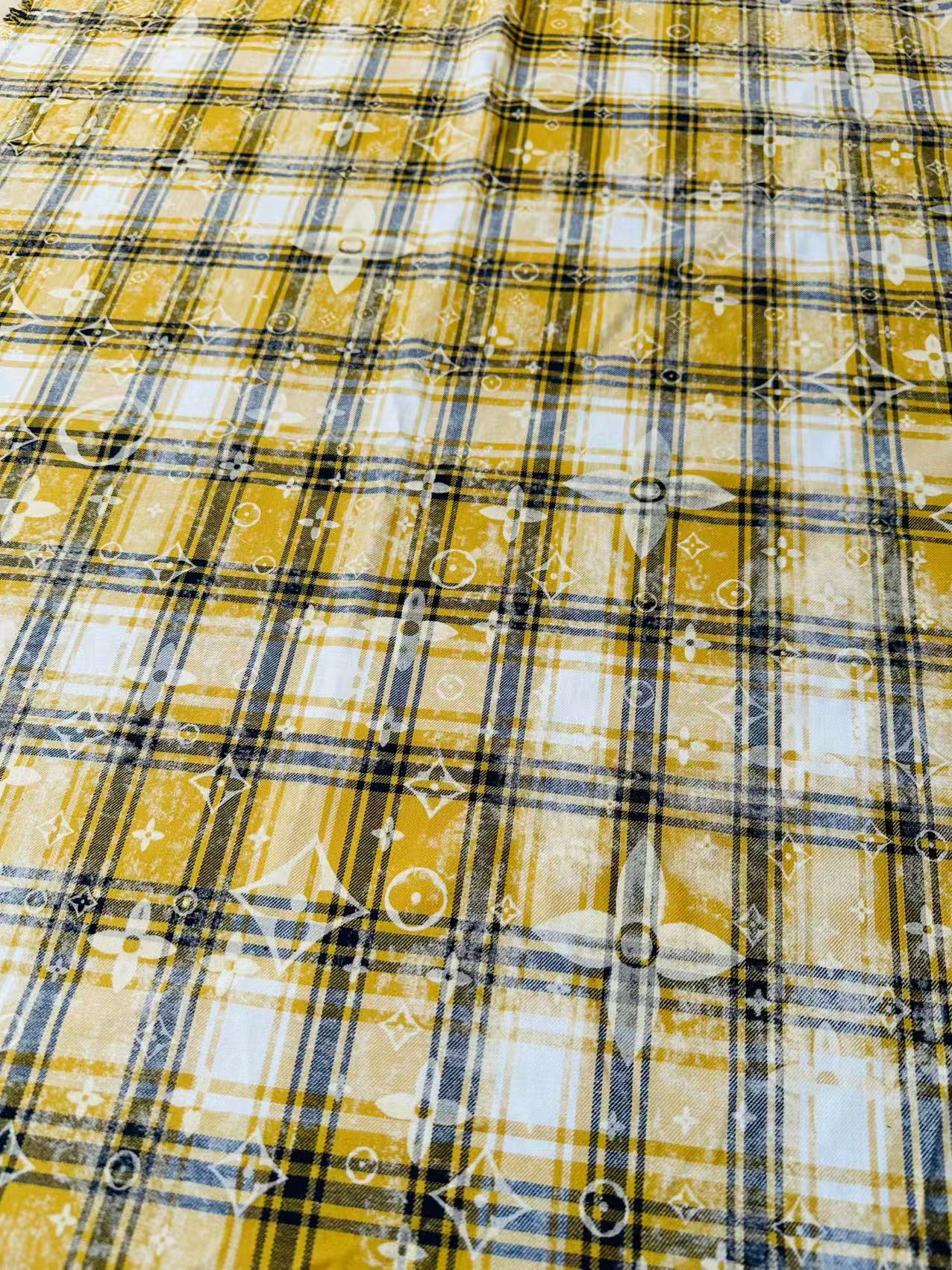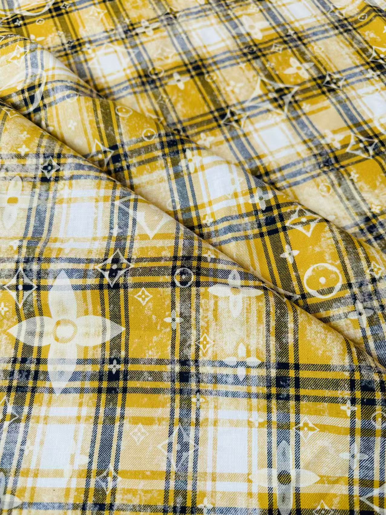 Craft 100% Cotton LV Yarn-dyed Plaid Shirt Fabric For Handmade Clothing,Shoes Goods By Yard (Yellow)