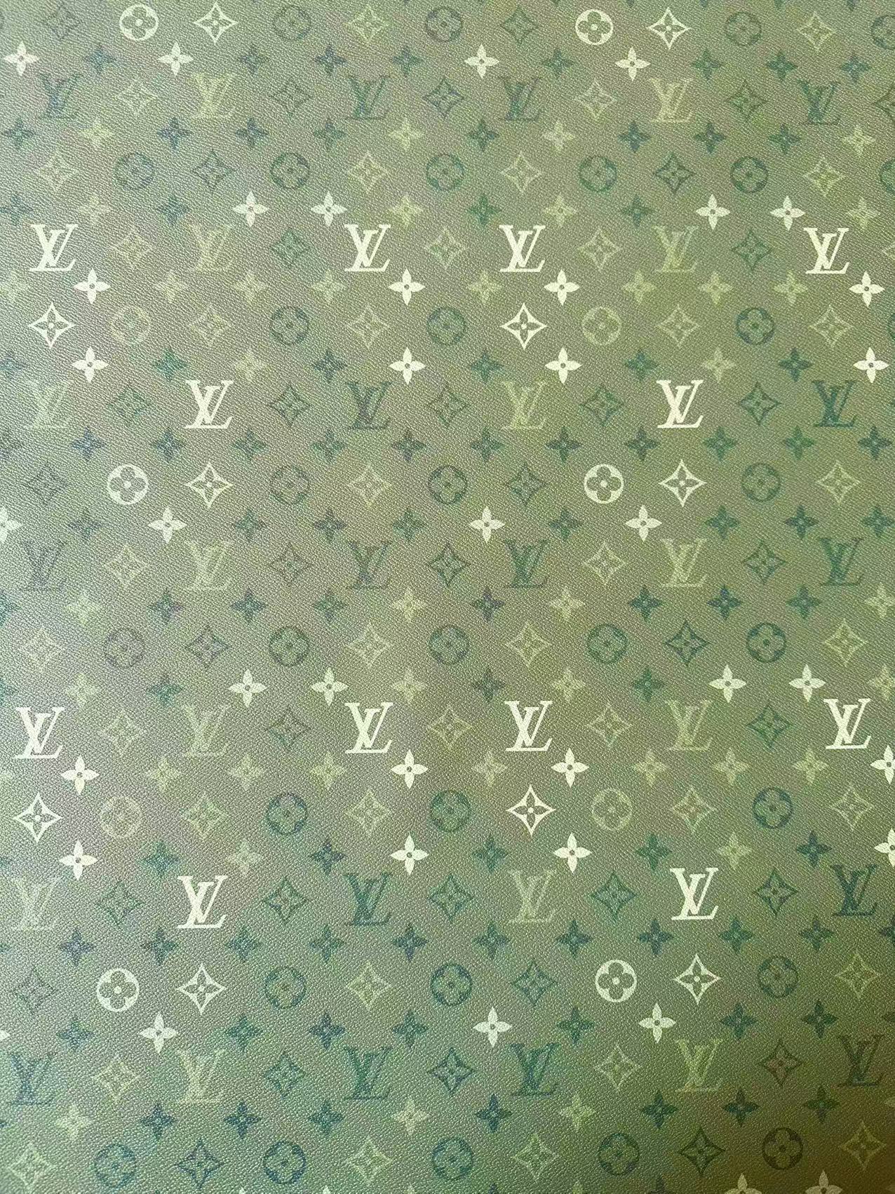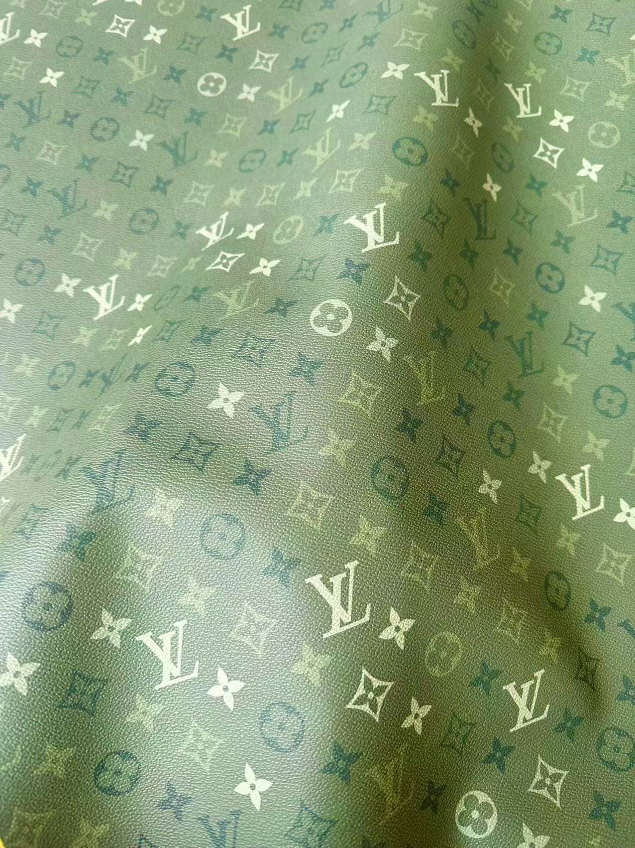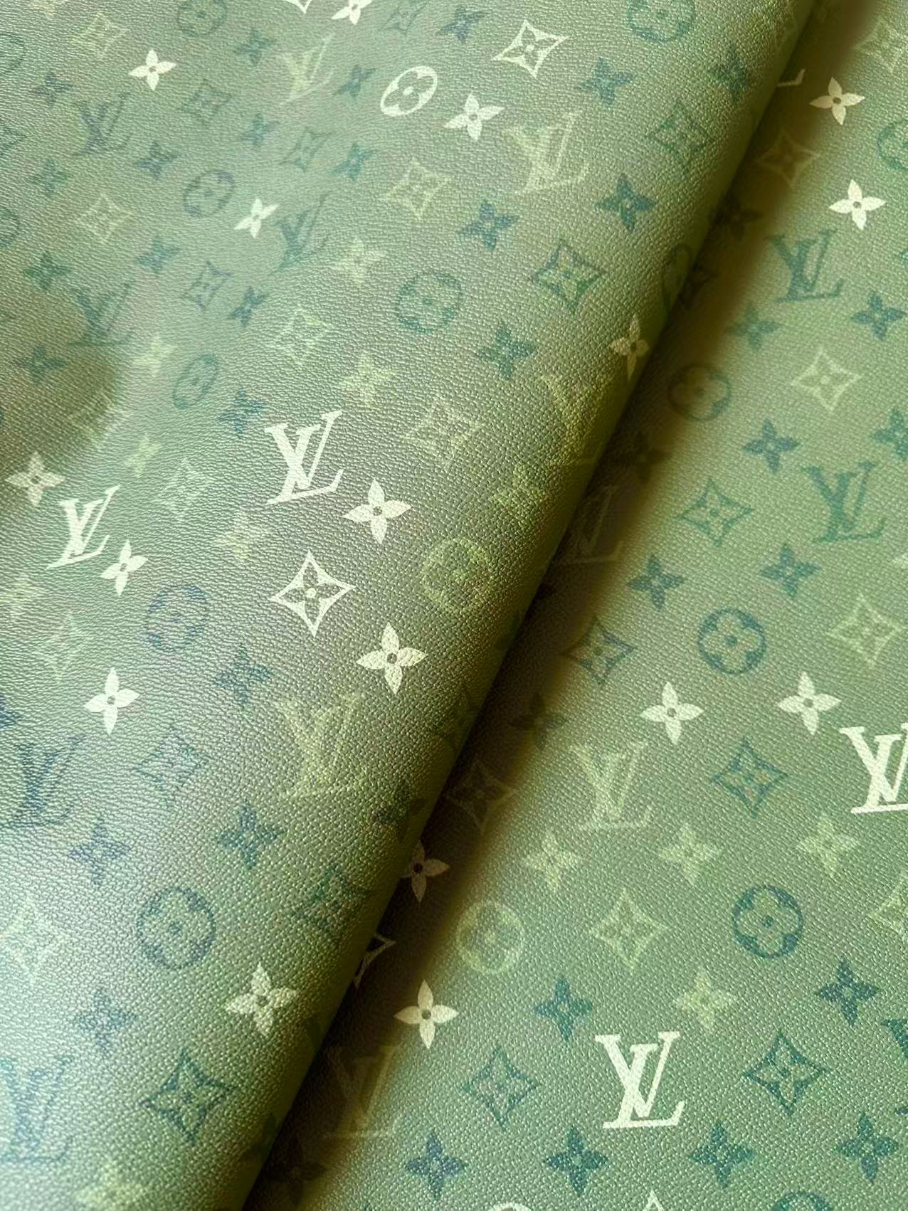 Craft Avocado Green Gradient LV Leather Fabric For Handmade Sneaker,Upholstery Handicraft Goods By Yard