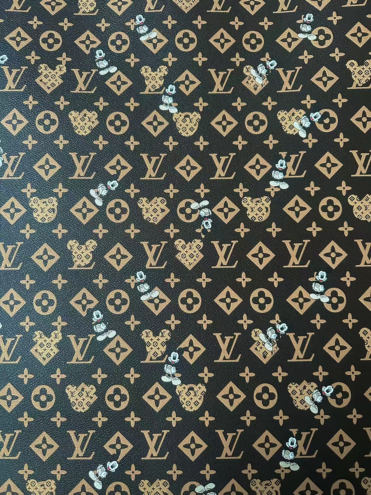 Craft Best Quality LV With Mickey Mouse Vinyl Leather Fabric For Handmade Sneaker,Upholstery By Yard