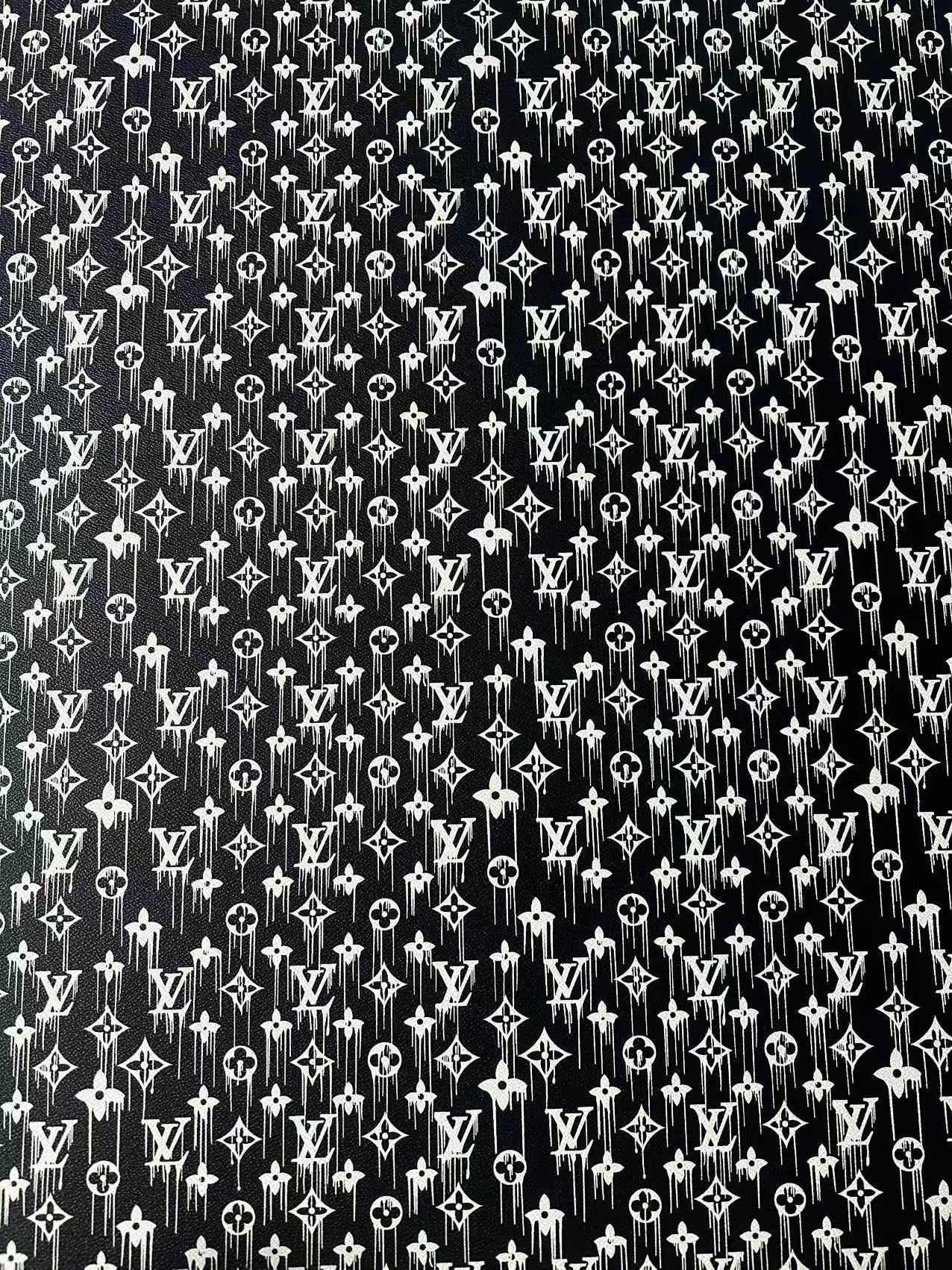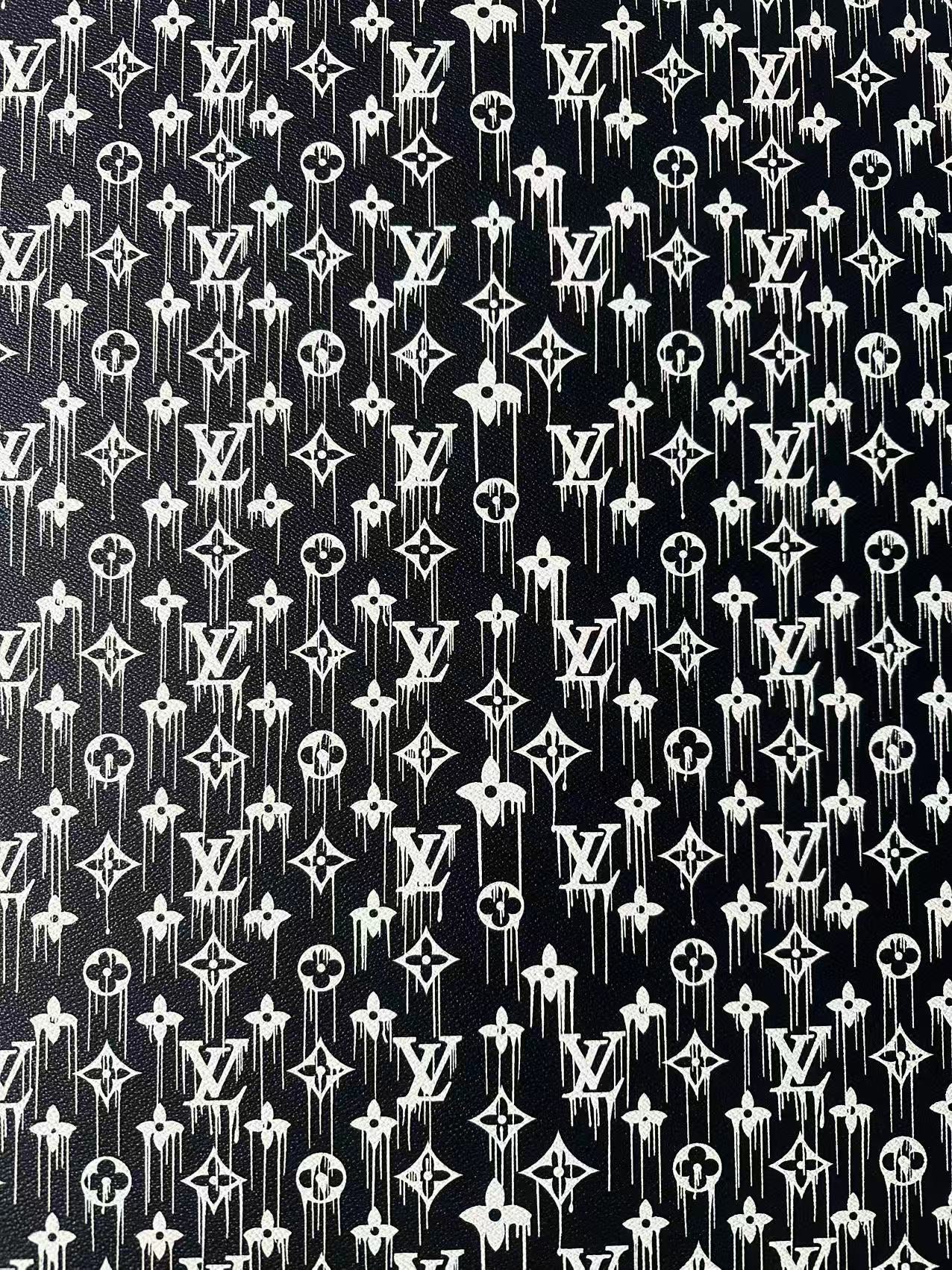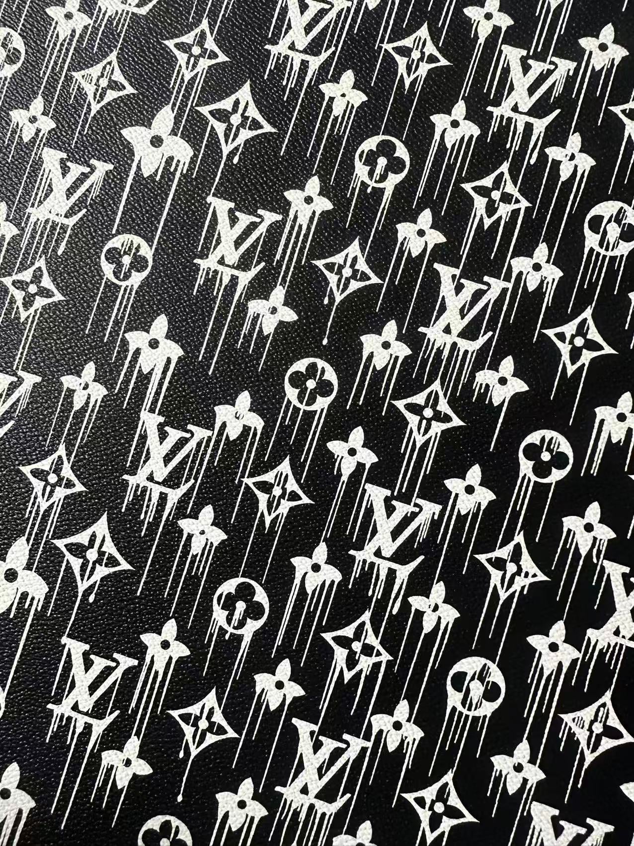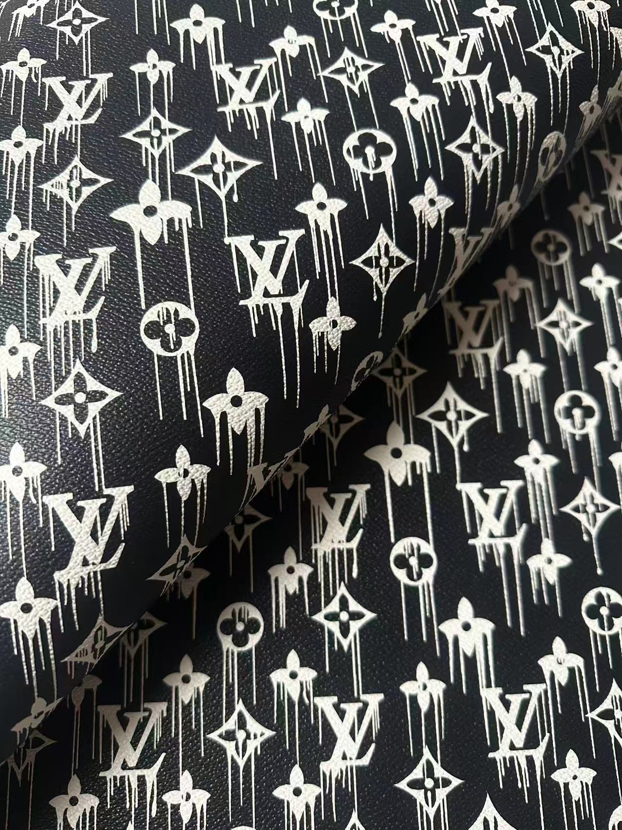 Craft Black With White Dripping LV Vinyl Leather For Handmade Sneaker,Bag ,Upholstery Goods By Yard