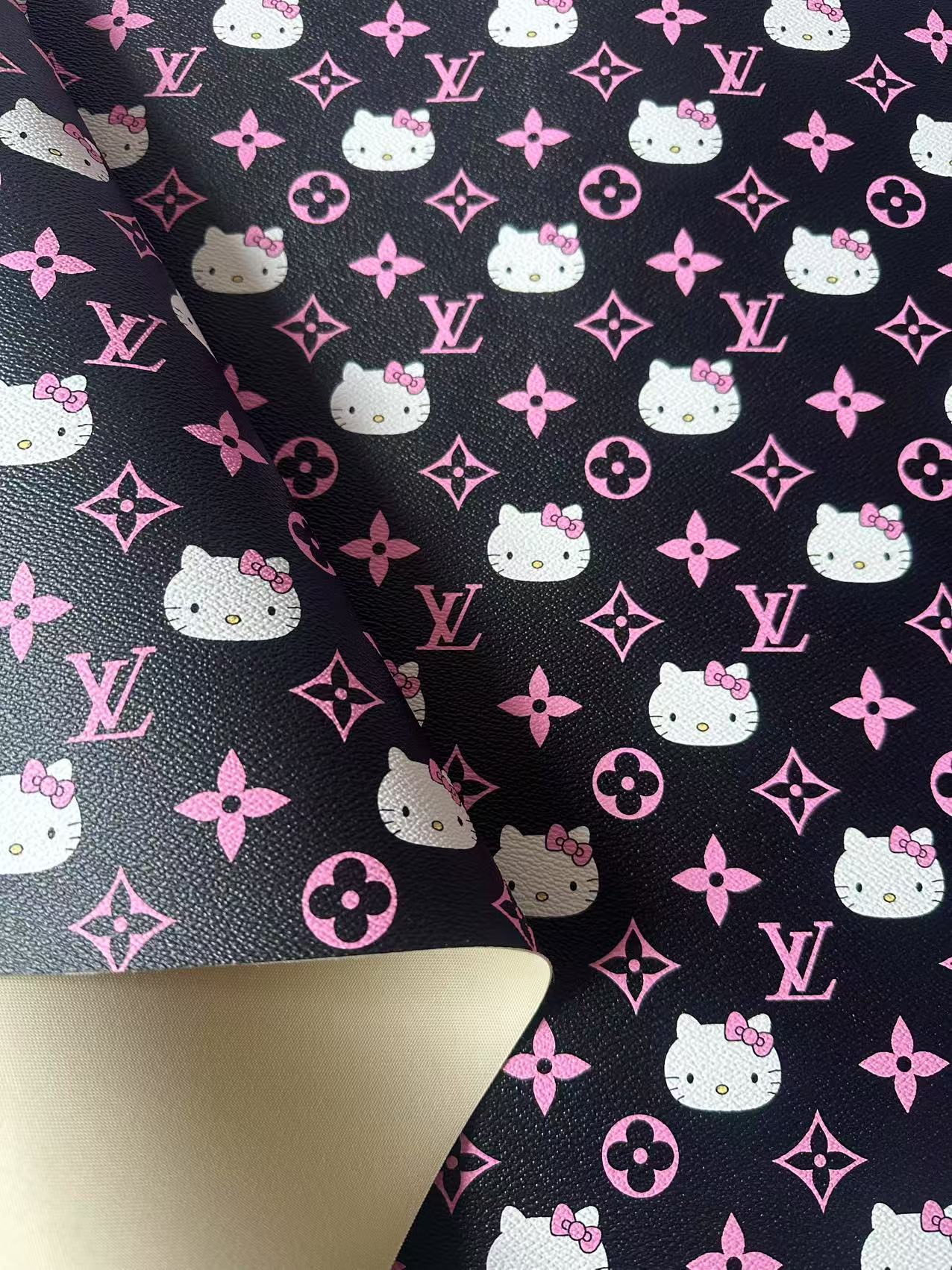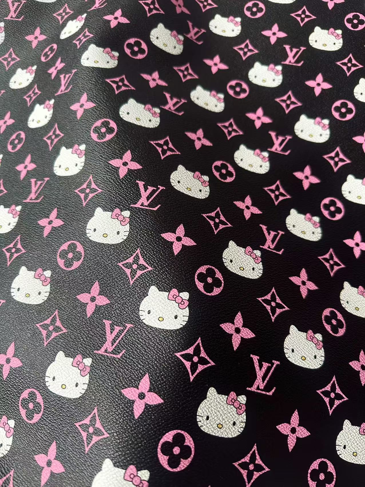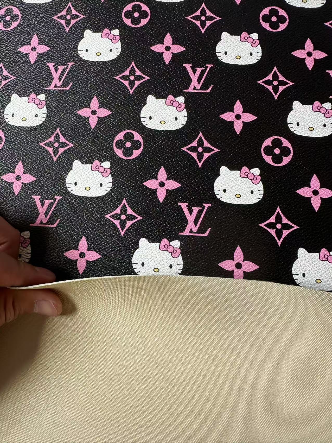 Craft Pink LV With Hello Kitty Vinly Leather For Handmade Shoes , Car Upholstery Handicraft Goods