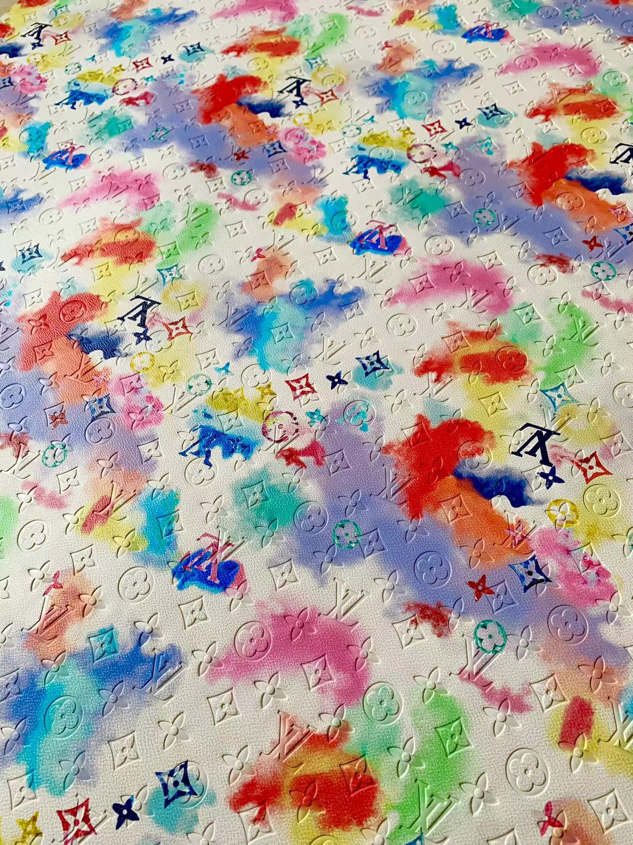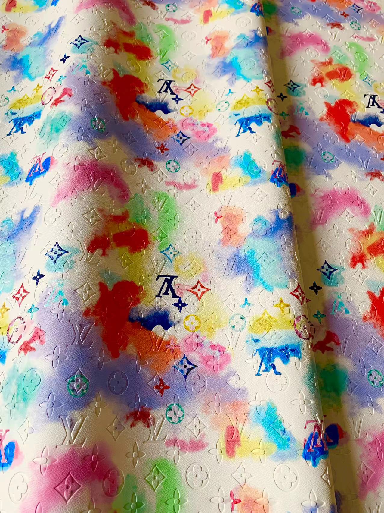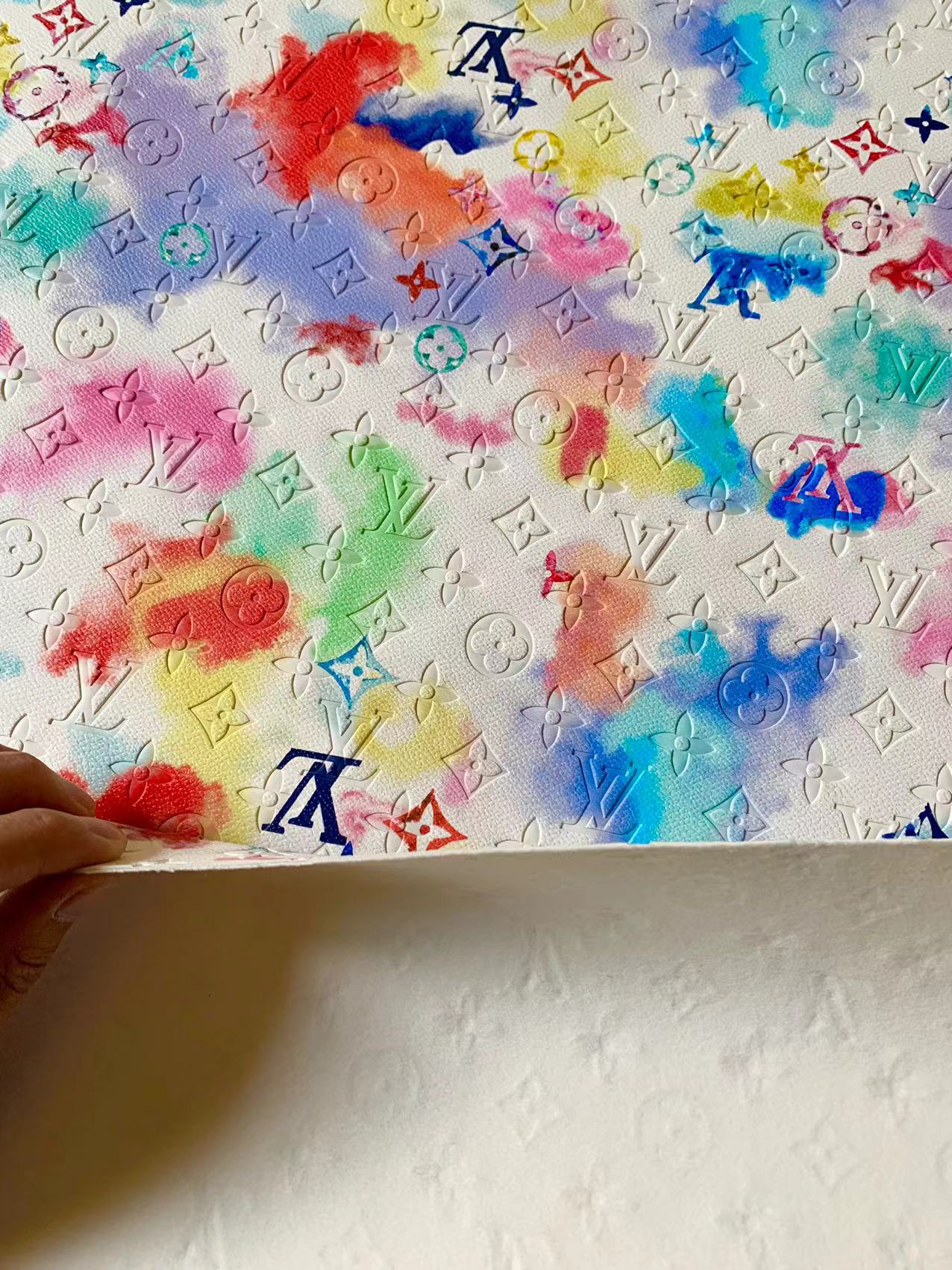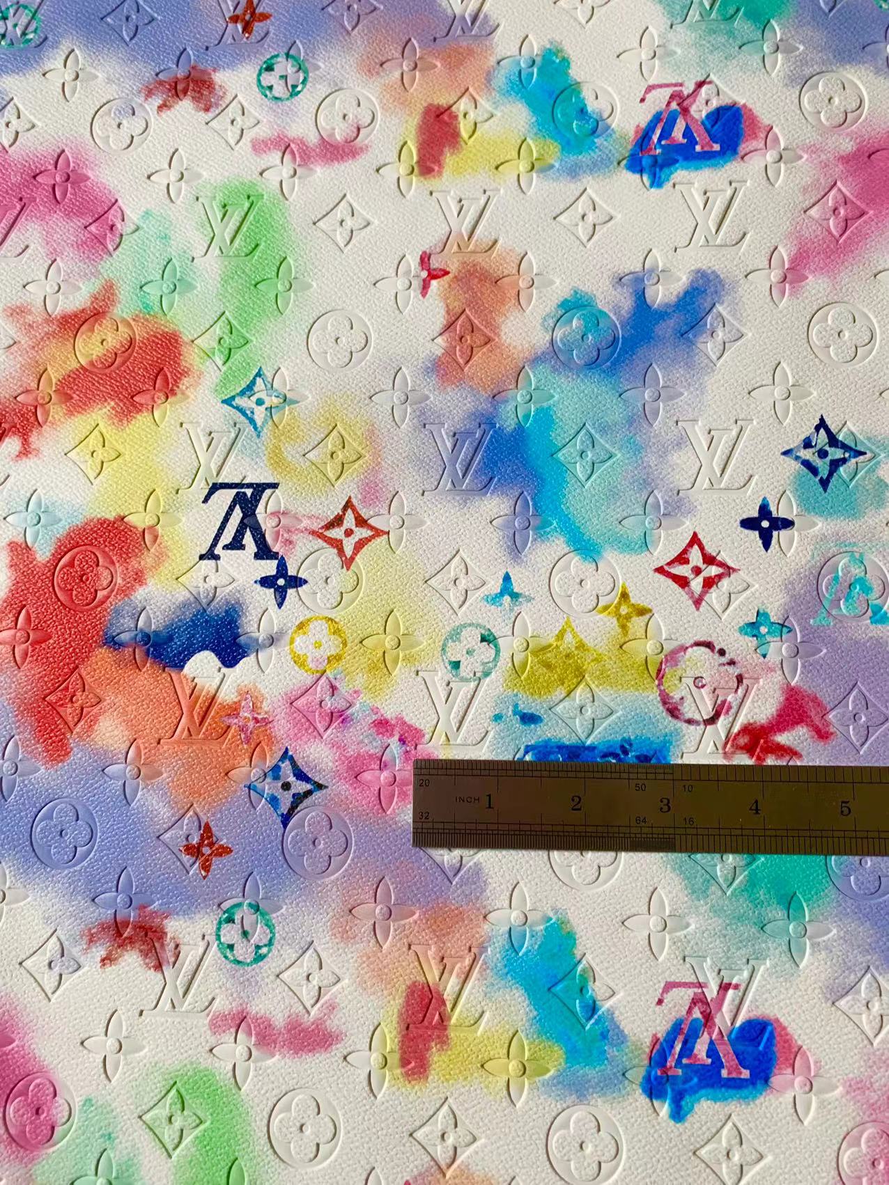 Craft Reversal LV LOGO Embossed Leather Fabric With Colorful Ink Pigment Deisgn For Handicraft By Yard