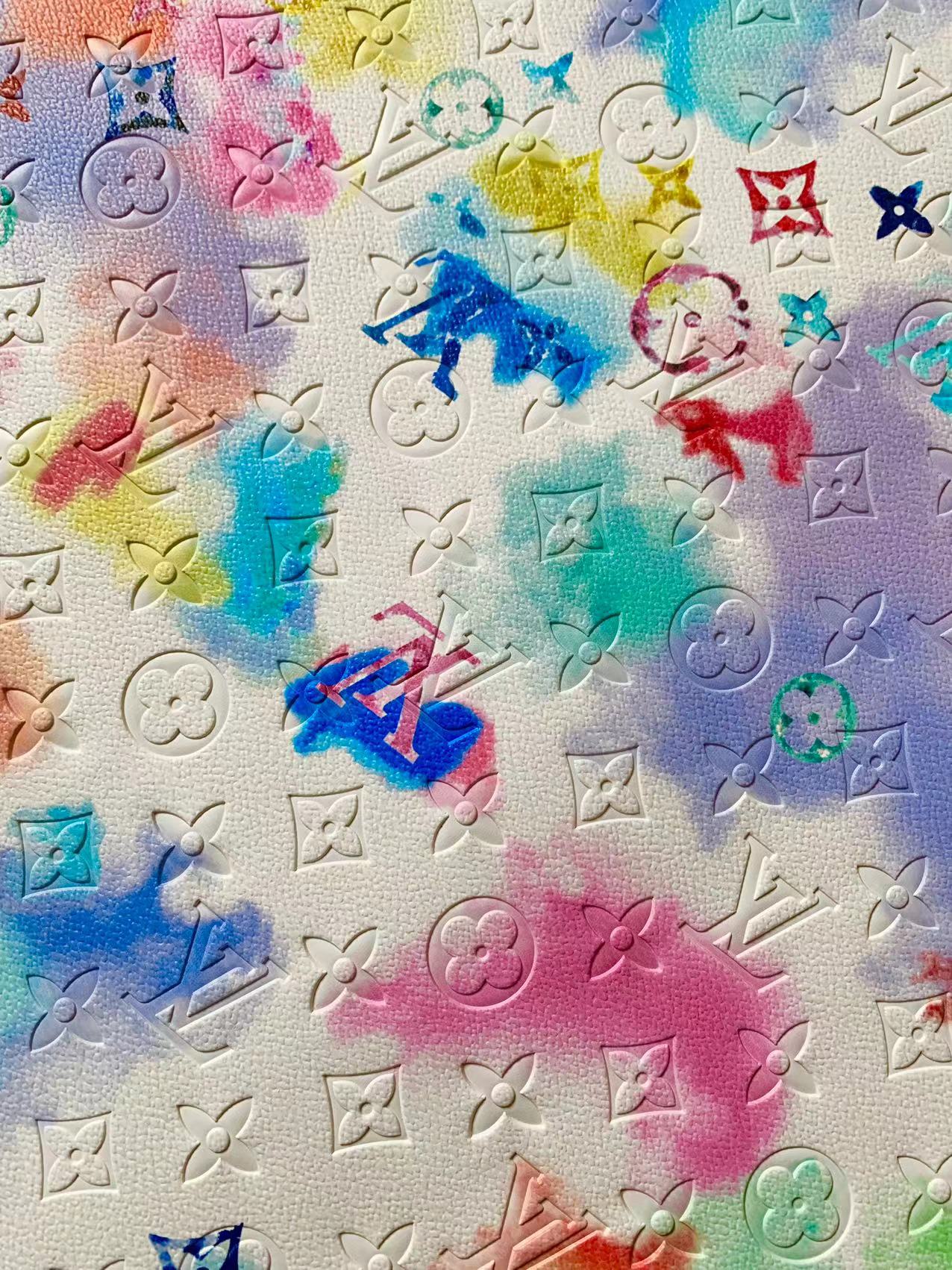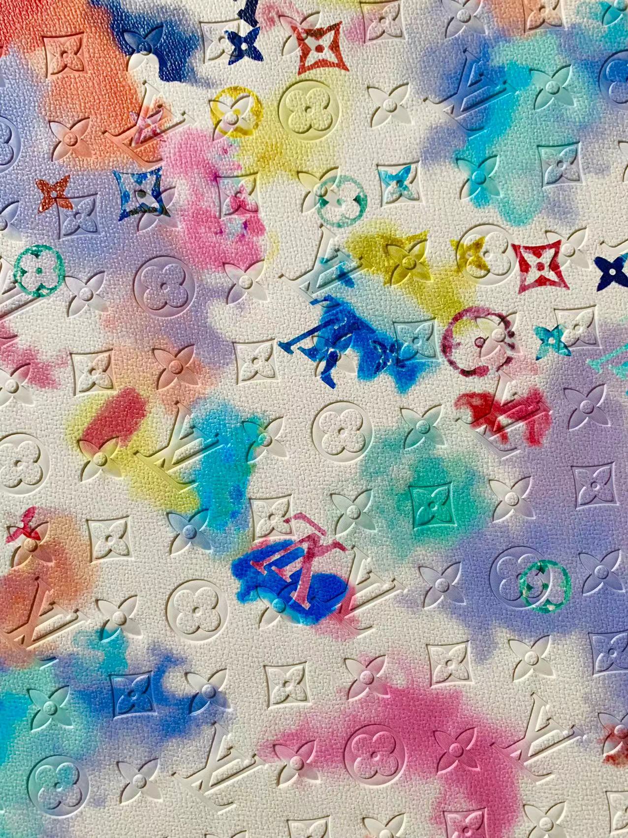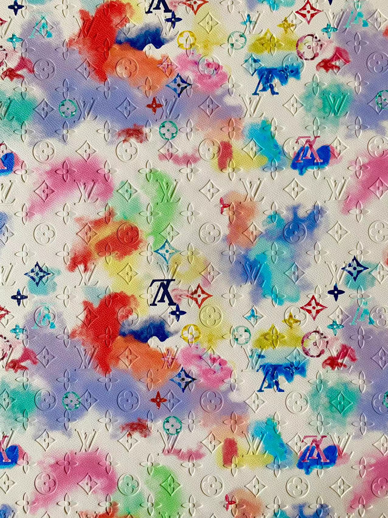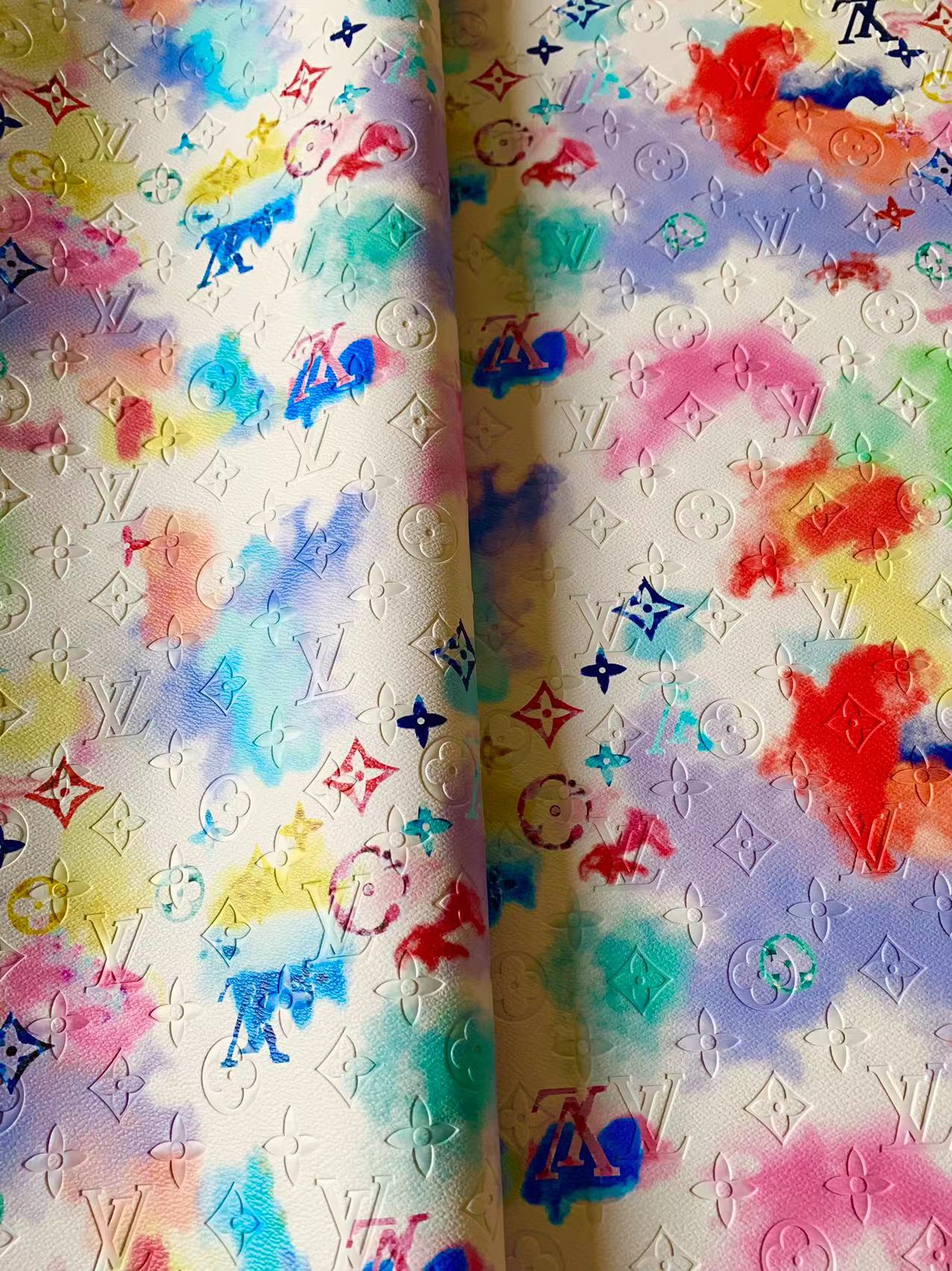 Craft Reversal LV LOGO Embossed Leather Fabric With Colorful Ink Pigment Deisgn For Handicraft By Yard