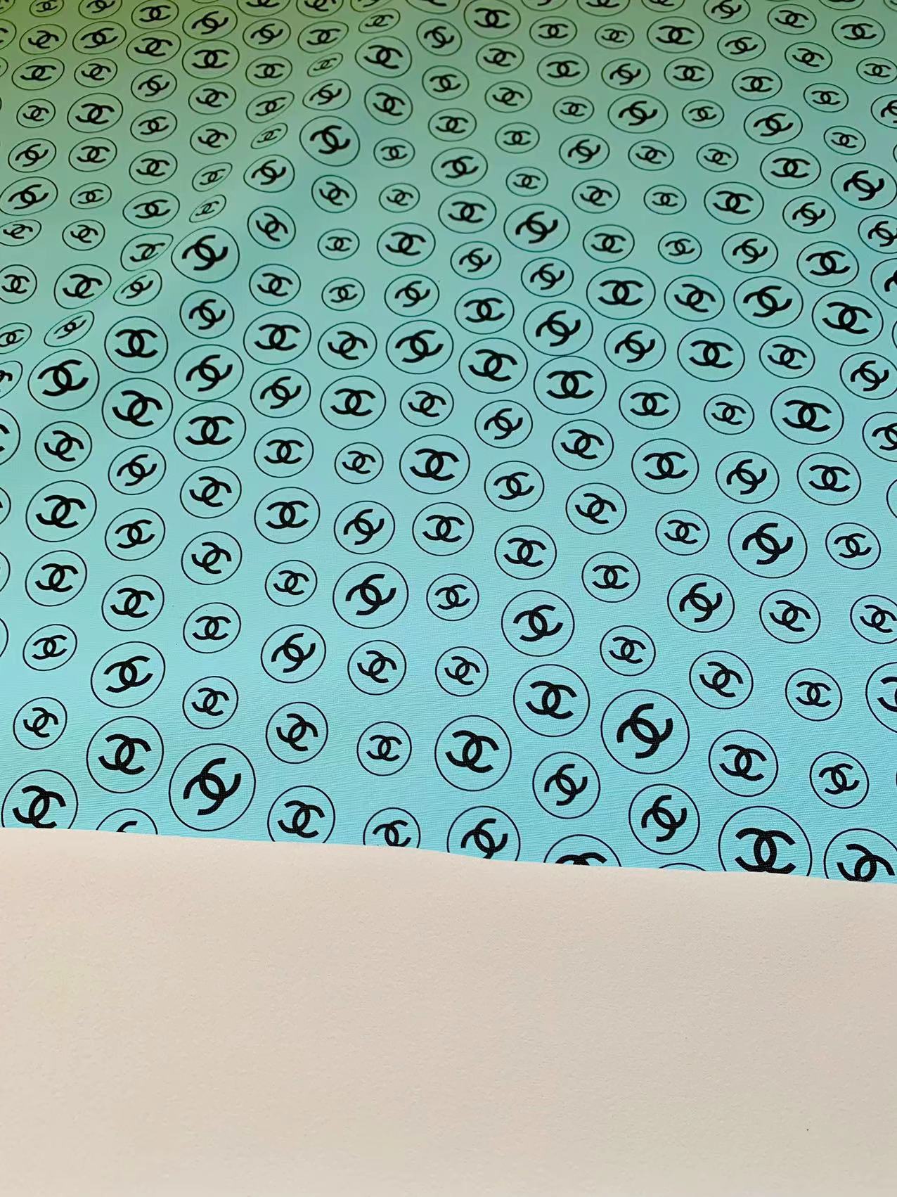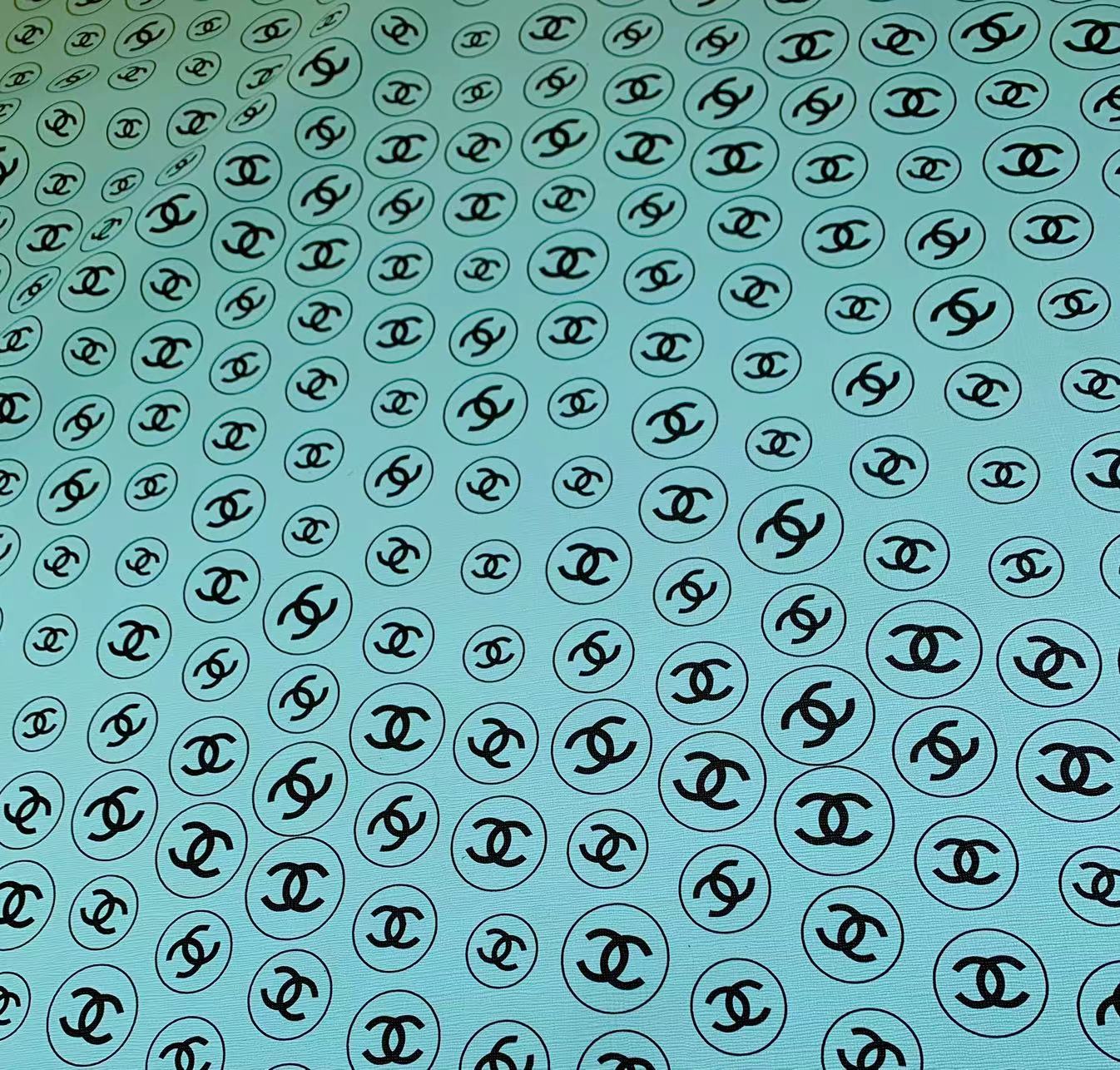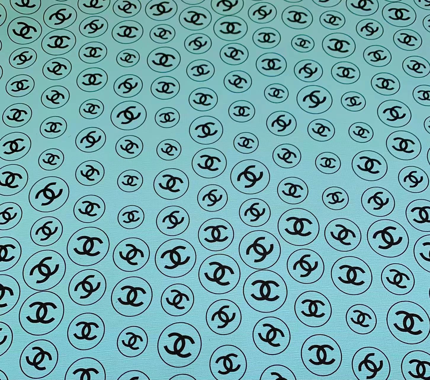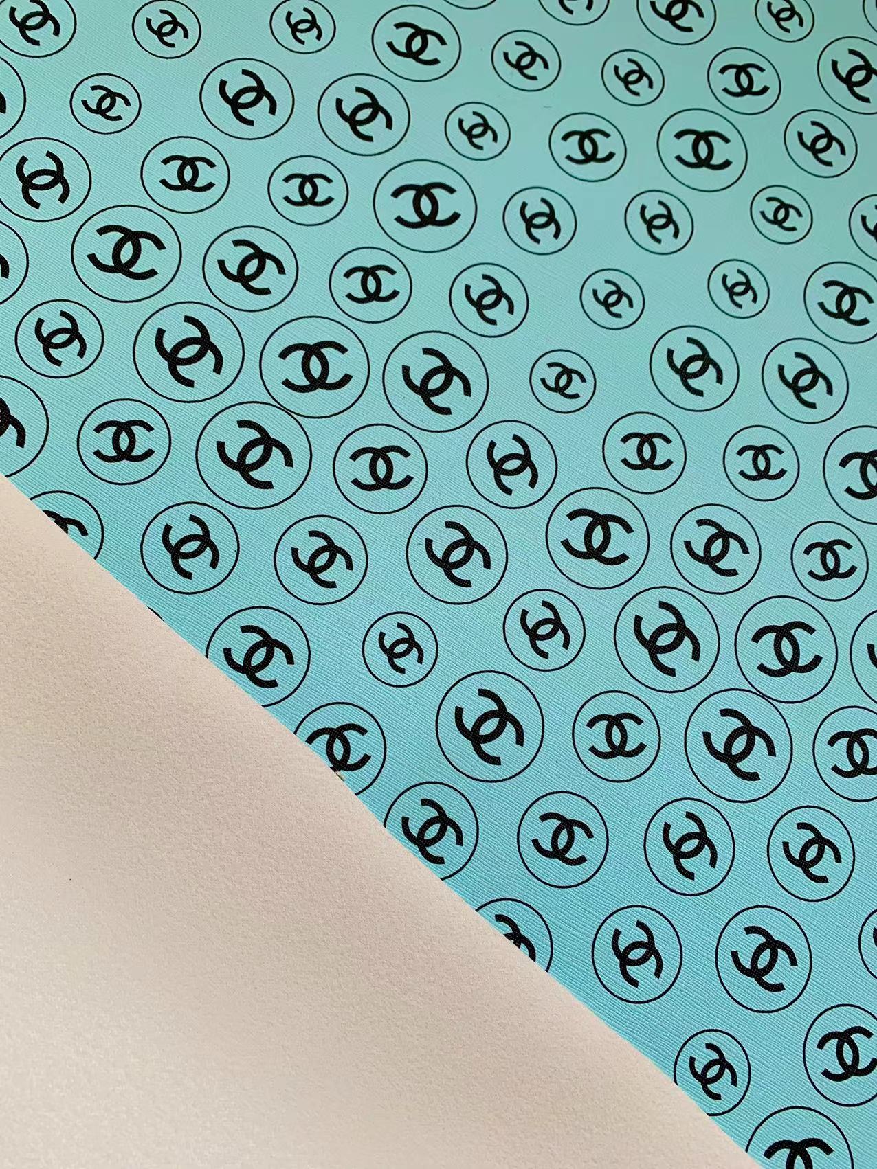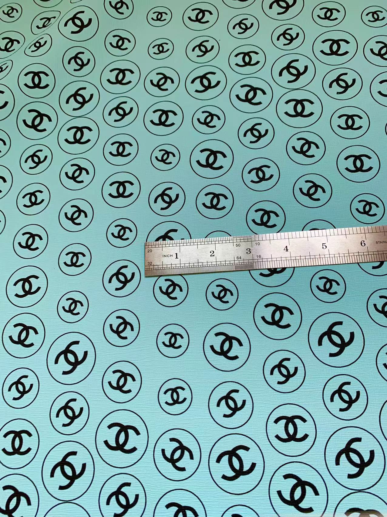 Custom Sky Blue Chanel Design Leather For DIY Sneakers And Upholstery By Yard