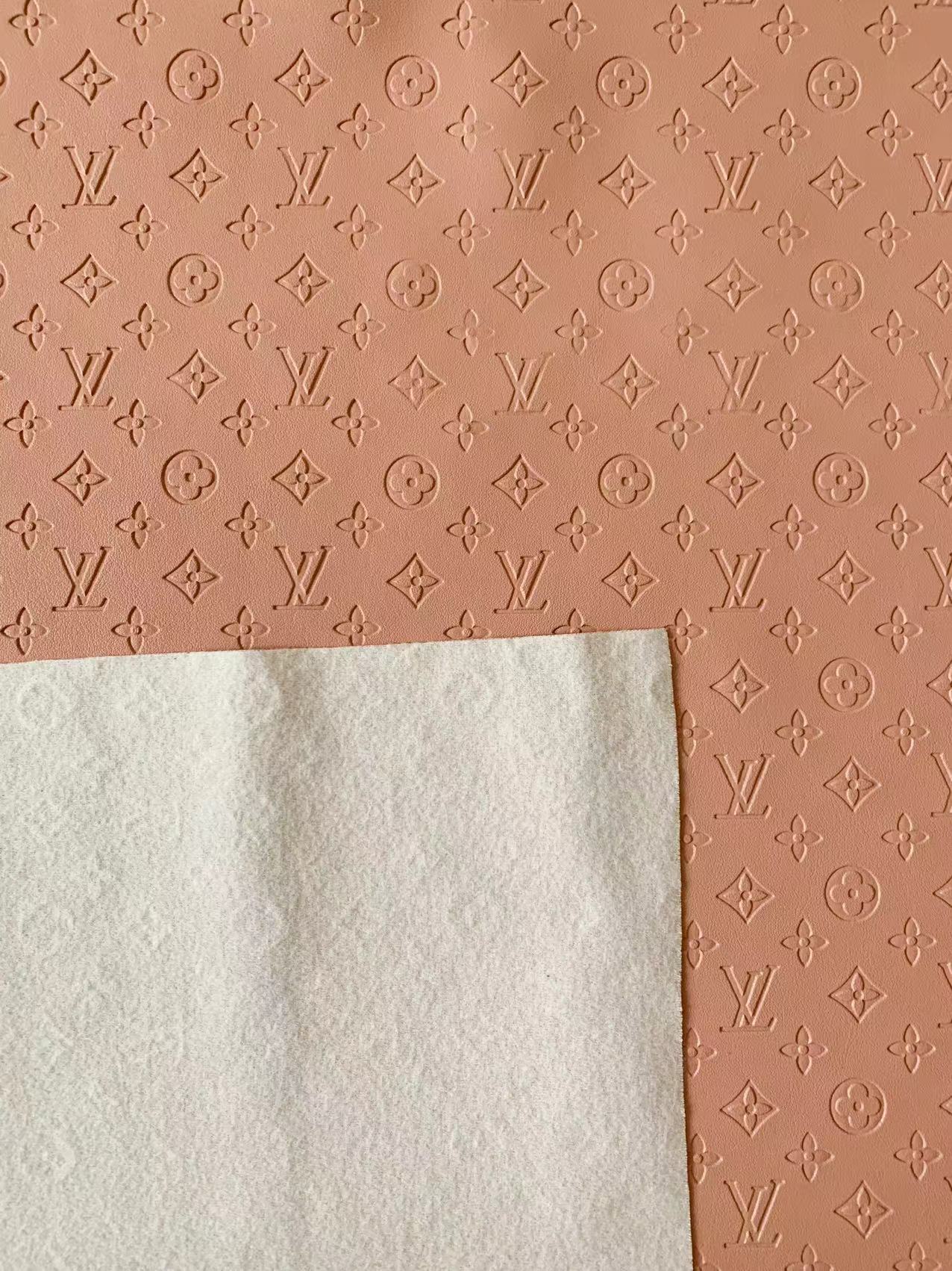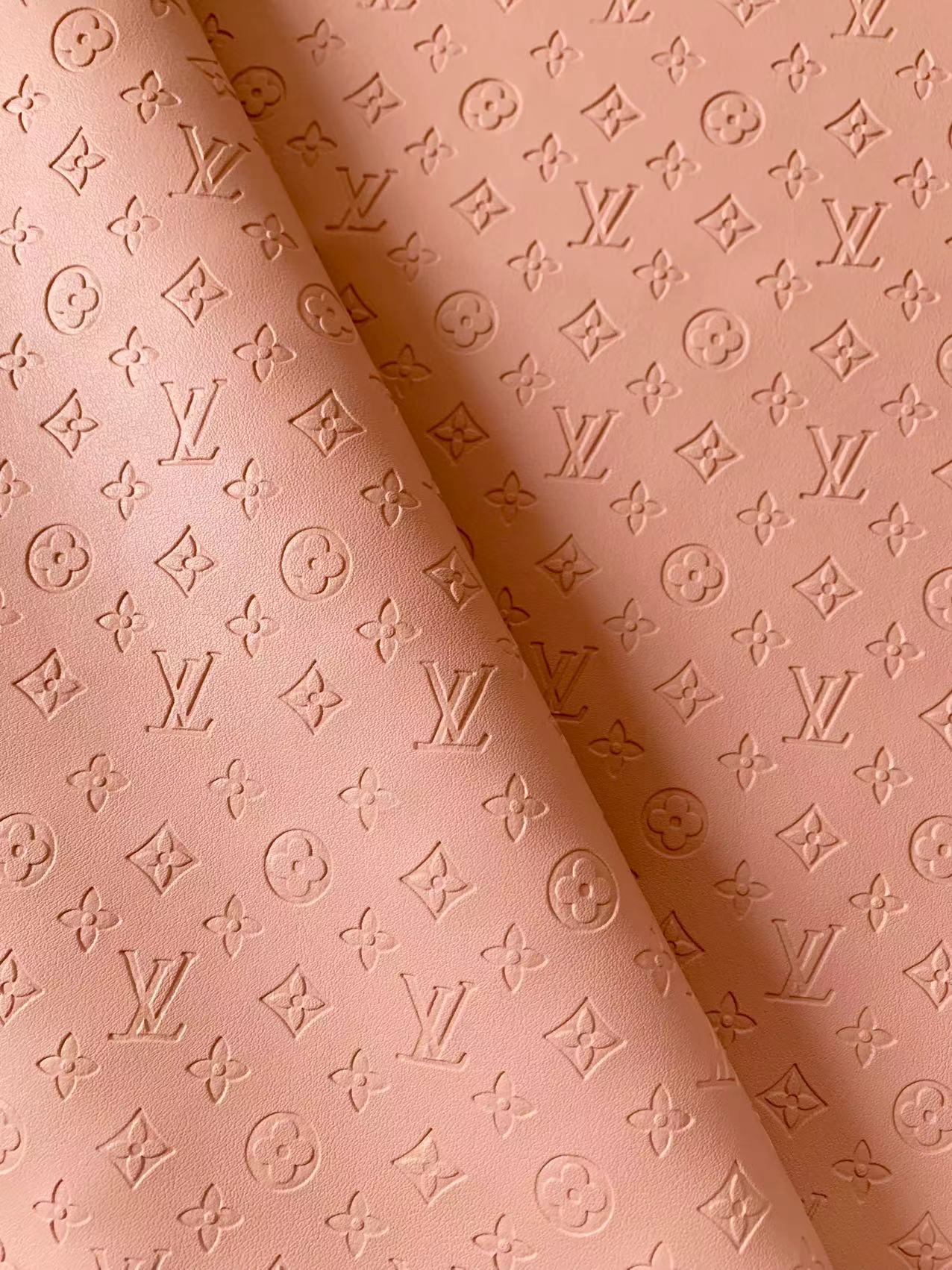 Fashion 0.5 inch Embossed LV Craft Leather Fabric Shoes Leather , Bags Leather Fabric By Yards (Pink)