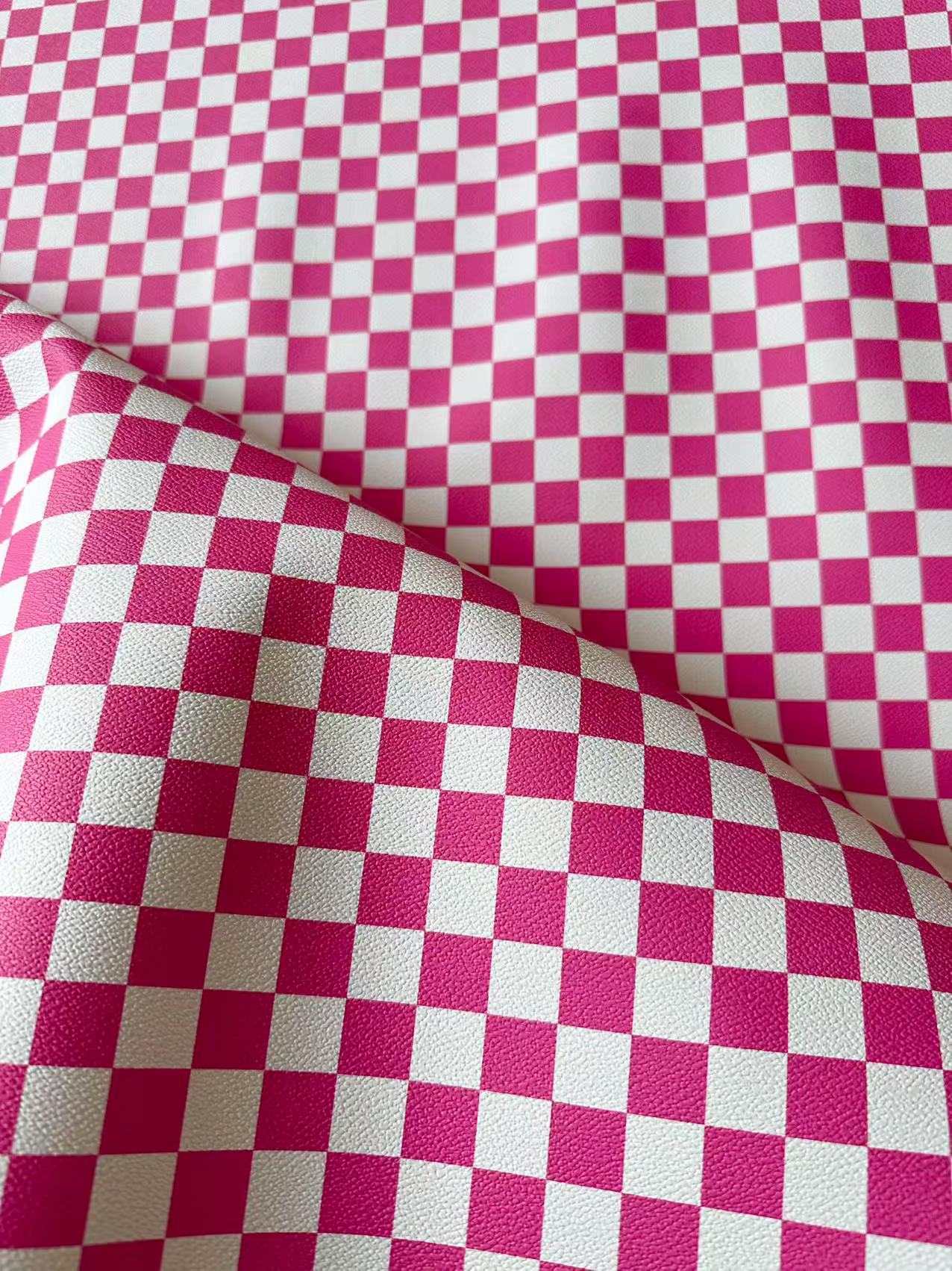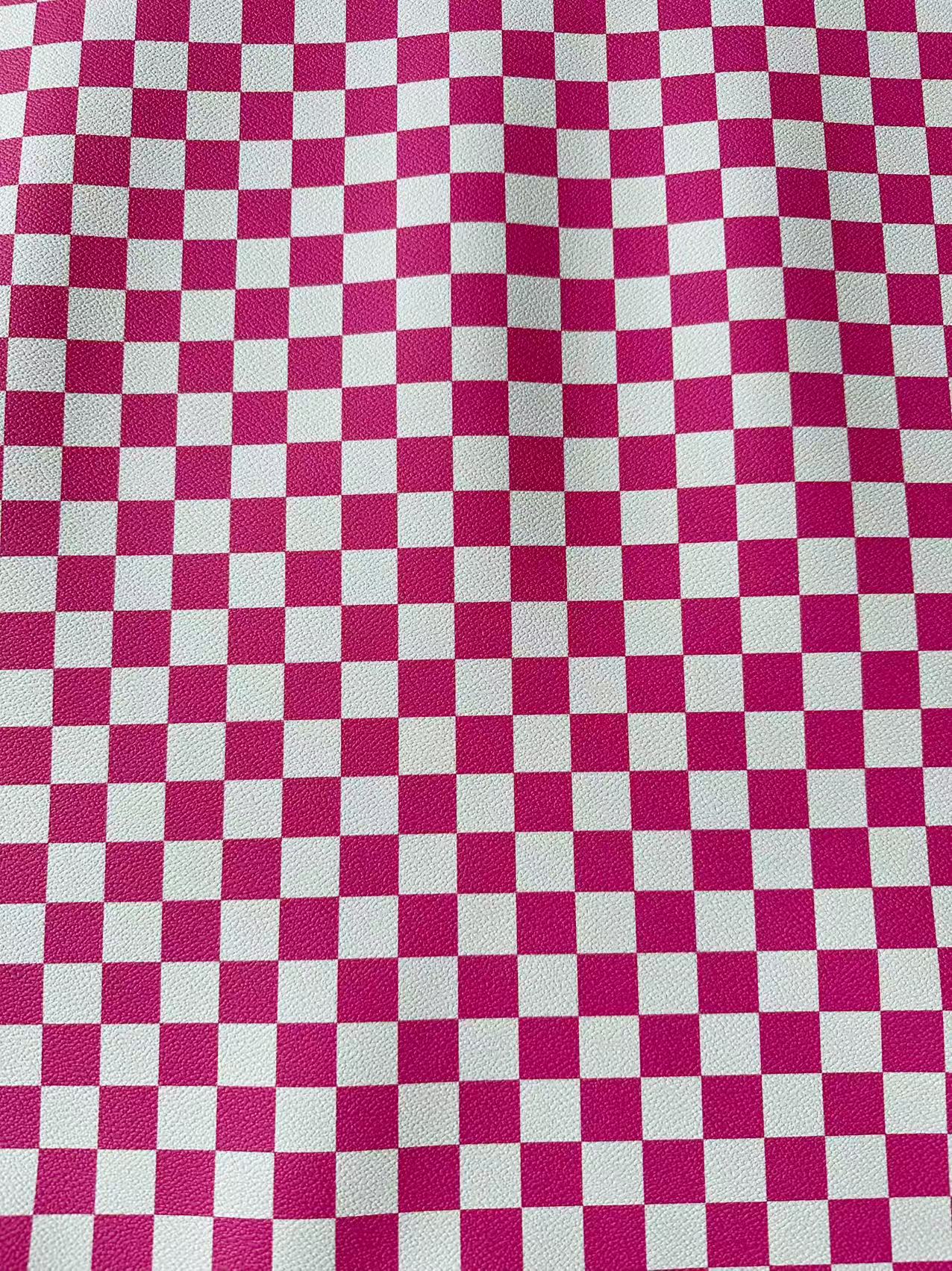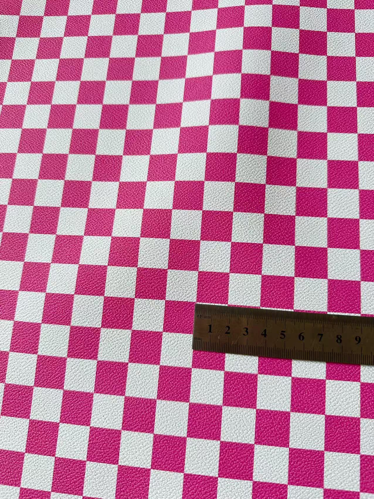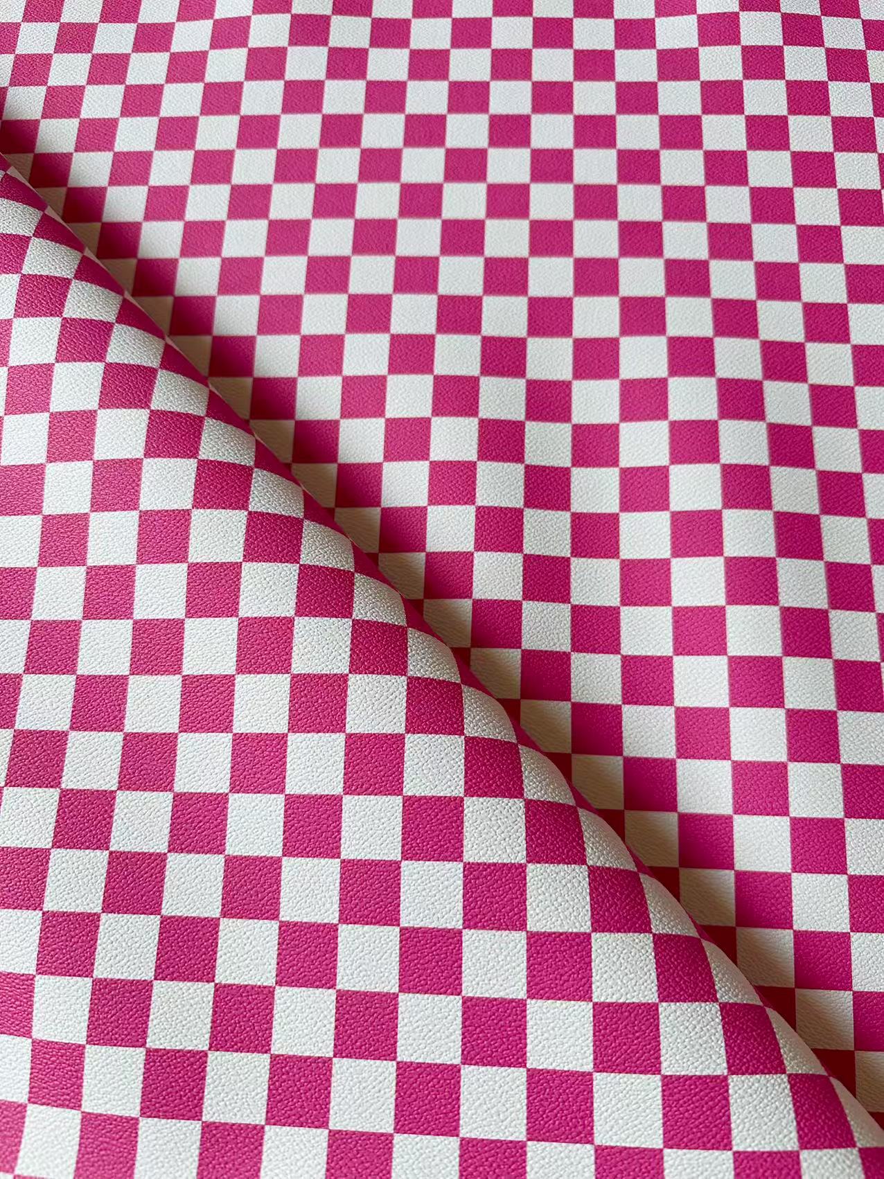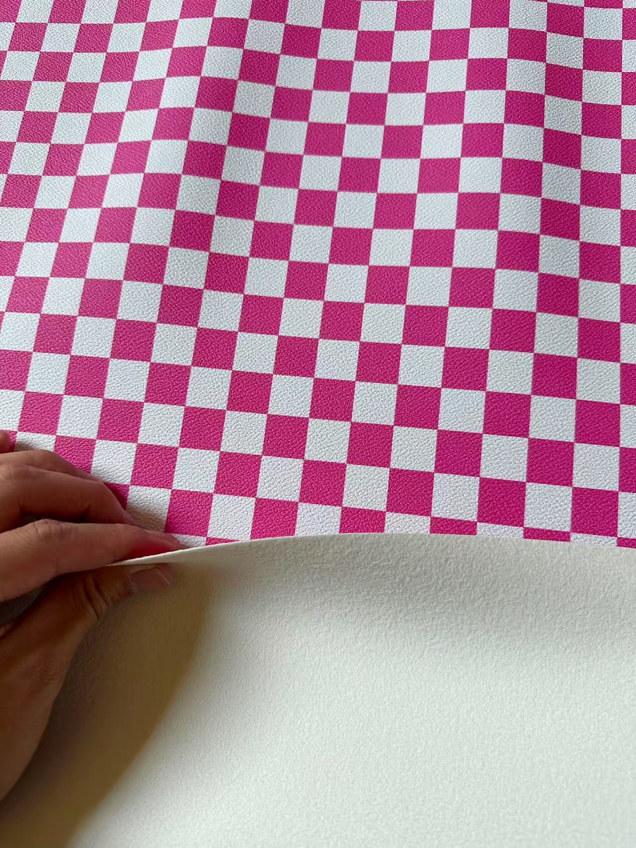 Fashion 18MM Bright Pink With White Plaid Leather For Handmade Goods