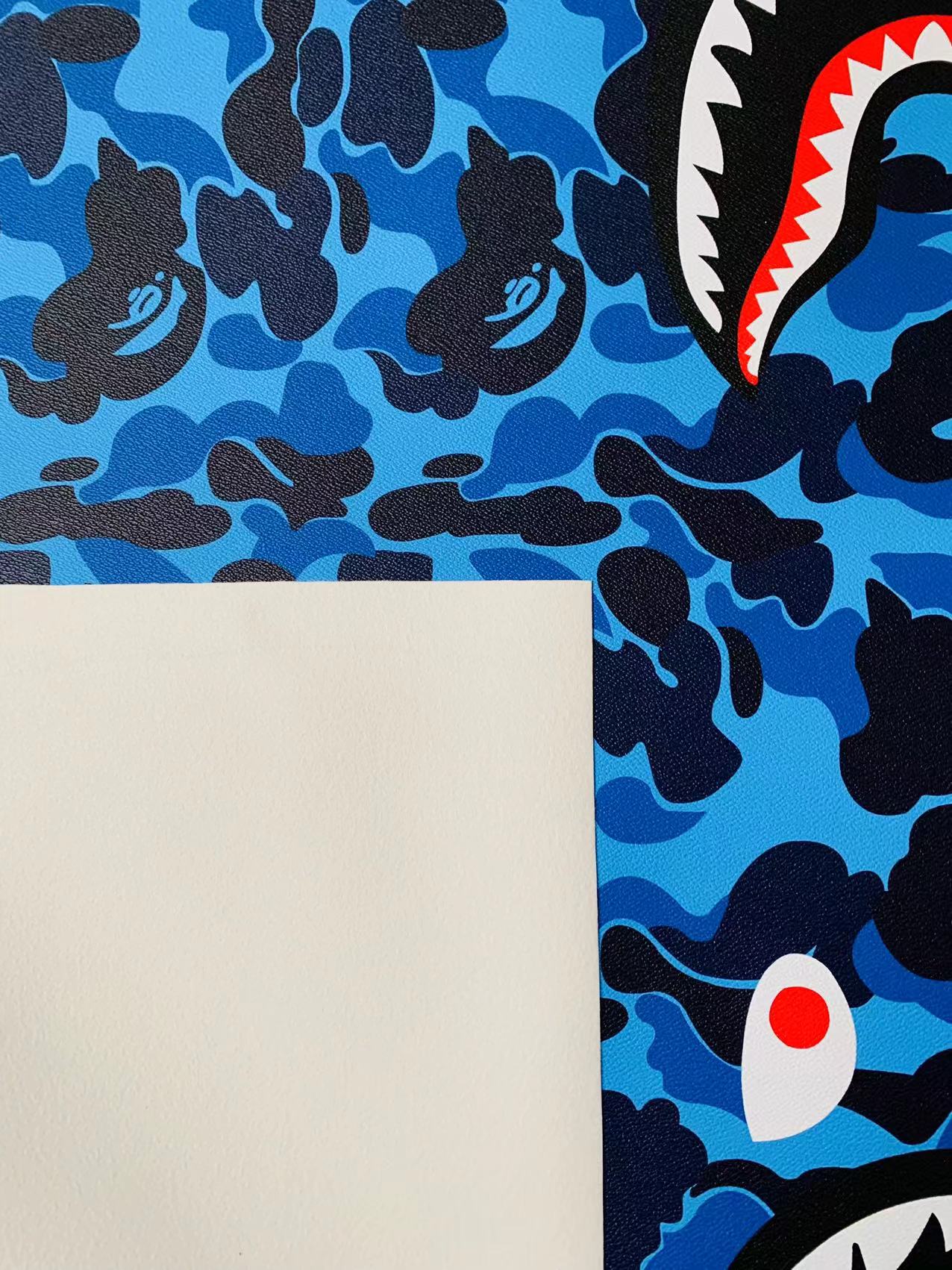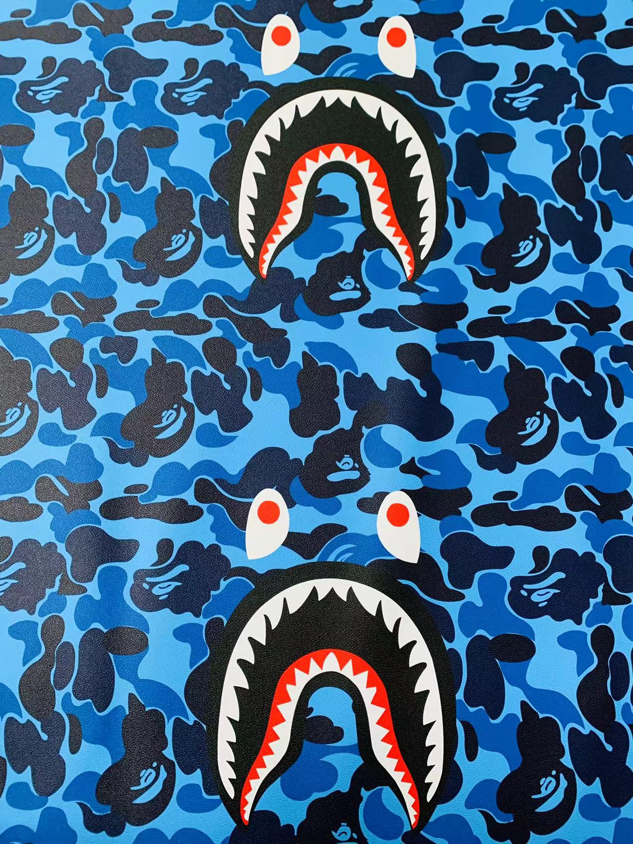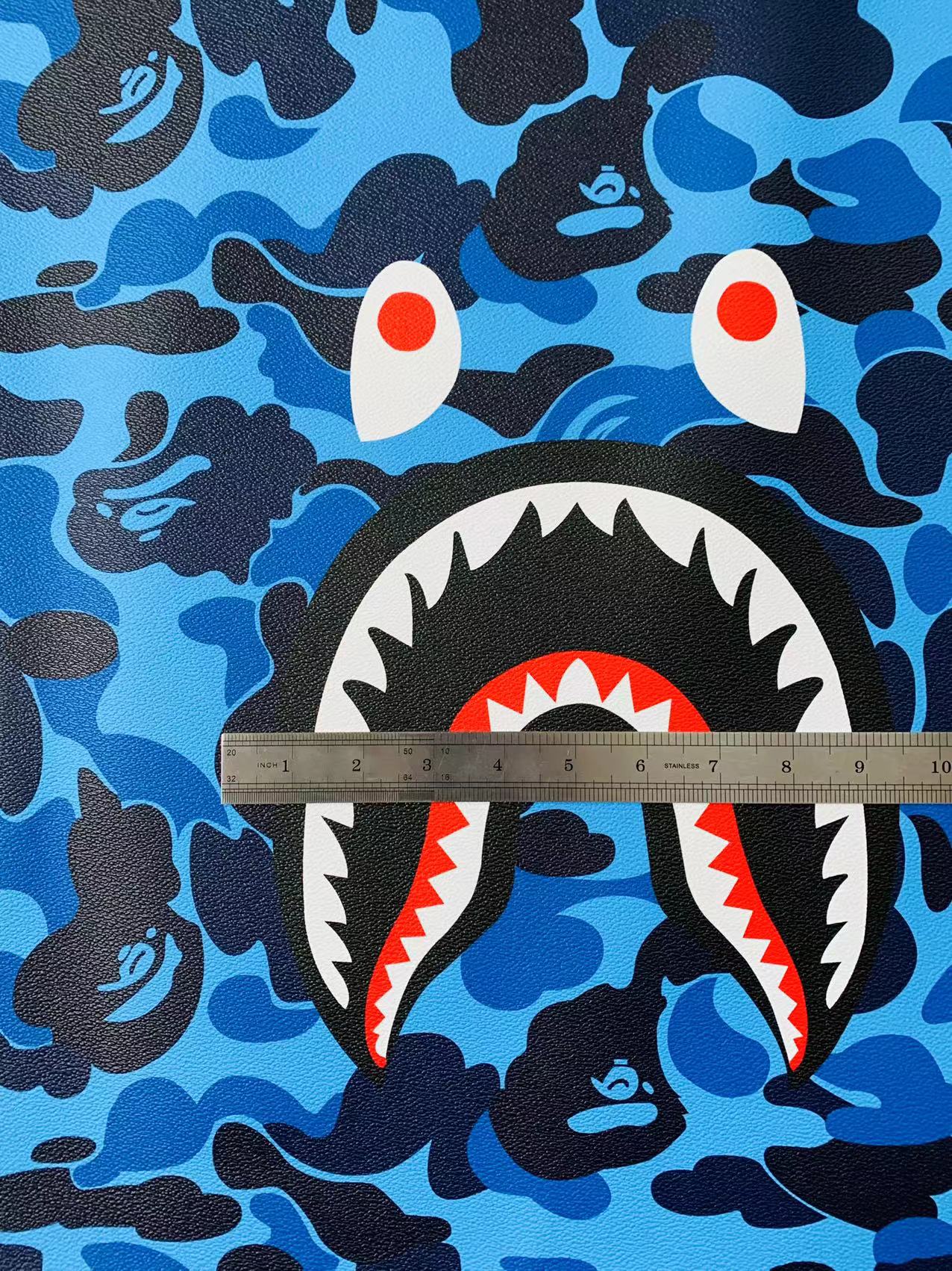 Fashion Bape Shark Teeth Design Custom Leather Fabric For Bags Leather Shoes Custom Leather By Yard (Blue)