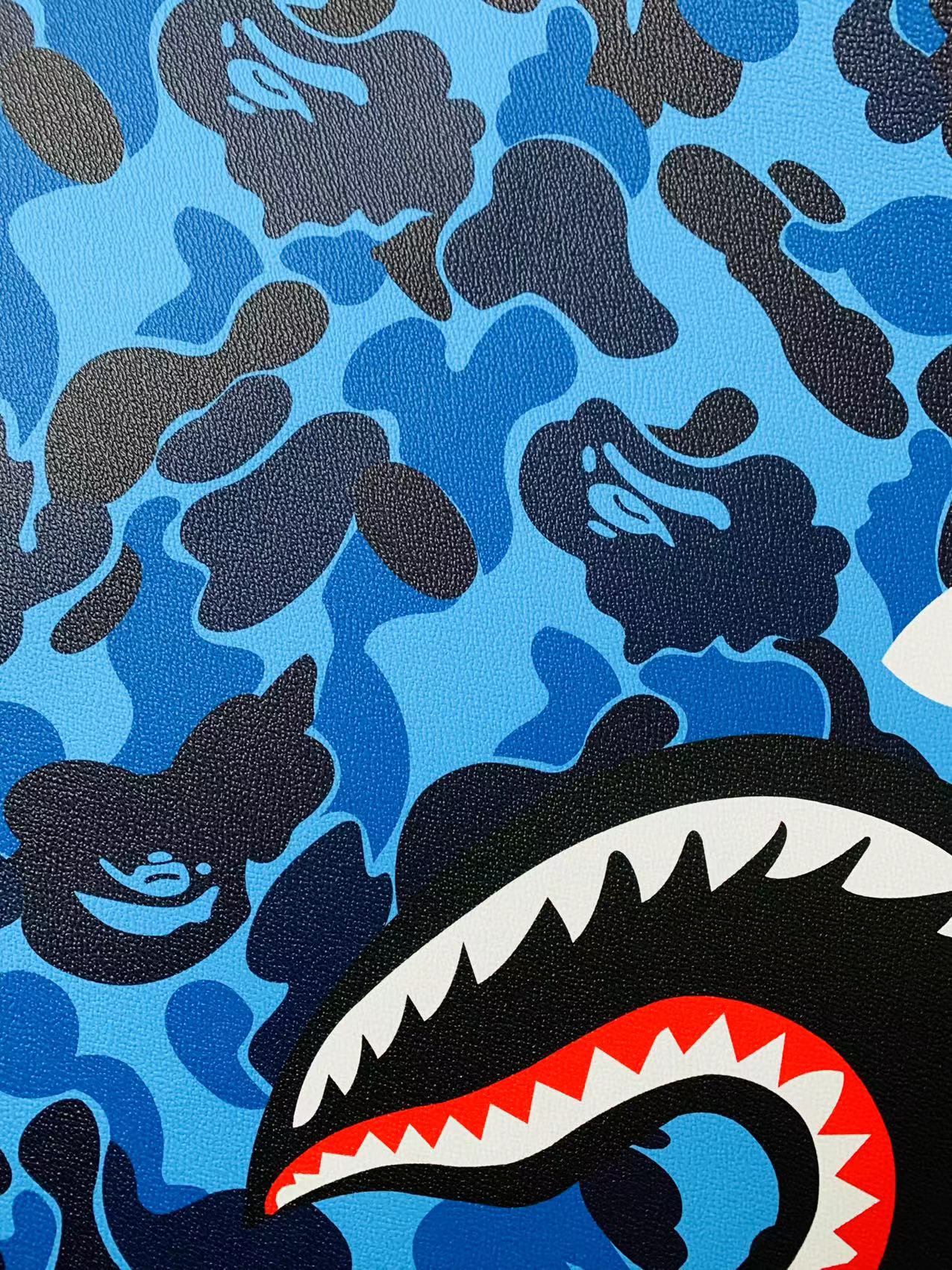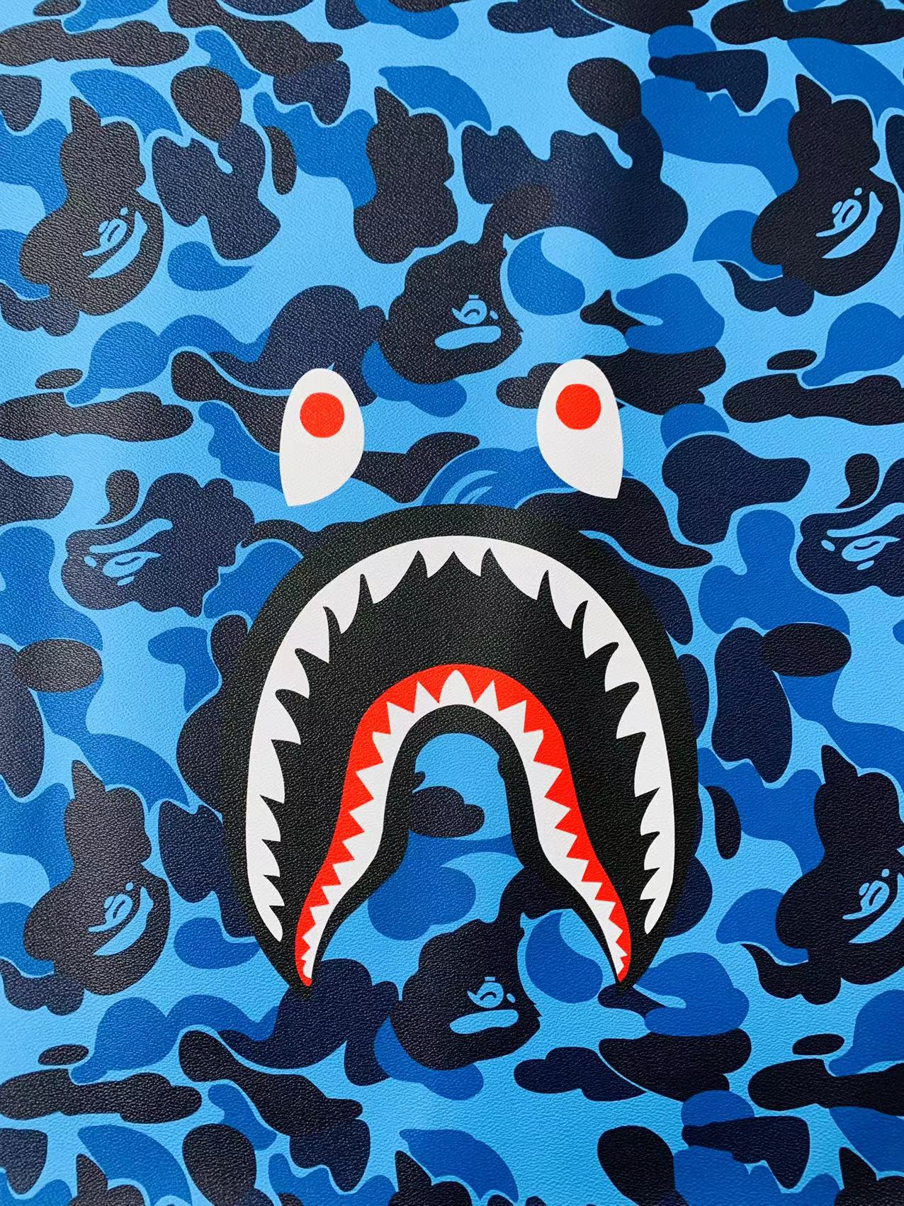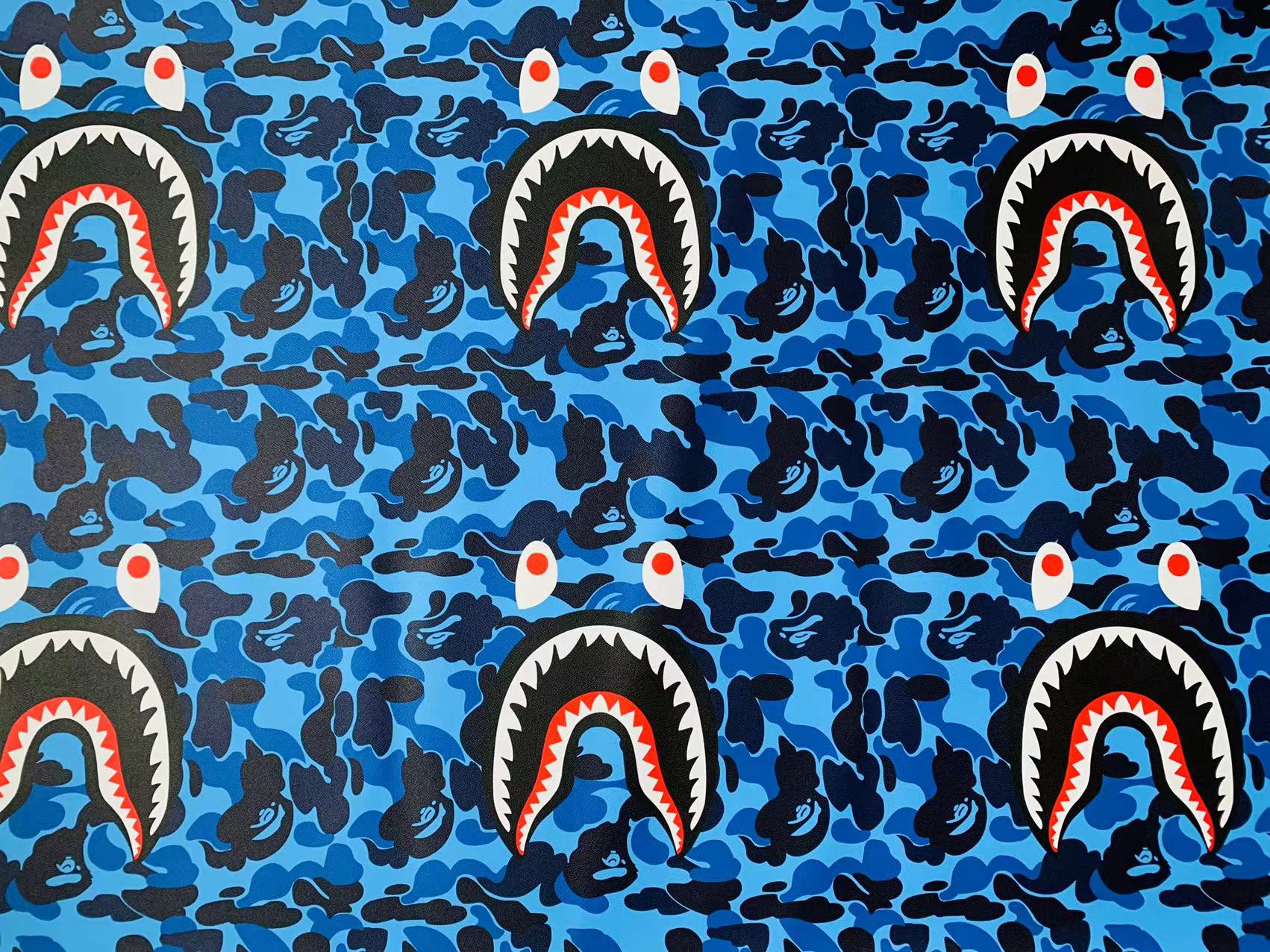 Fashion Bape Shark Teeth Design Custom Leather Fabric For Bags Leather Shoes Custom Leather By Yard (Blue)
