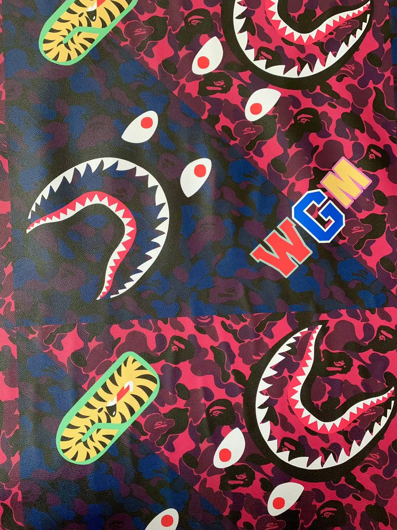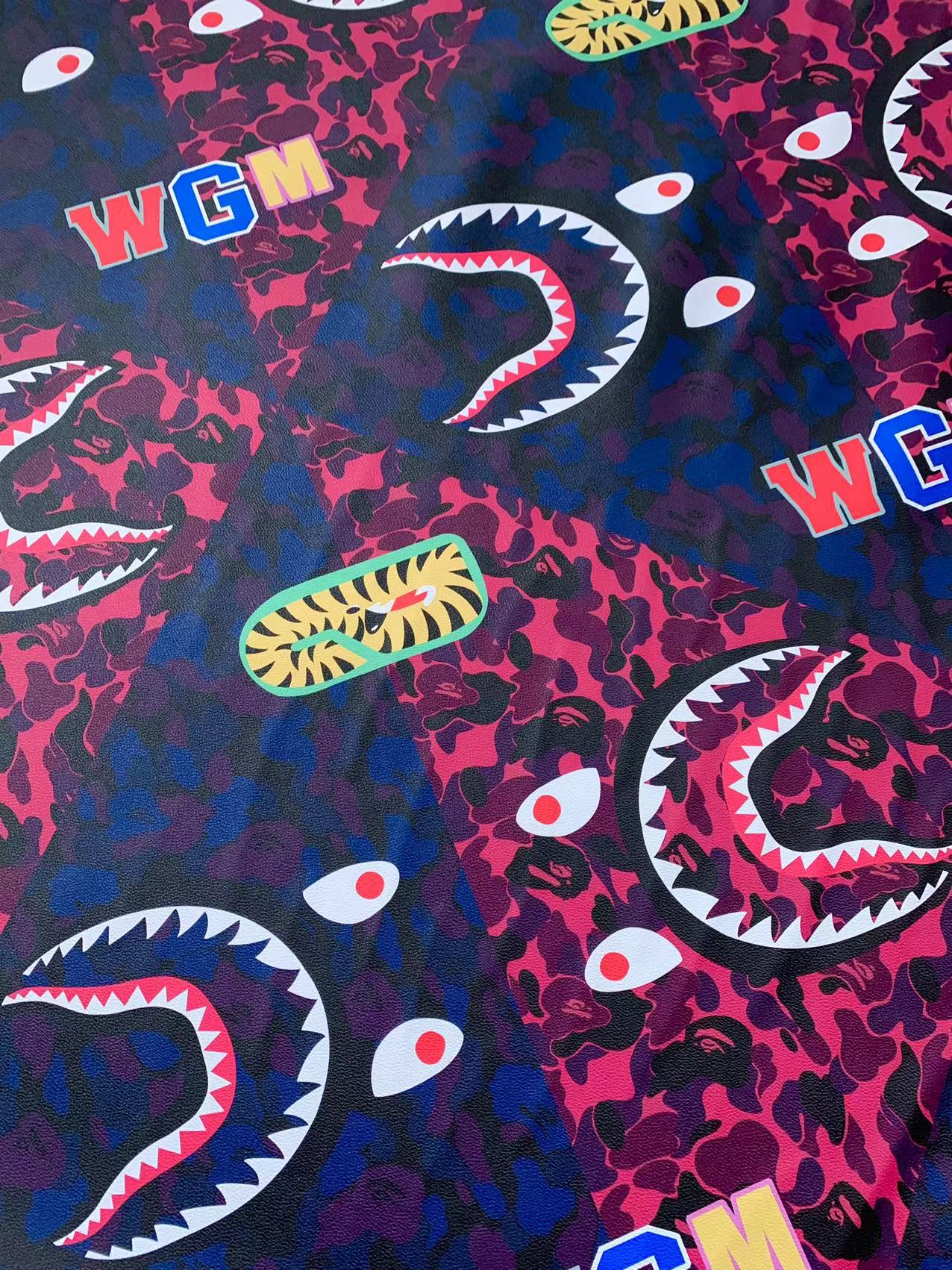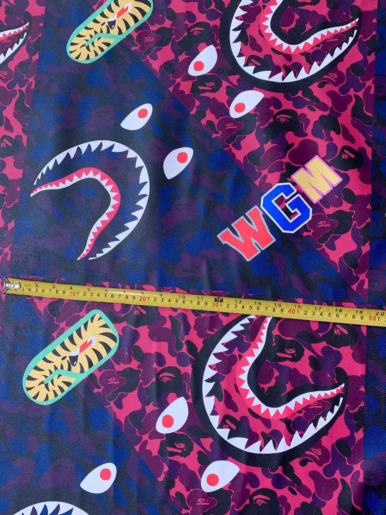 Fashion Bape Shark Teeth Design Custom Leather Fabric For Bags Leather Shoes Custom Leather By Yard (Dark Blue with Dark Pink)