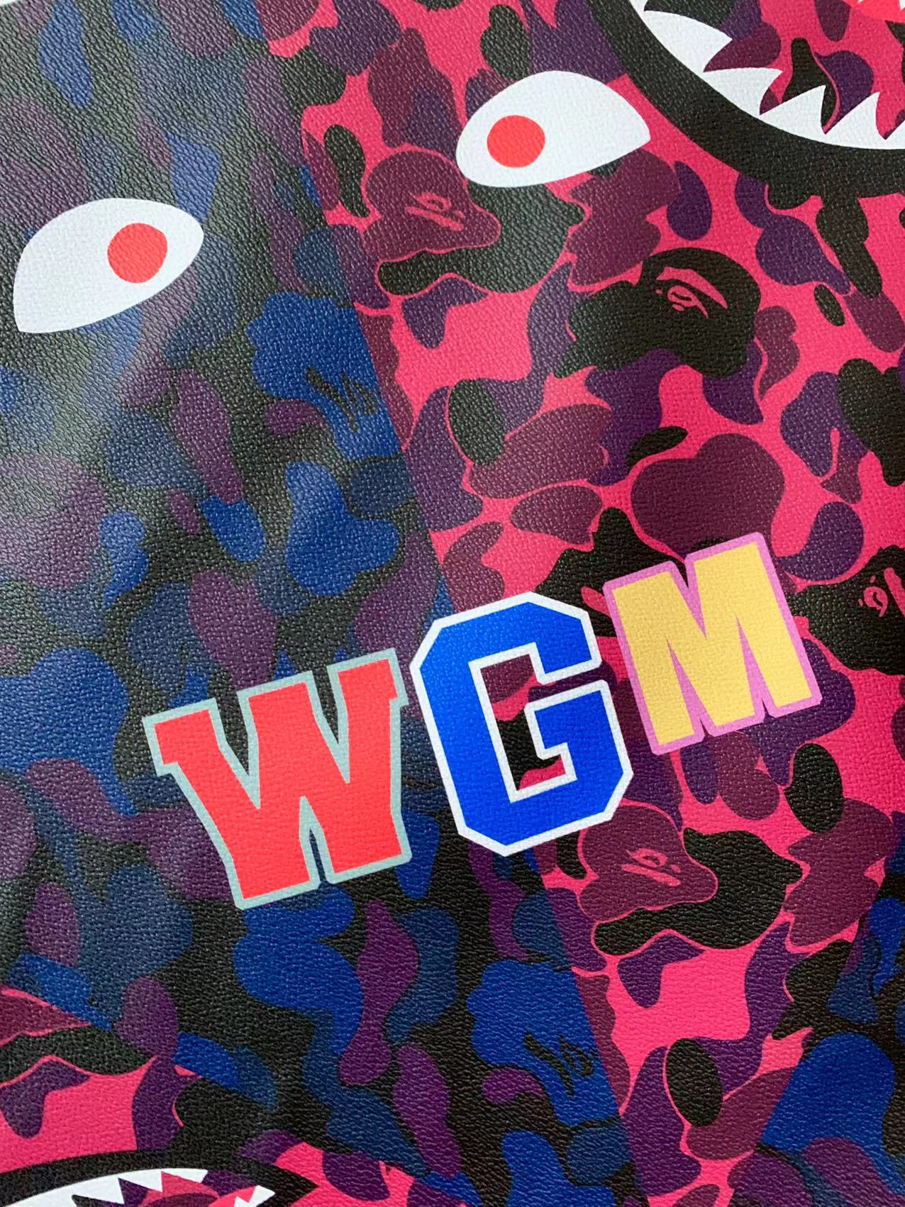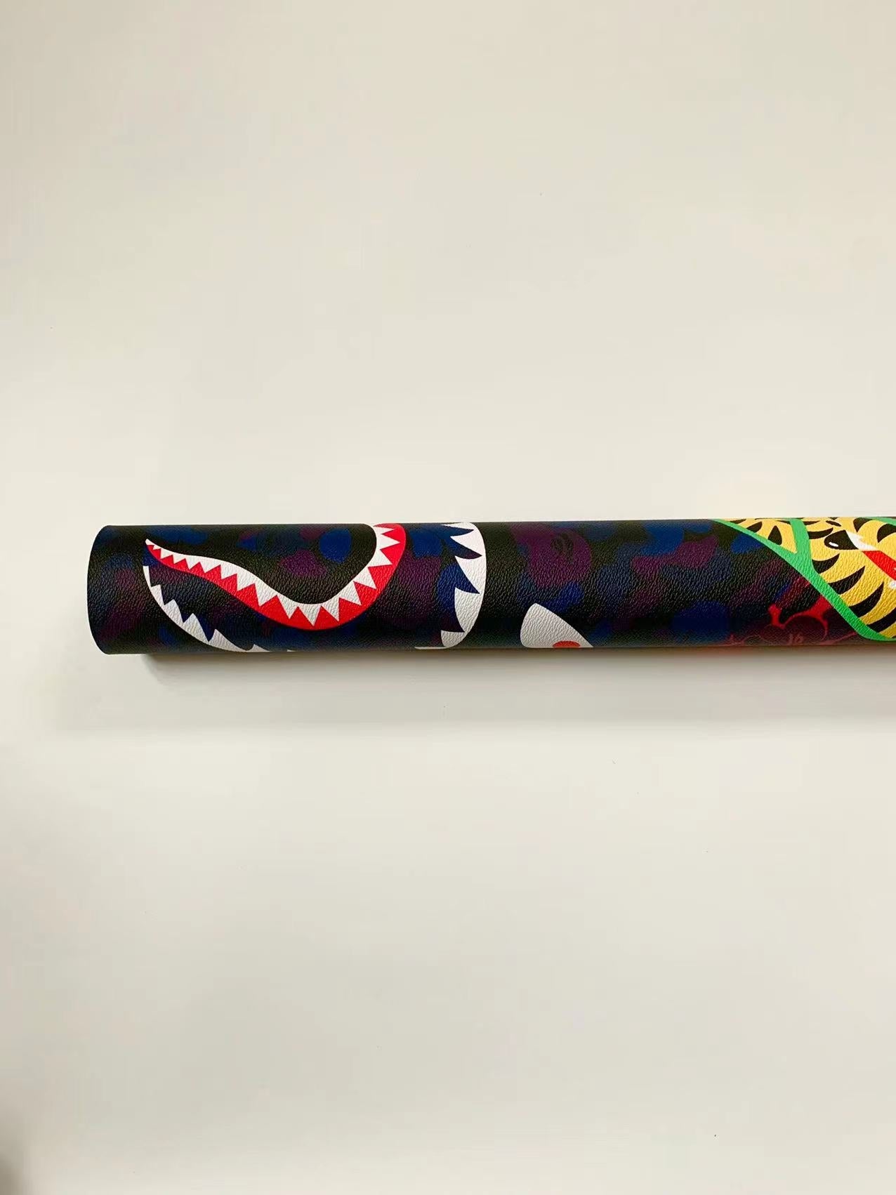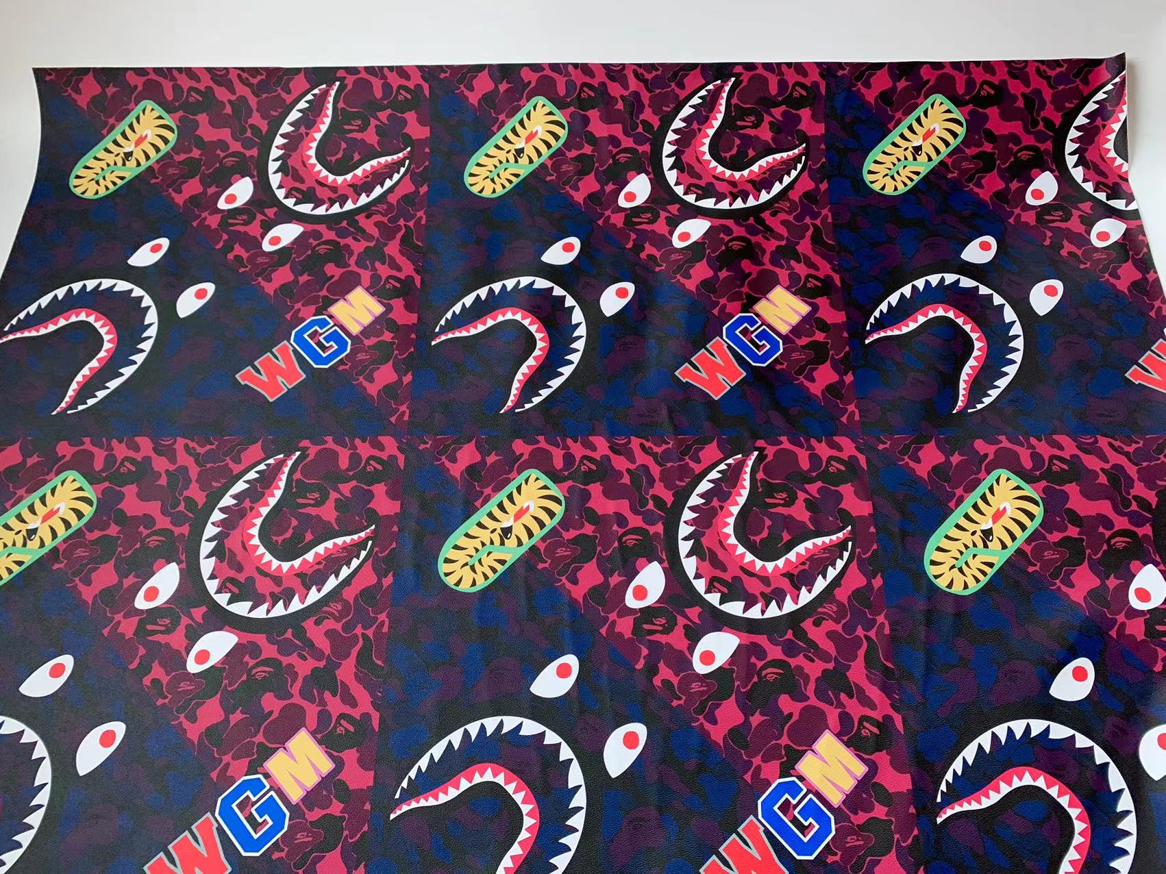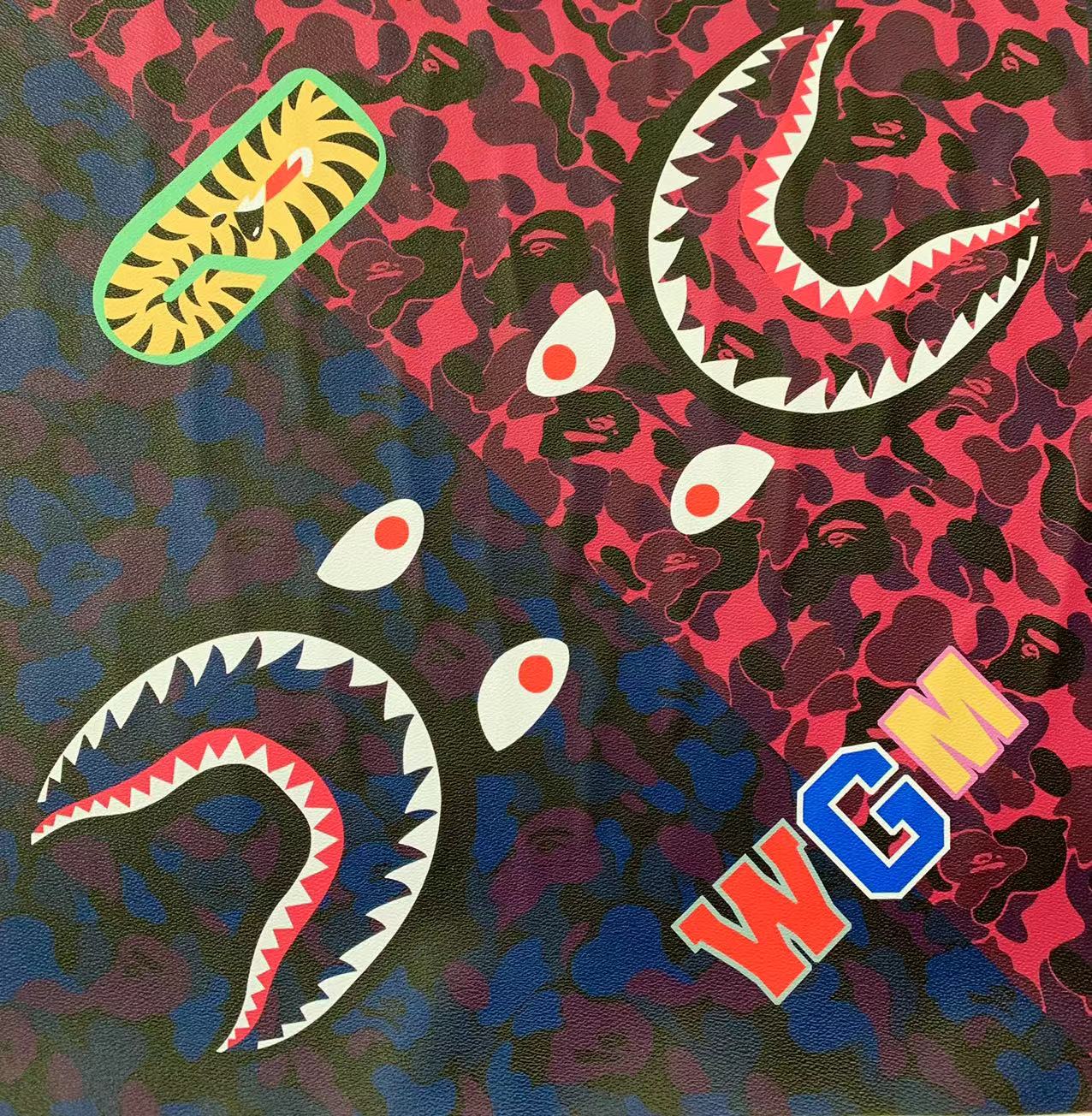 Fashion Bape Shark Teeth Design Custom Leather Fabric For Bags Leather Shoes Custom Leather By Yard (Dark Blue with Dark Pink)