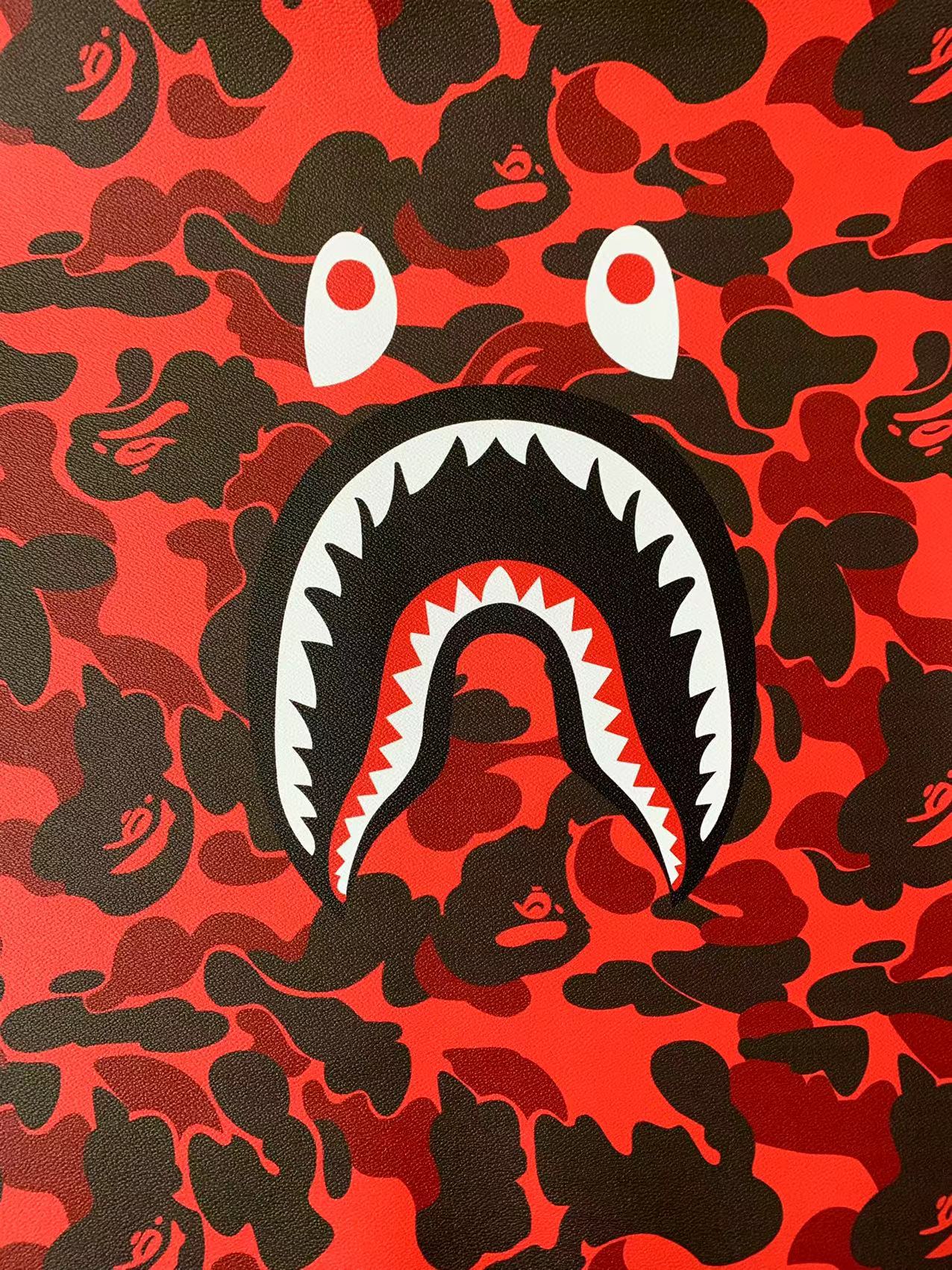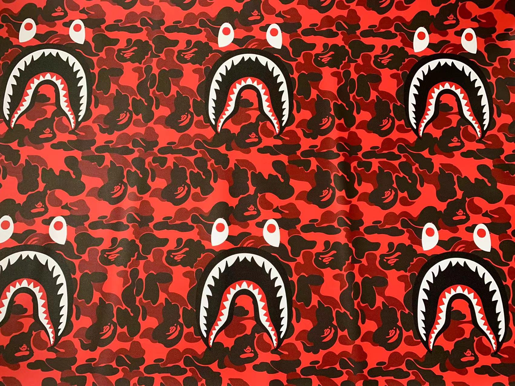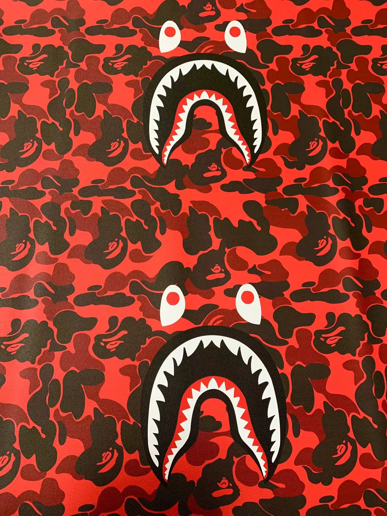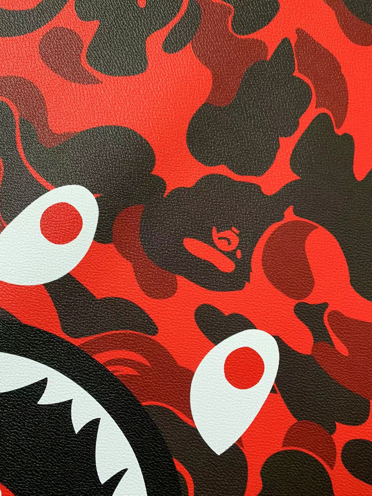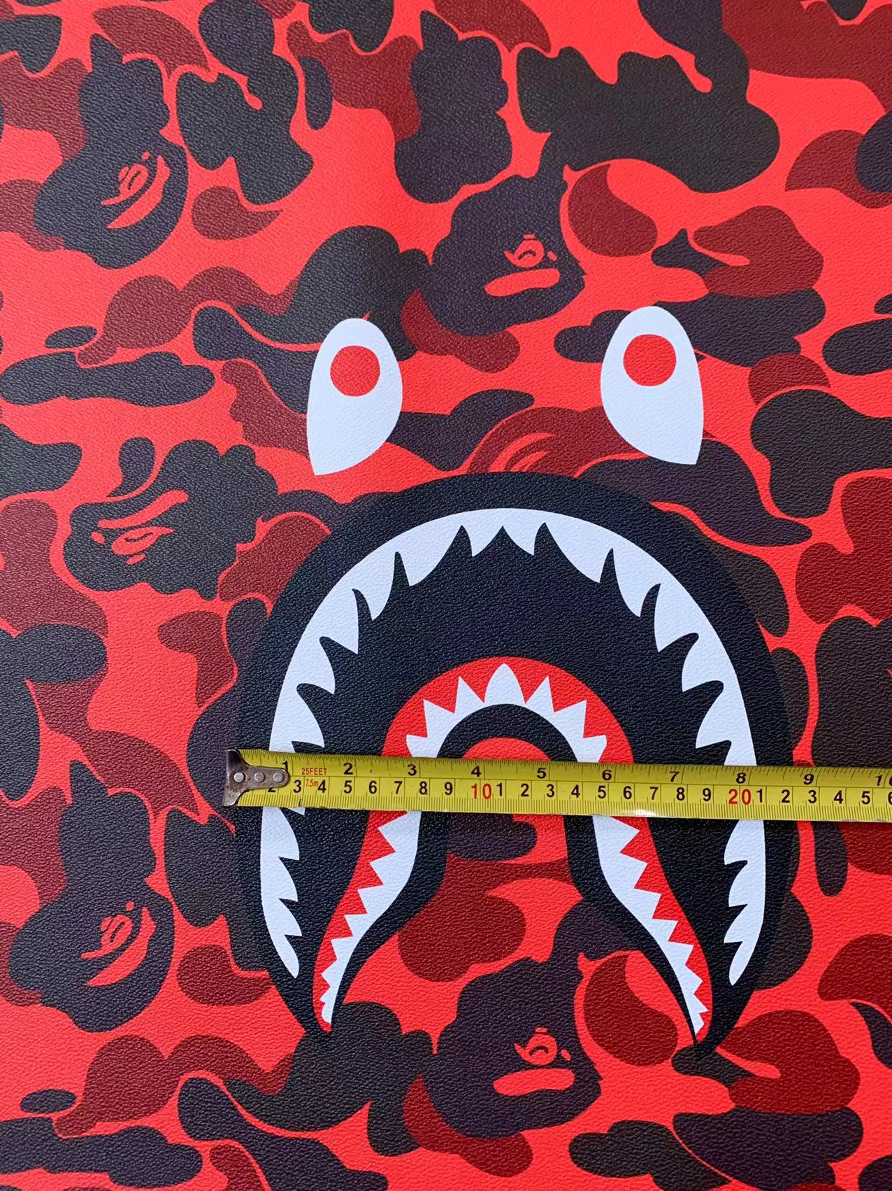 Fashion Bape Shark Teeth Design Custom Leather Fabric For Bags Leather Shoes Custom Leather By Yard (Red)
