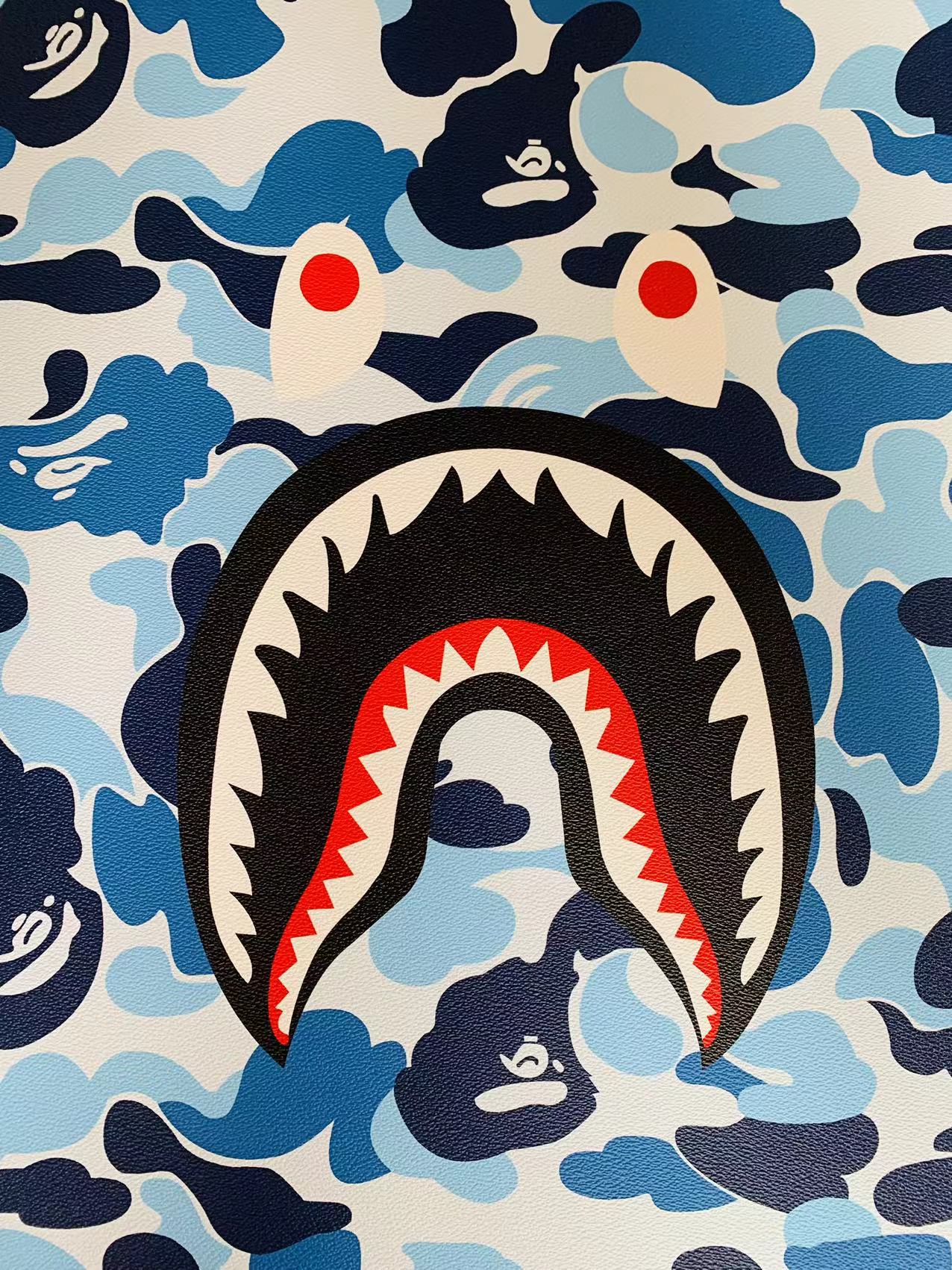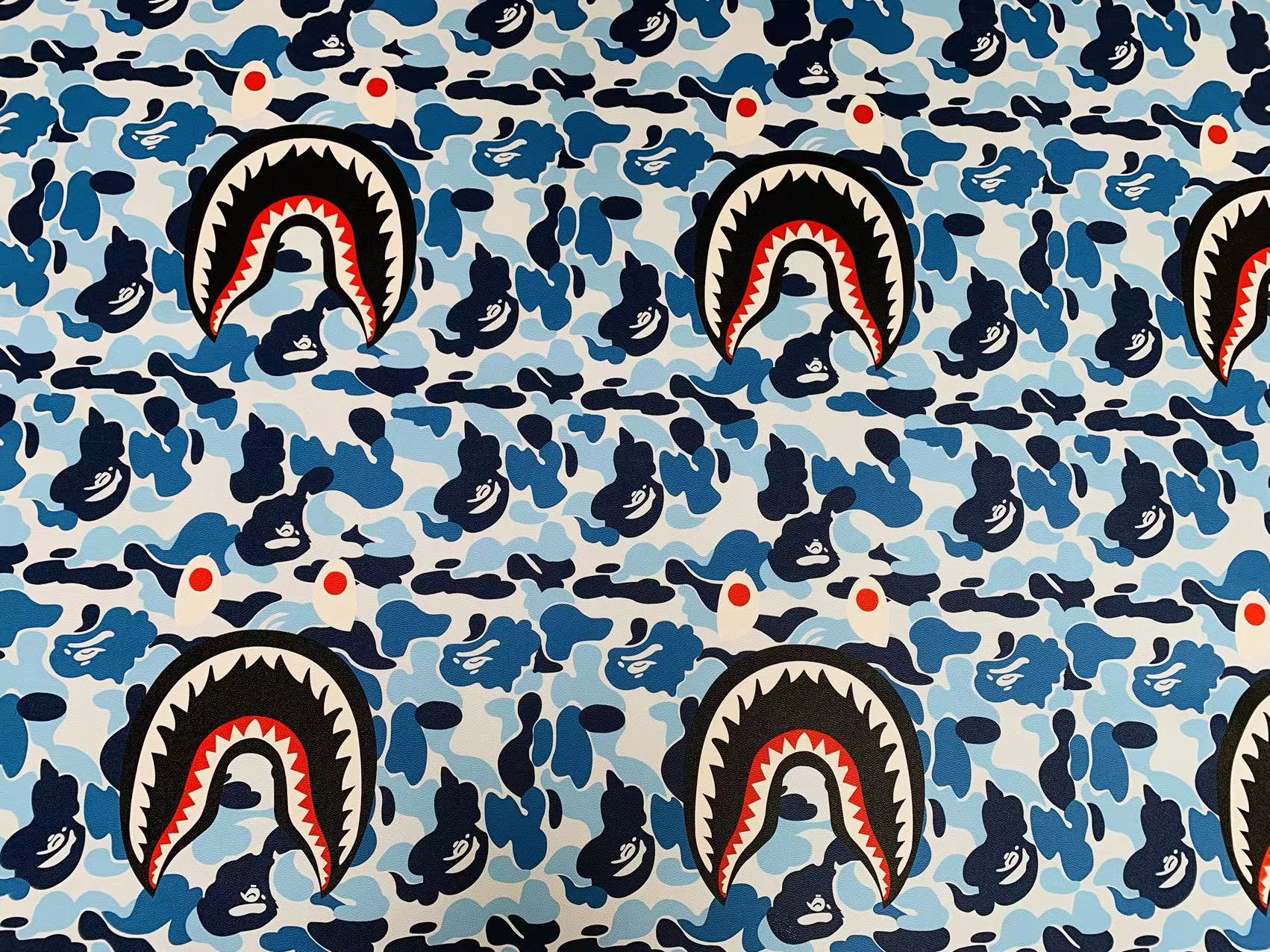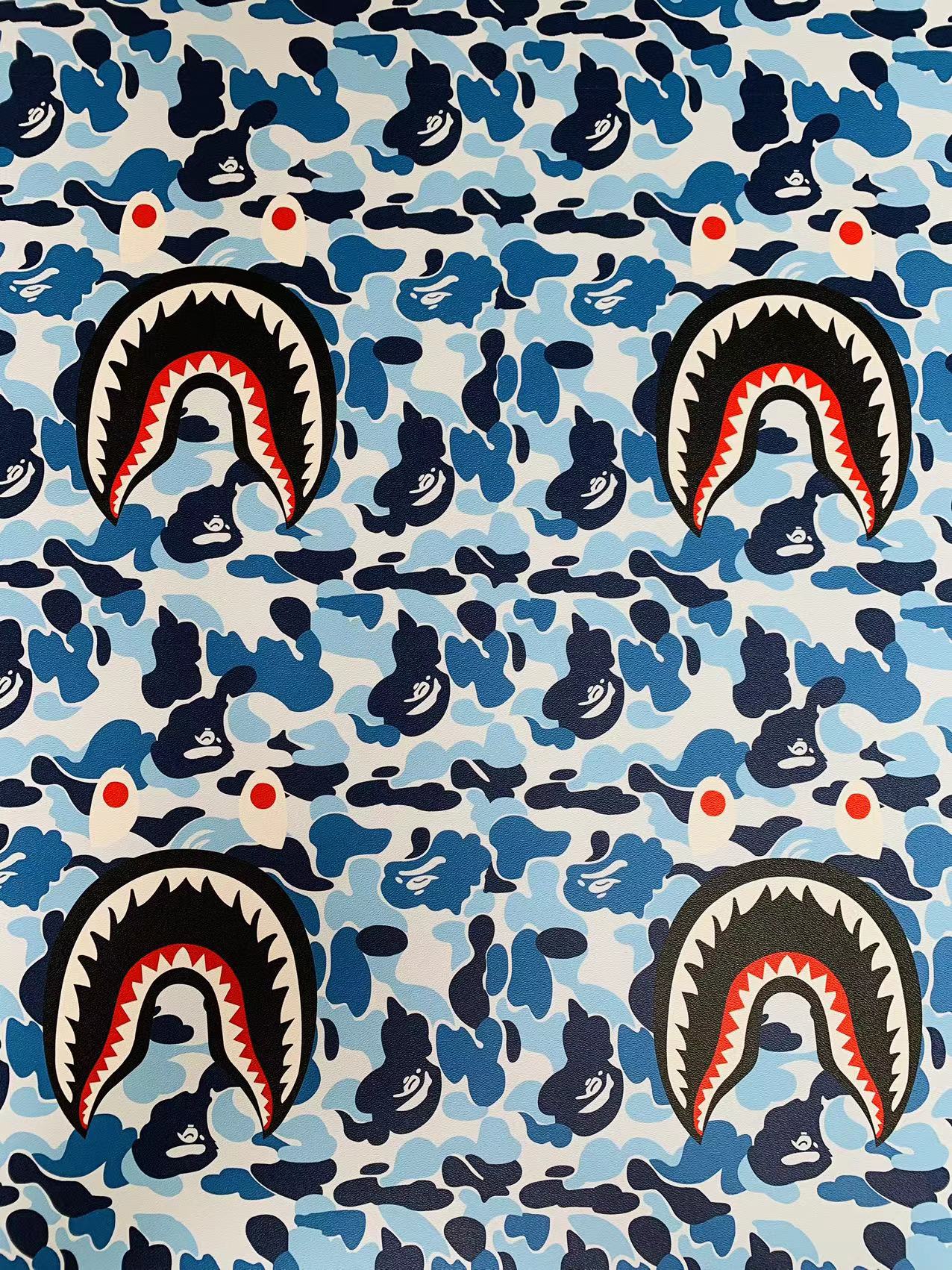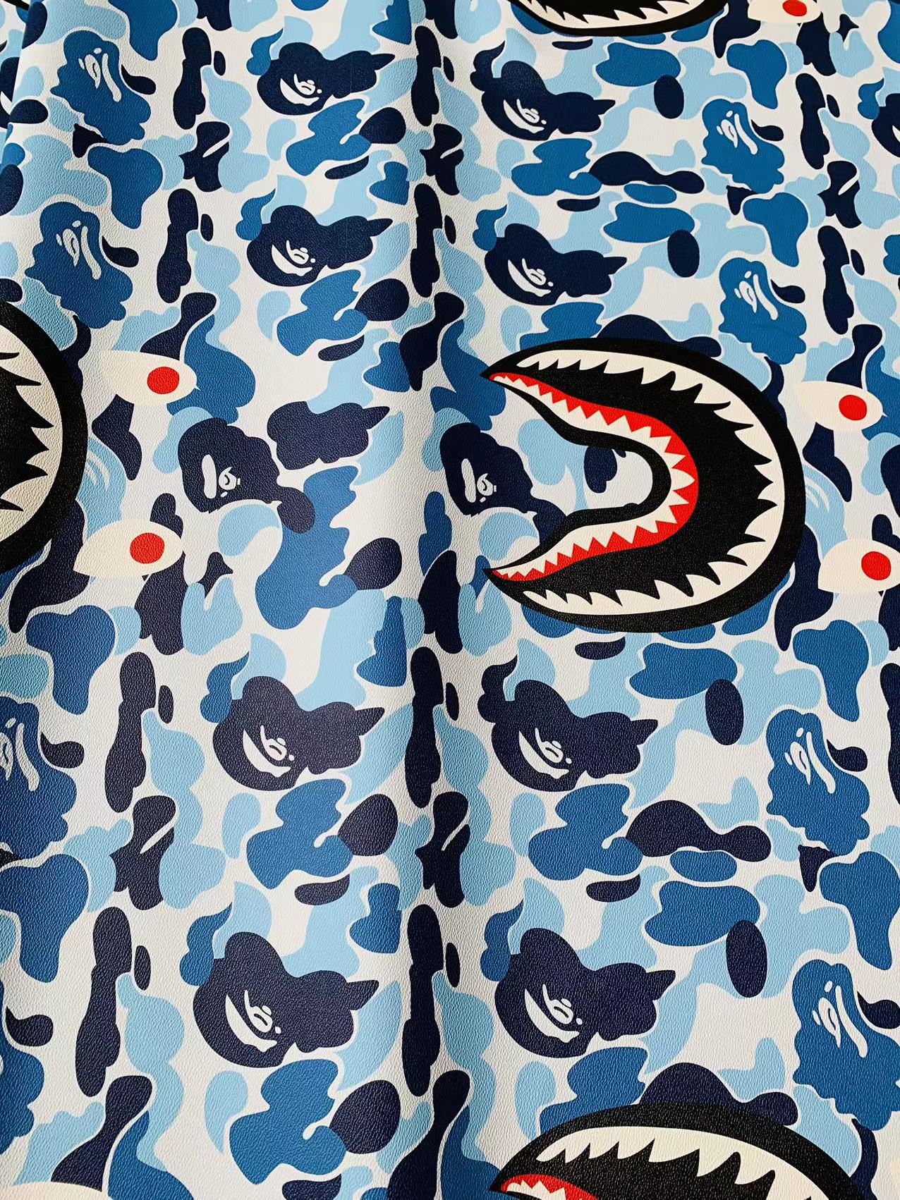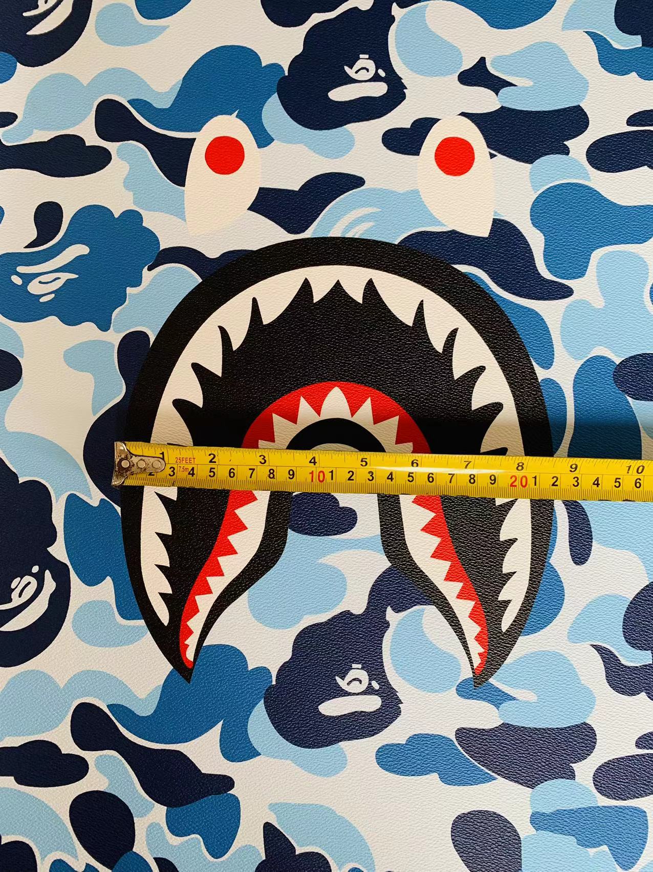 Fashion Bape Shark Teeth Design Custom Leather Fabric For Bags Leather Shoes Custom Leather By Yard (Sky Blue)