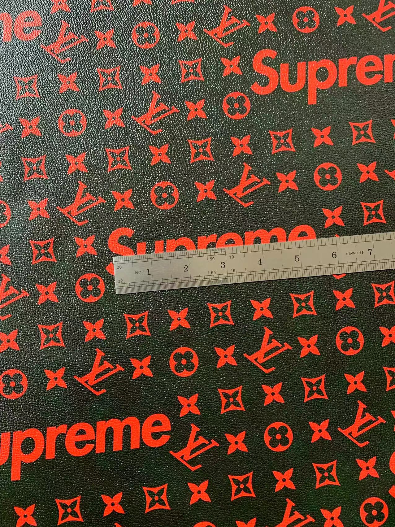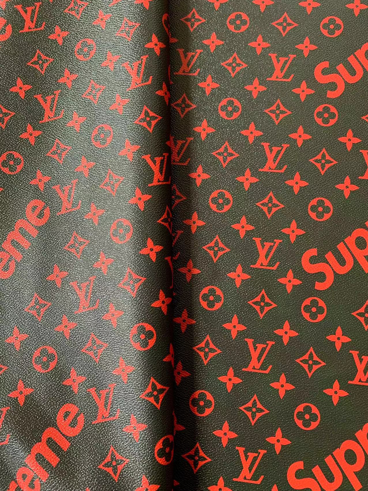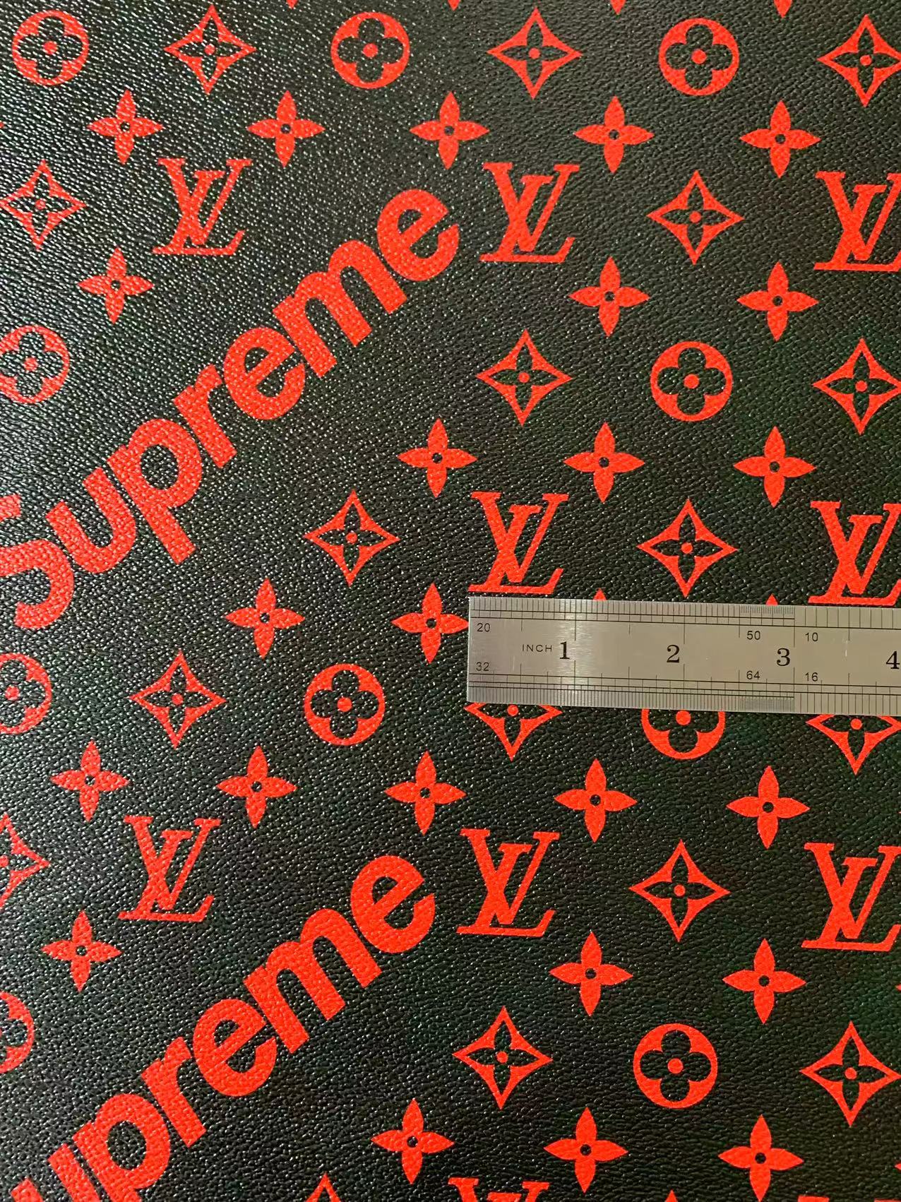 Fashion Black With Red LV Supreme Leather Case Fabric,Handmade Bag Fabric,Hand-made Shoes Fabric By Yard