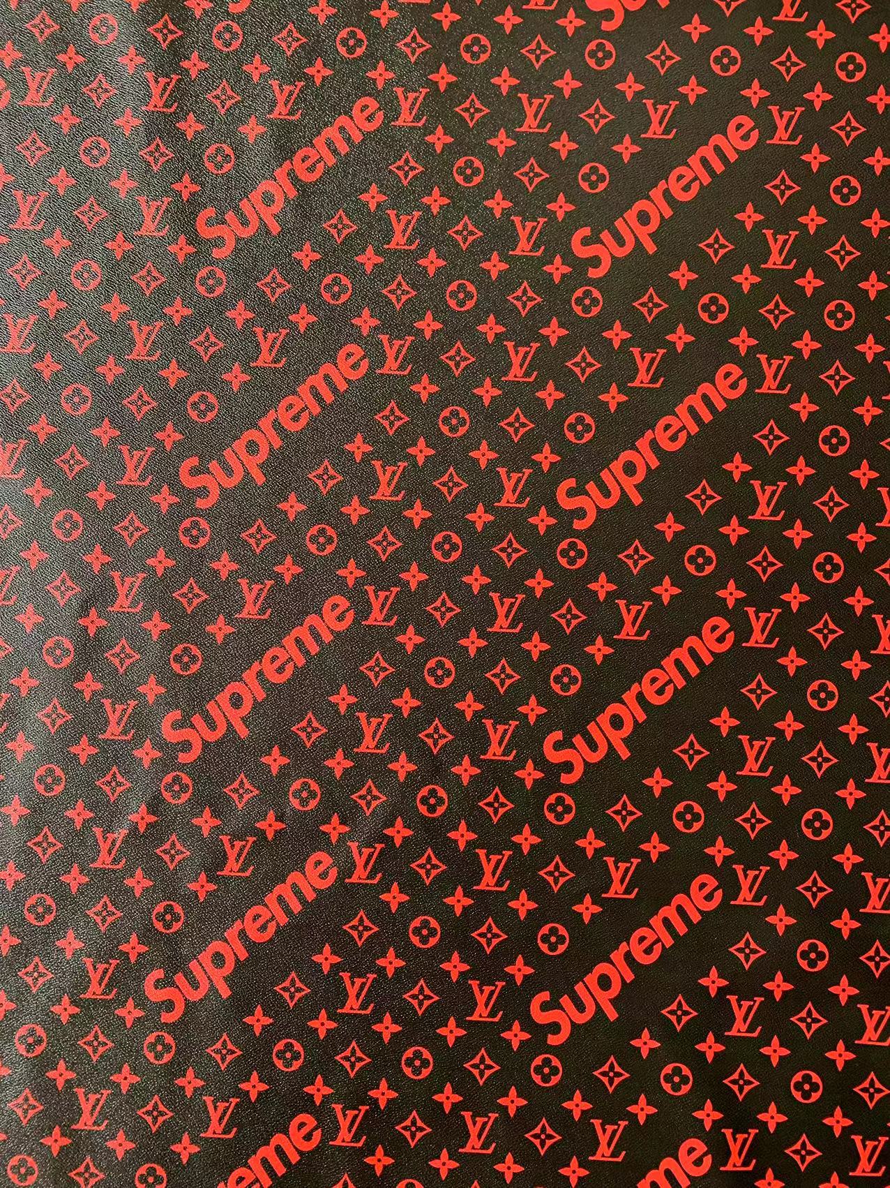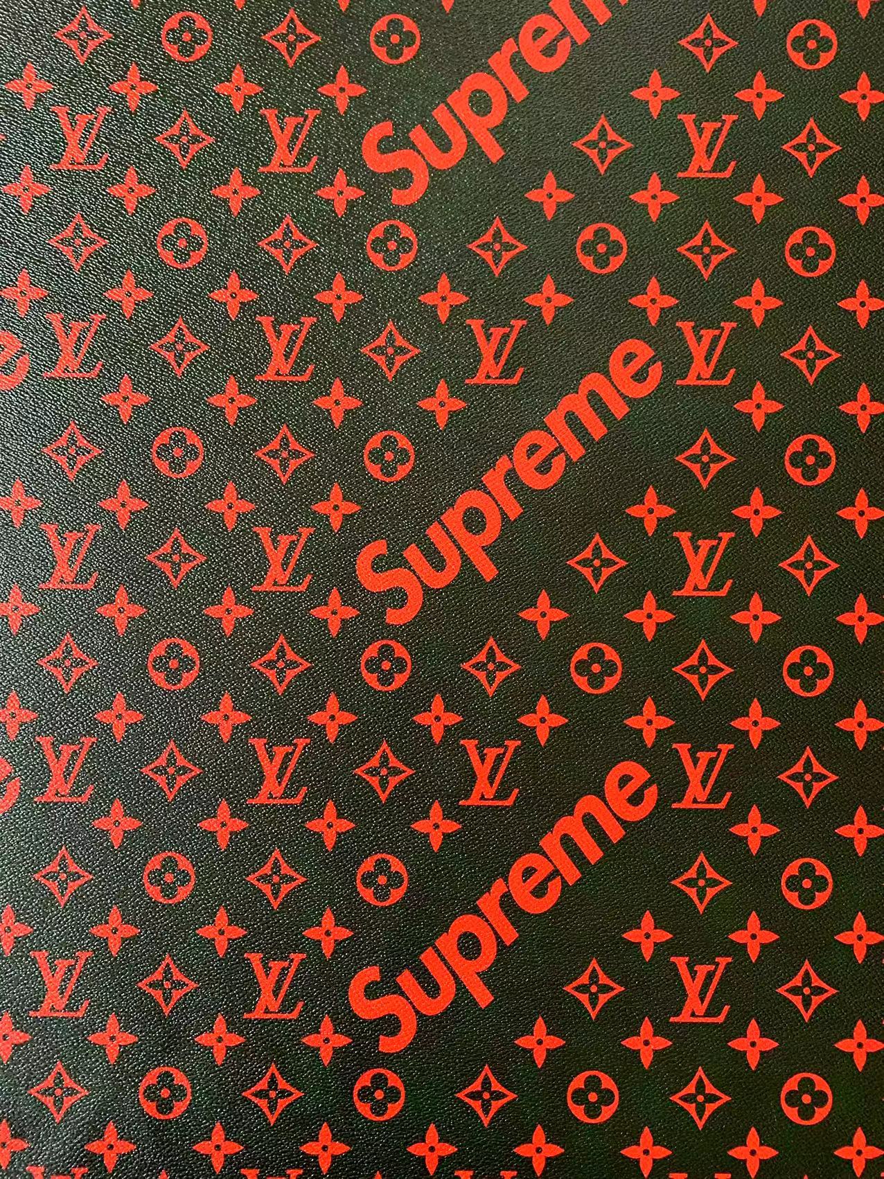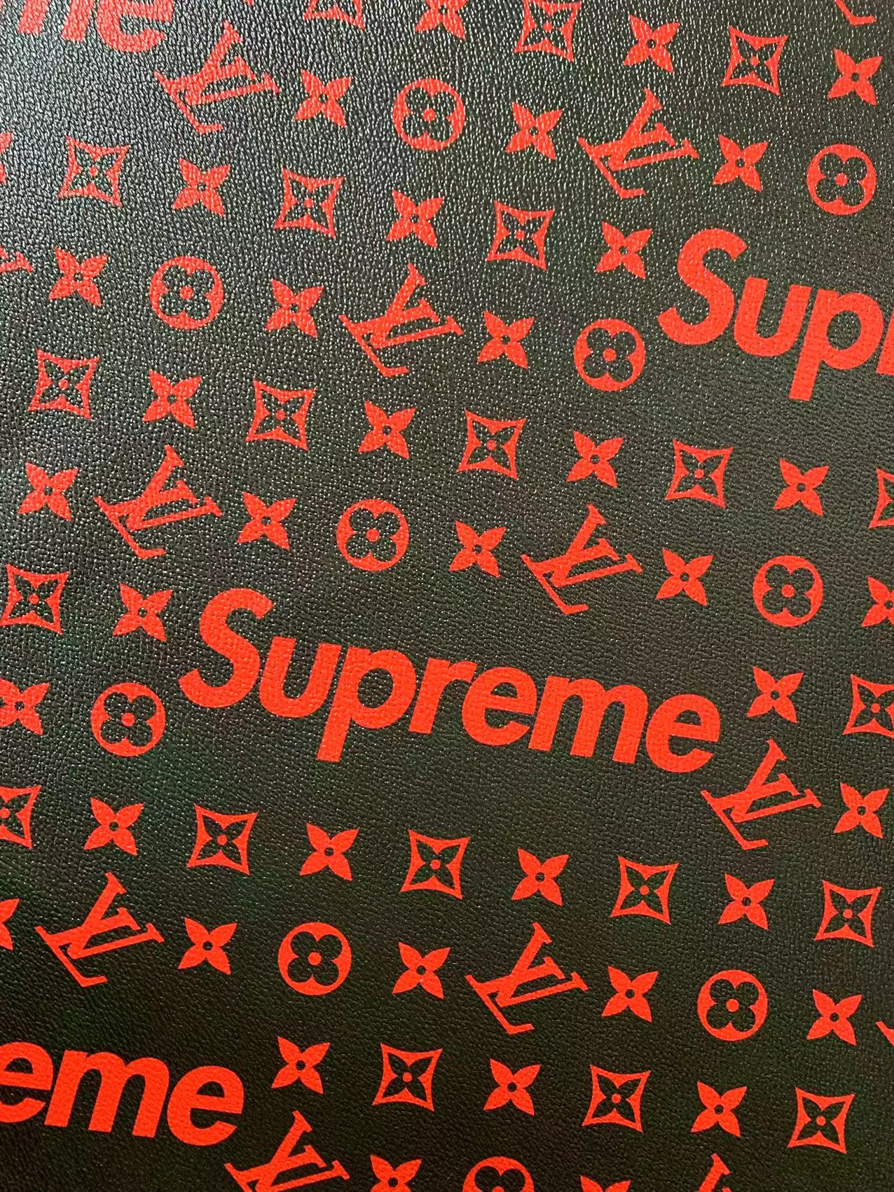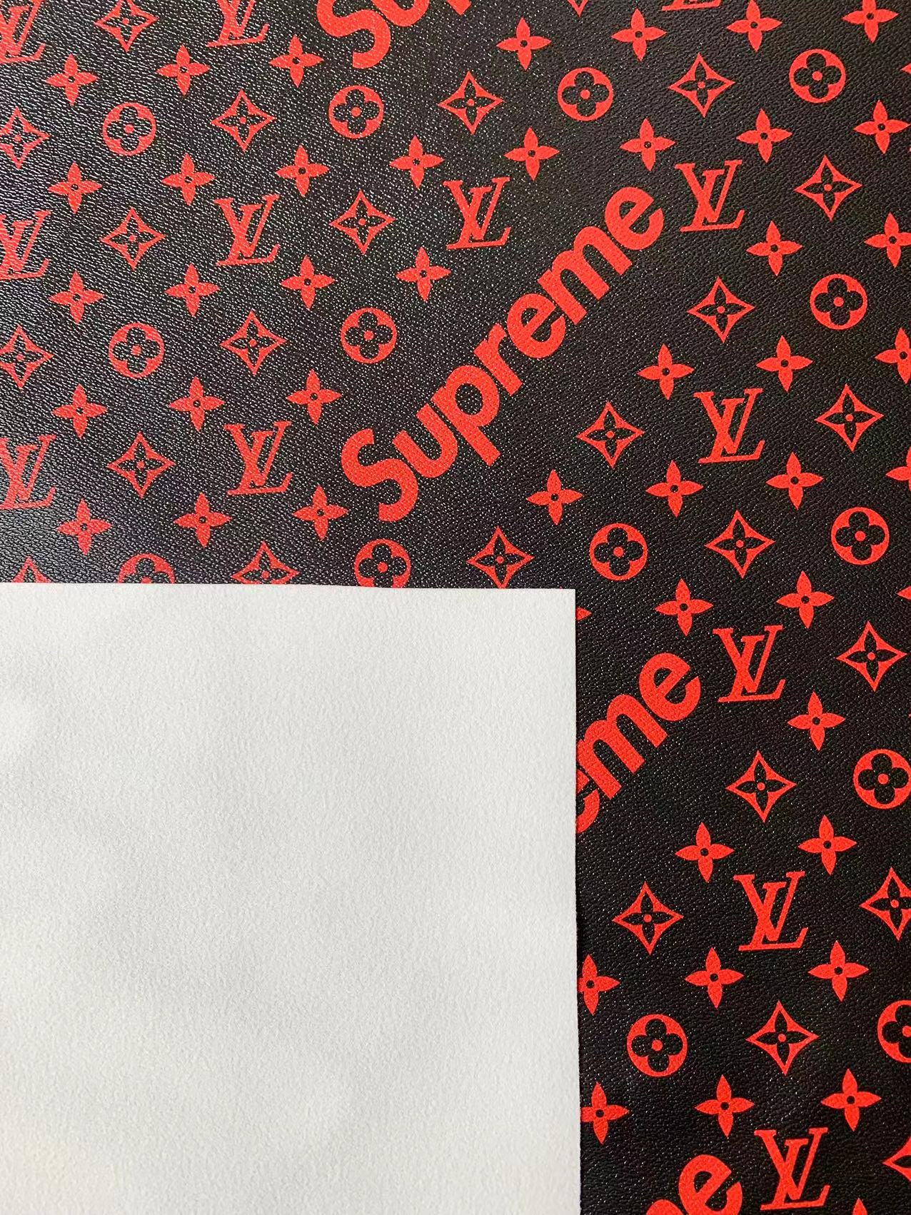 Fashion Black With Red LV Supreme Leather Case Fabric,Handmade Bag Fabric,Hand-made Shoes Fabric By Yard