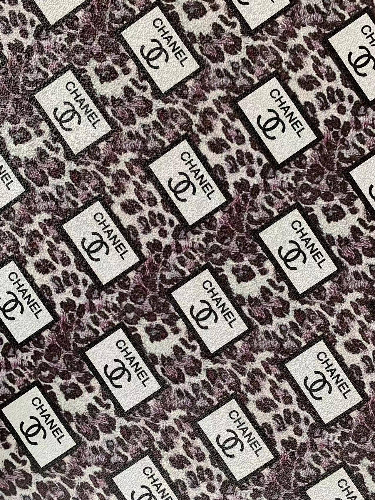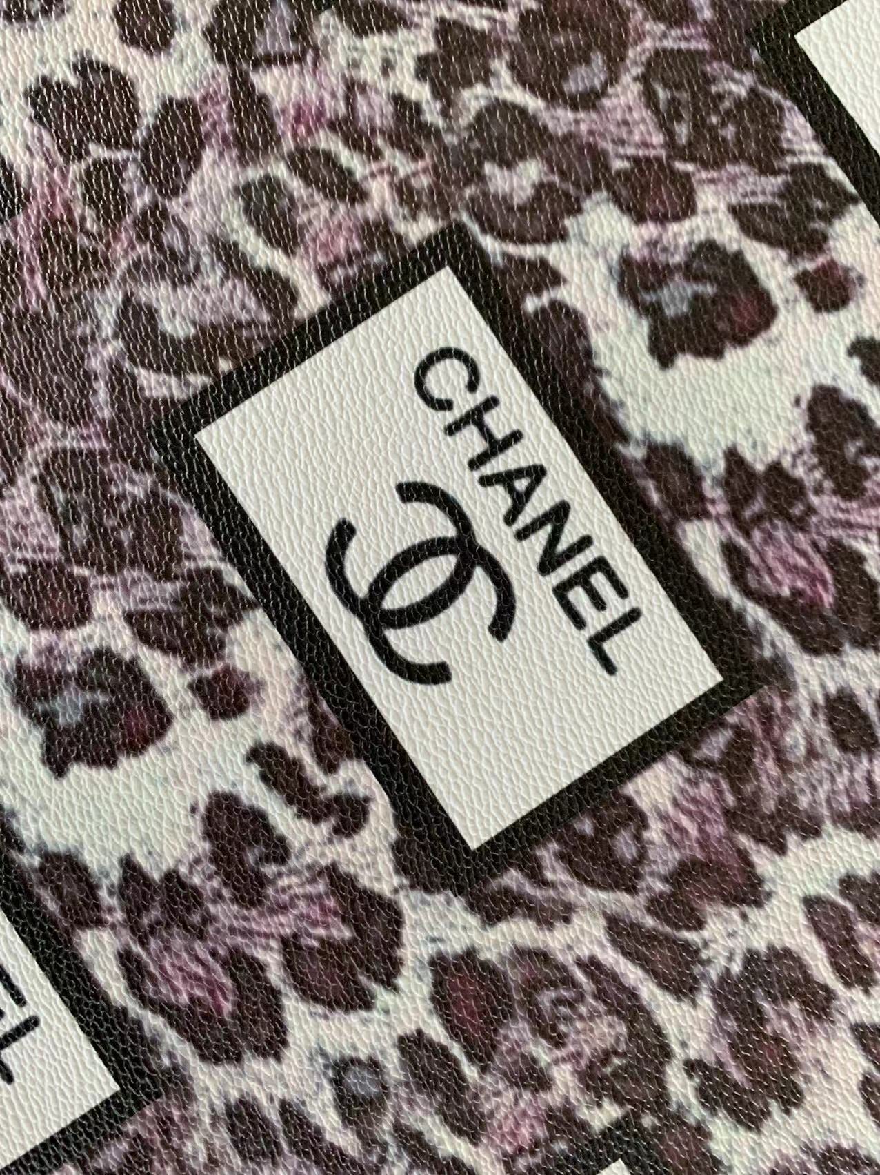 Fashion Chanel with LeoPard Vinyl Leather Fabric For Handmade Goods By Yards