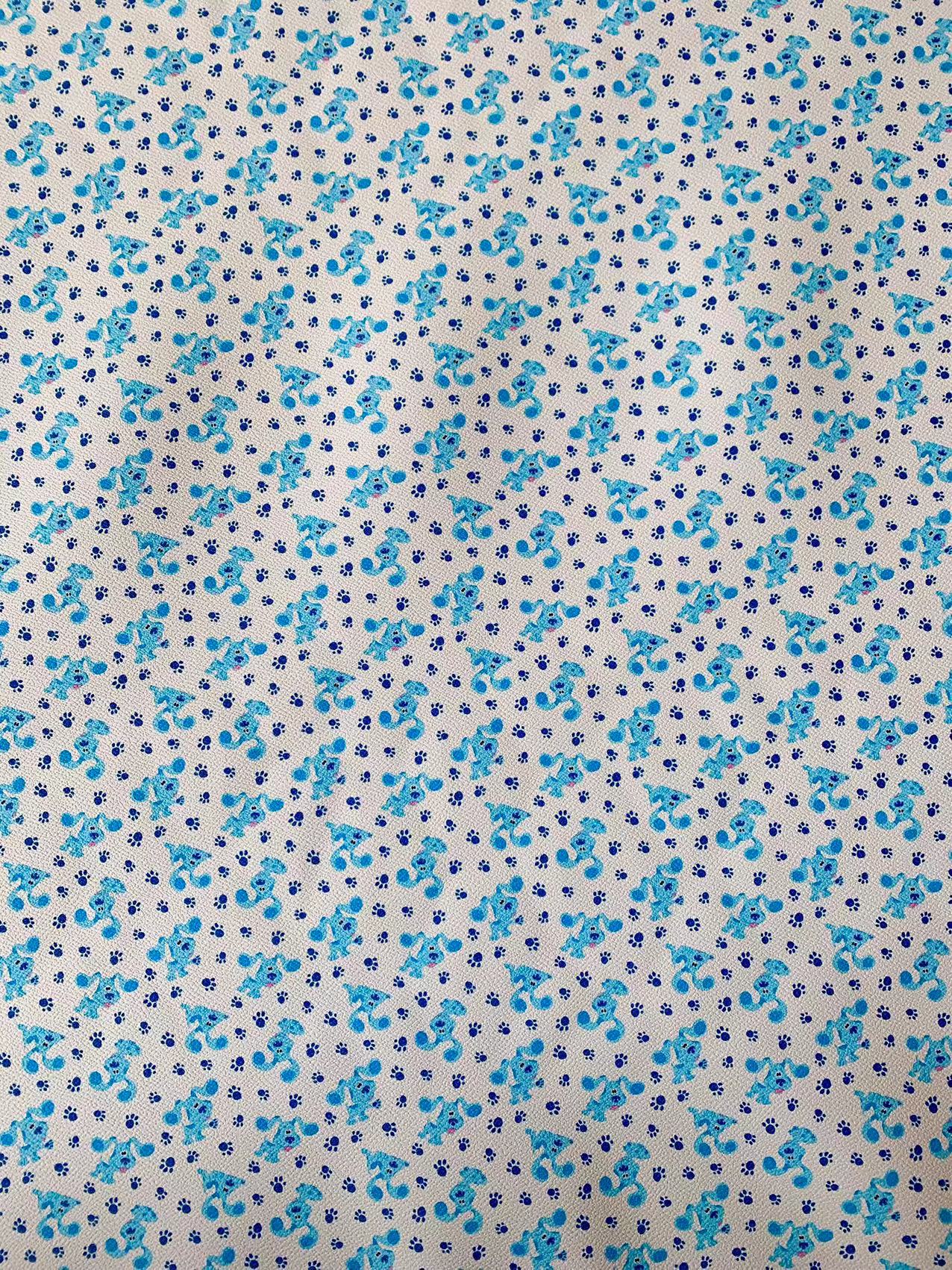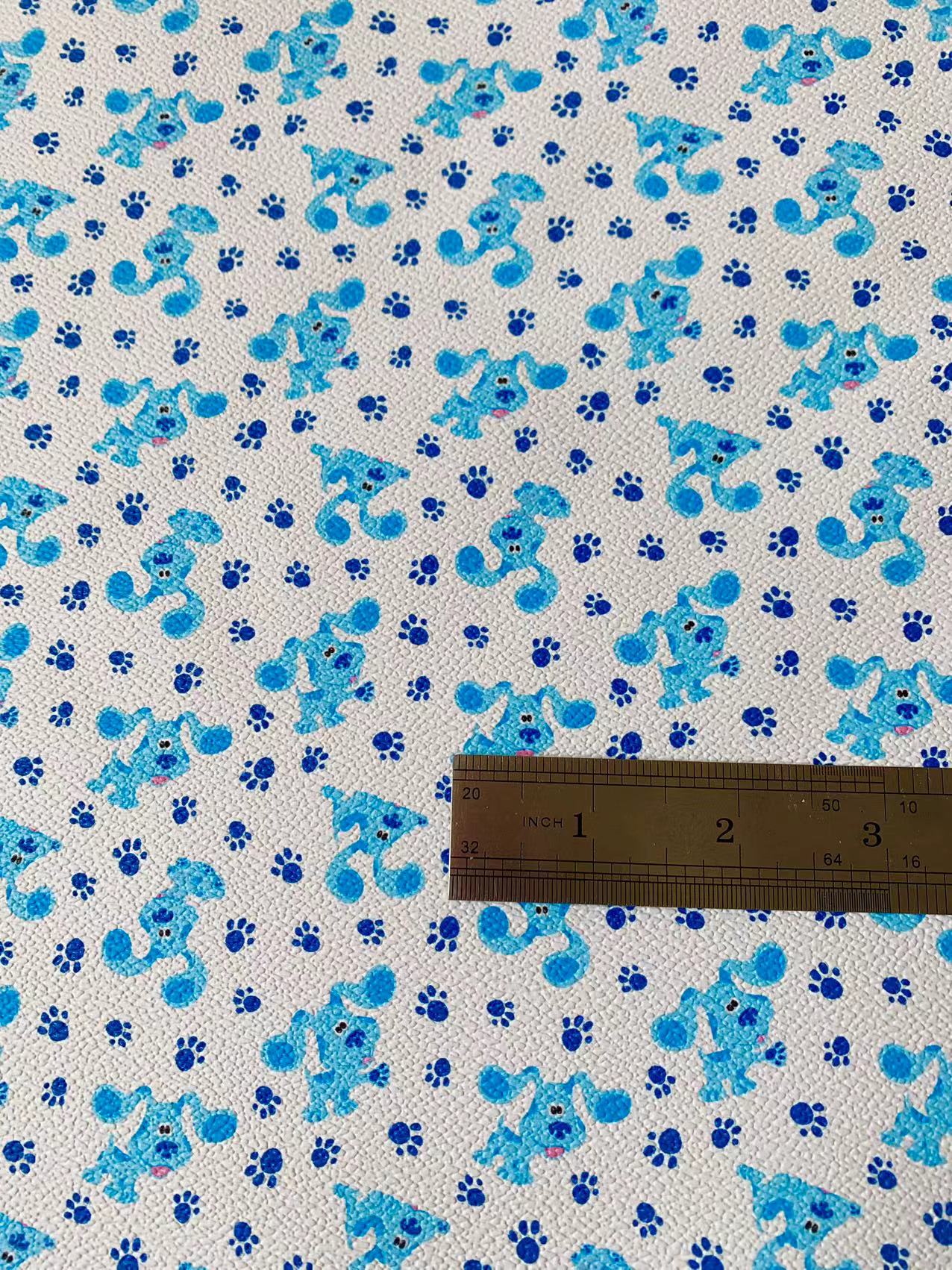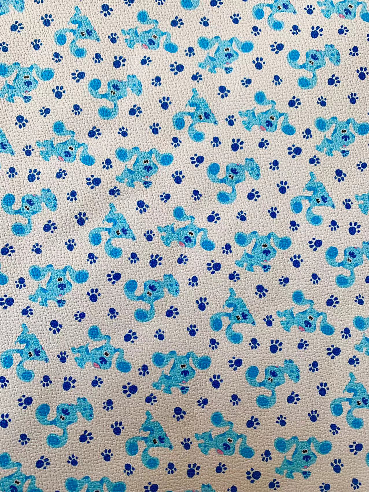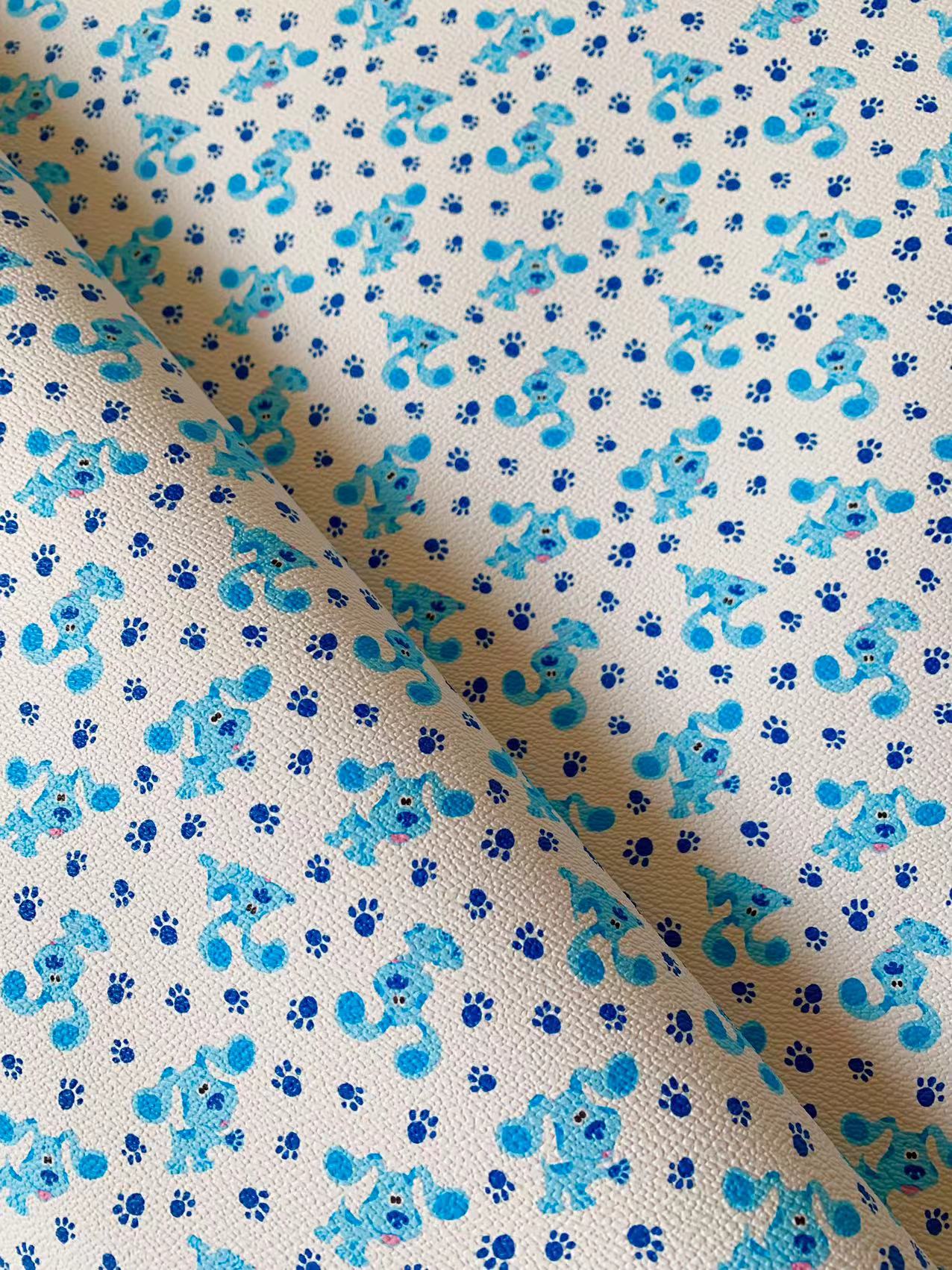 Fashion Craft Blue Dog Cartoon Leather Fabric For Handmade Handicraft Goods By Yard