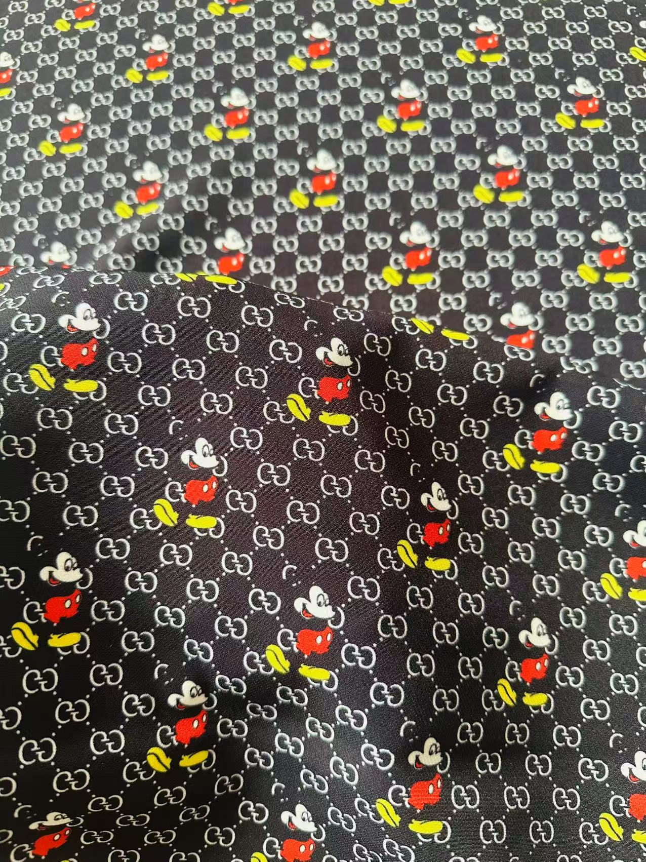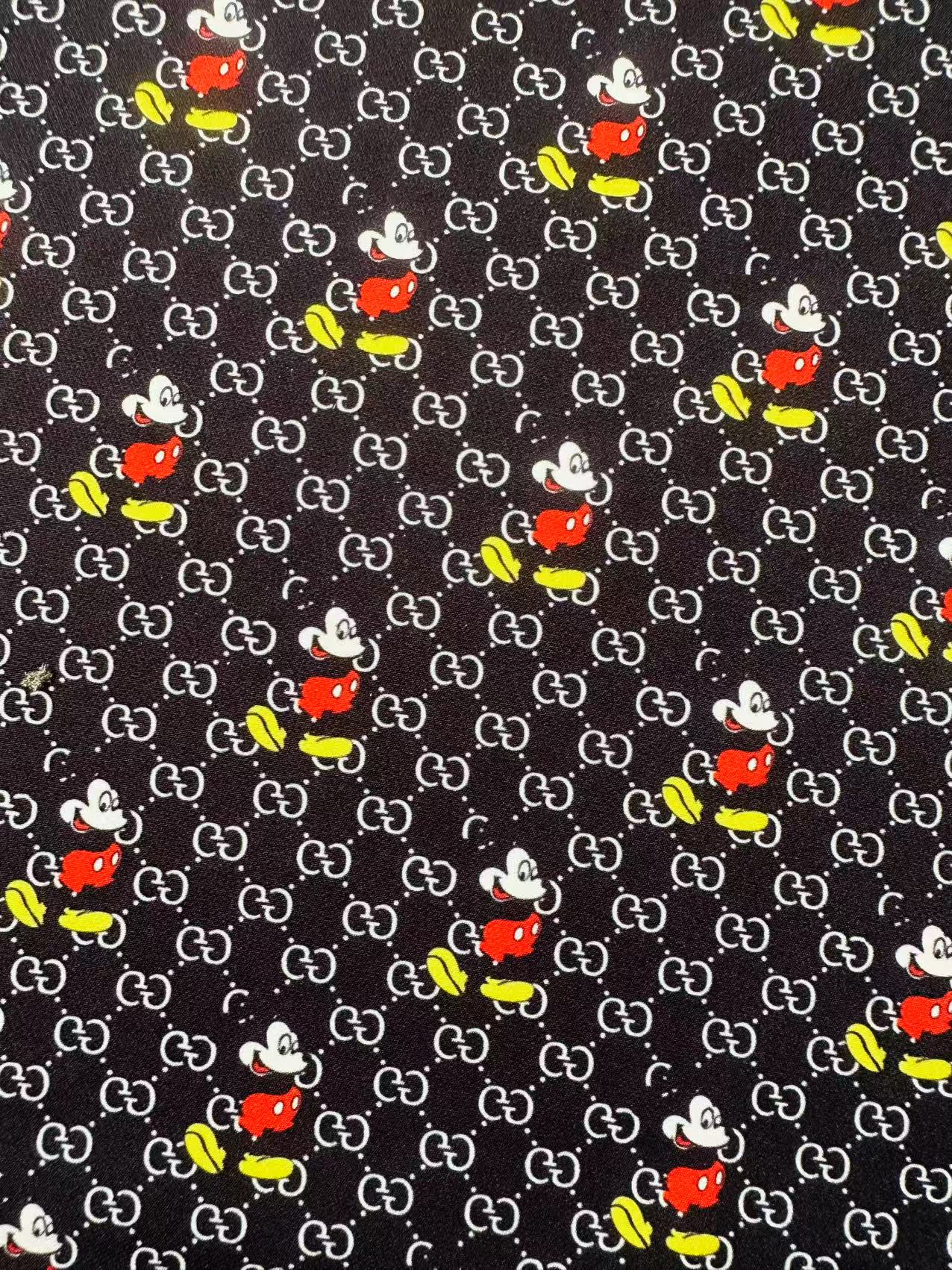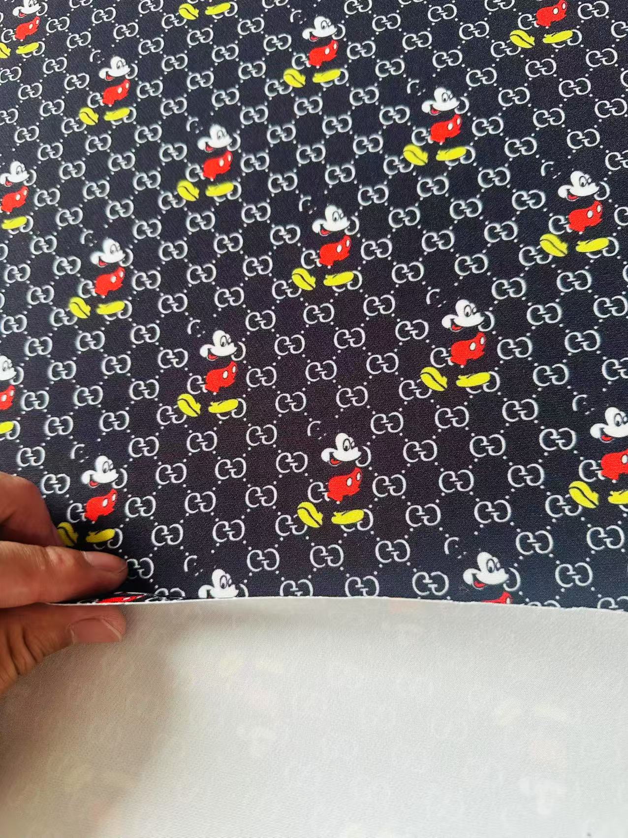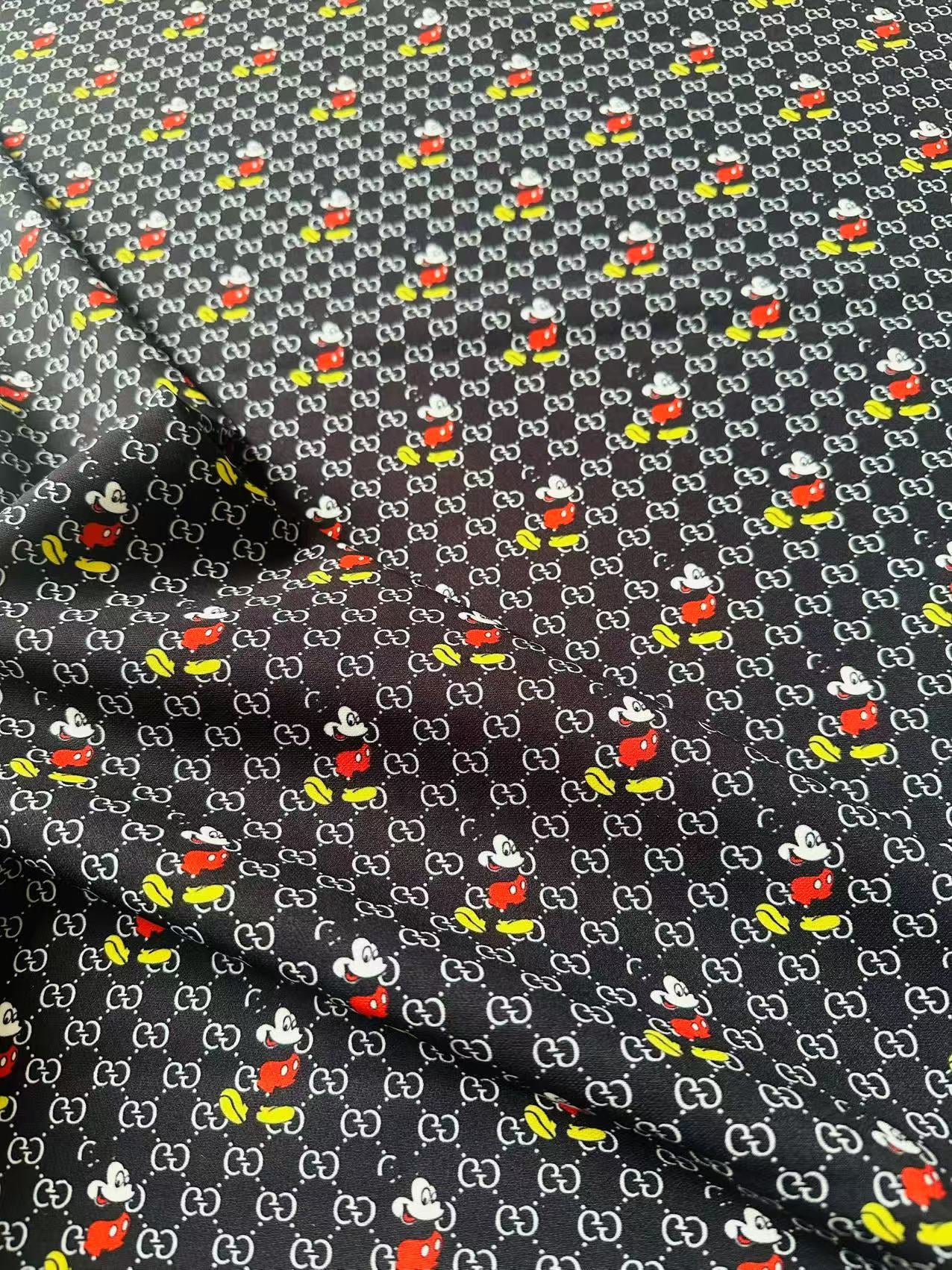 Fashion Gucci Disney Mickey Mouse Cotton With Polyester Fabric, Clothing Elastic Fabric By Yard