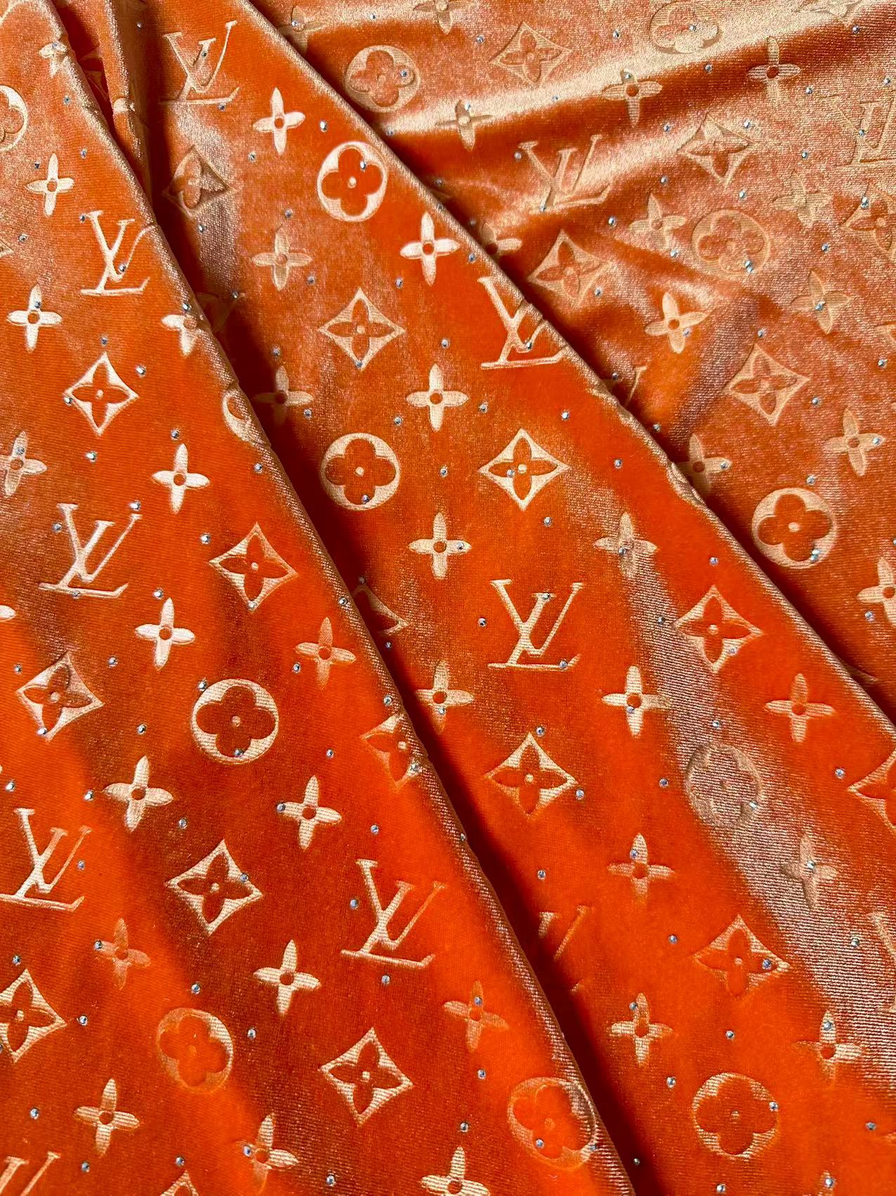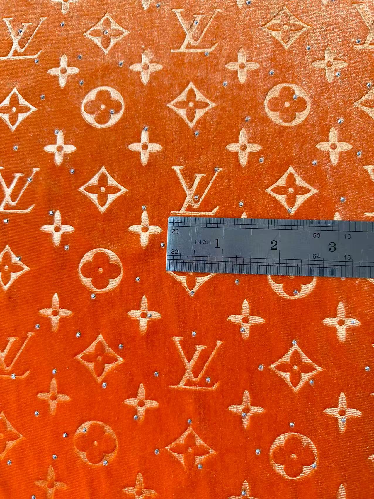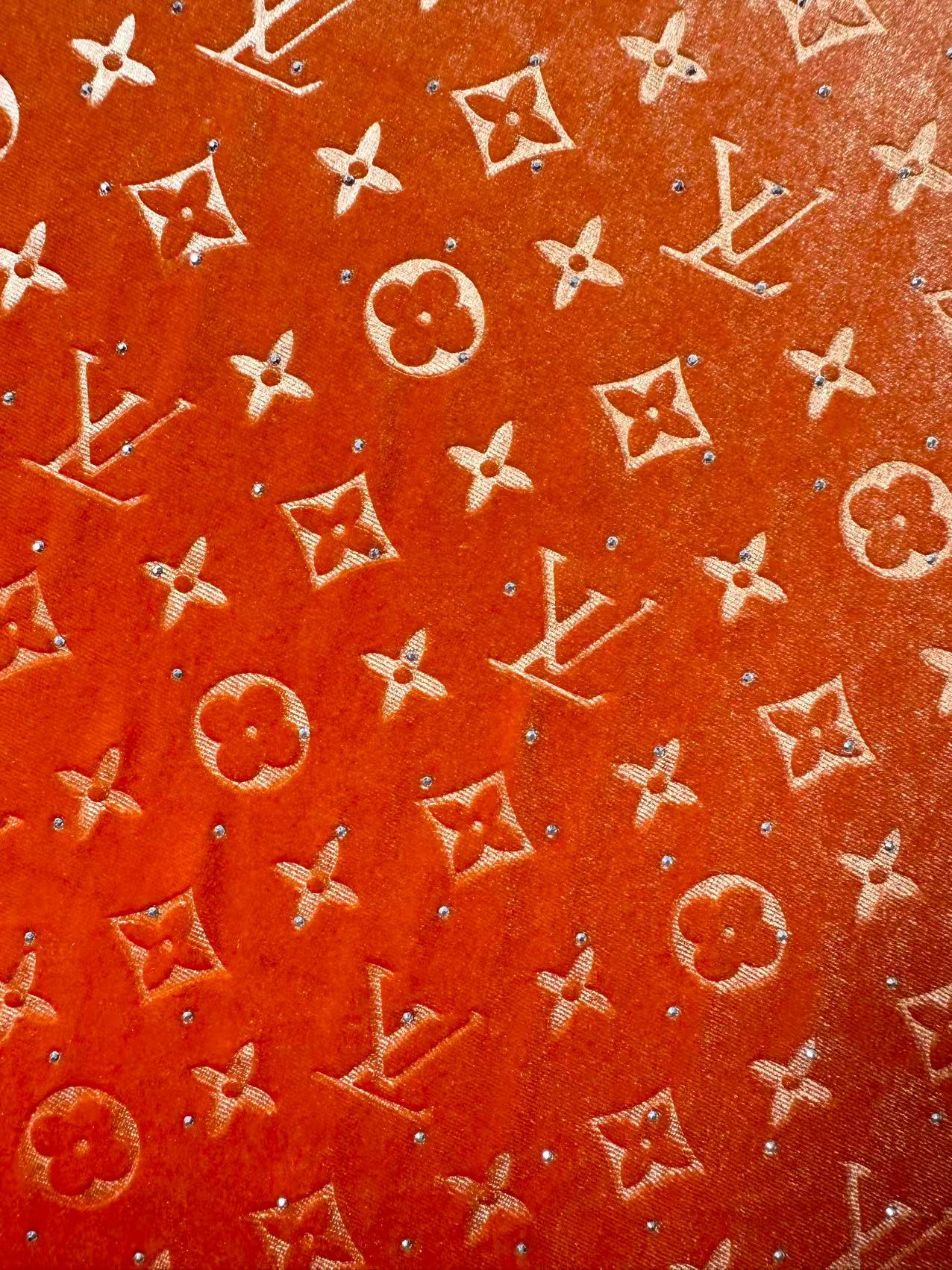 Fashion Luxury LV With Diamond Knitting Velvet Fabric For Handmade Sneaker, Upholstery ,Apparel By Yard(Orange)