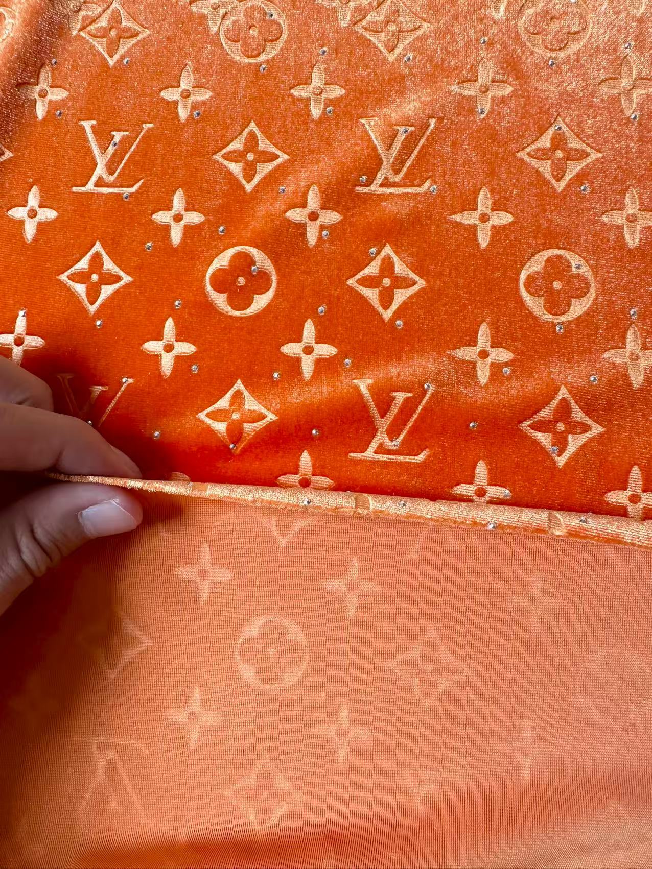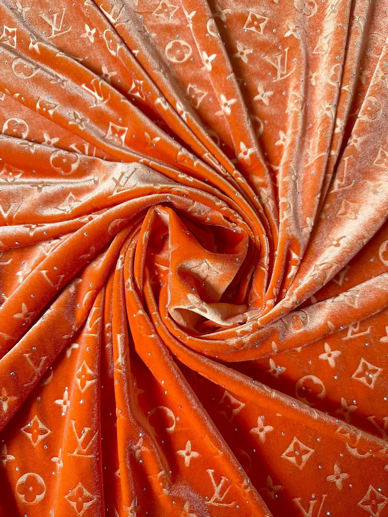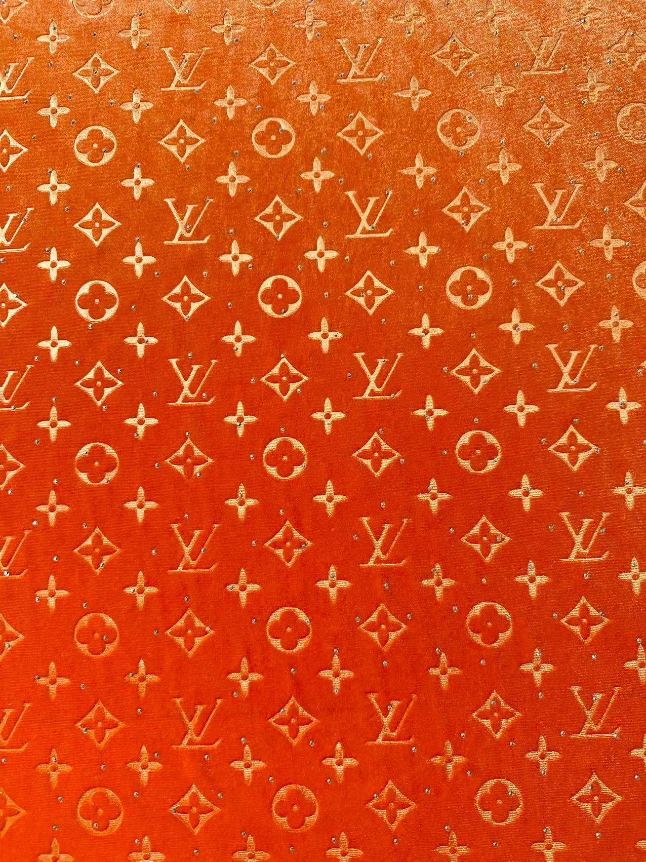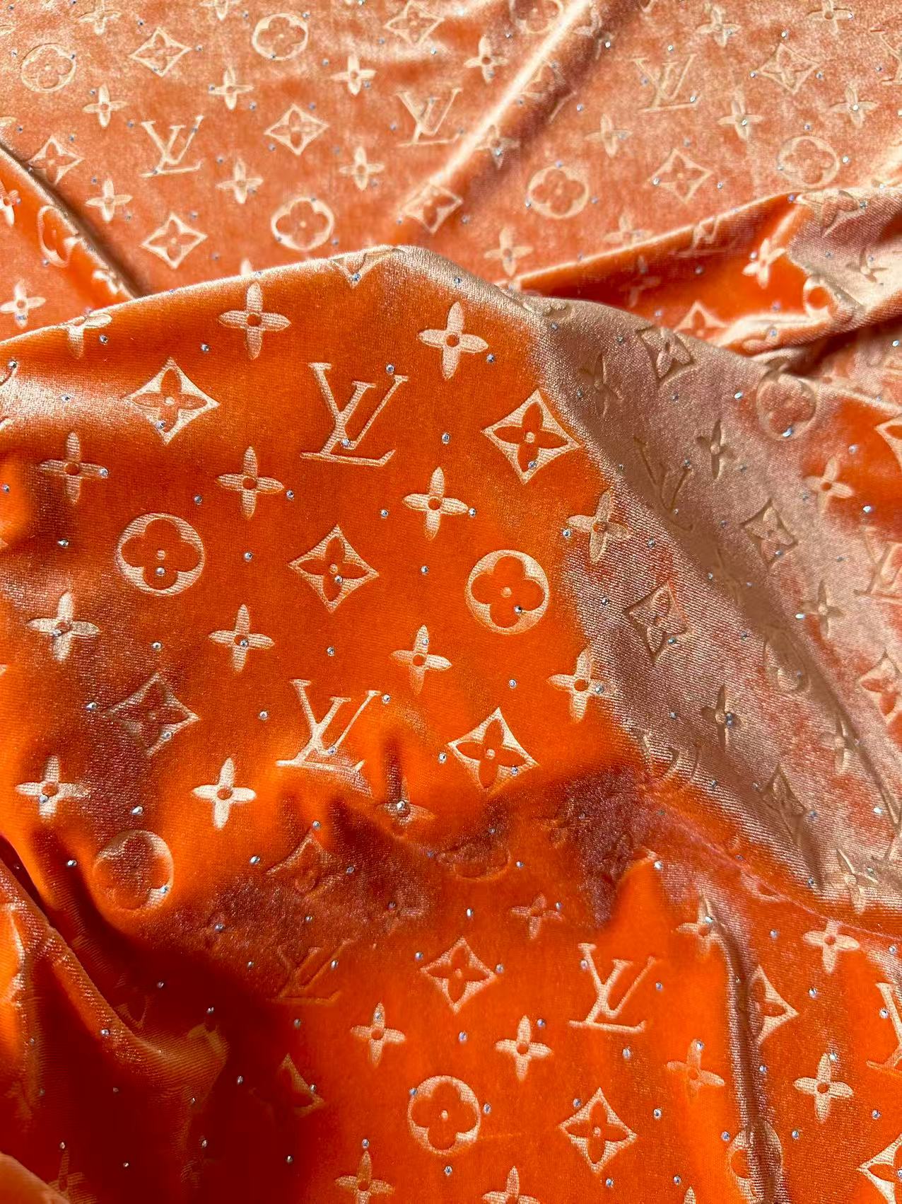 Fashion Luxury LV With Diamond Knitting Velvet Fabric For Handmade Sneaker, Upholstery ,Apparel By Yard(Orange)