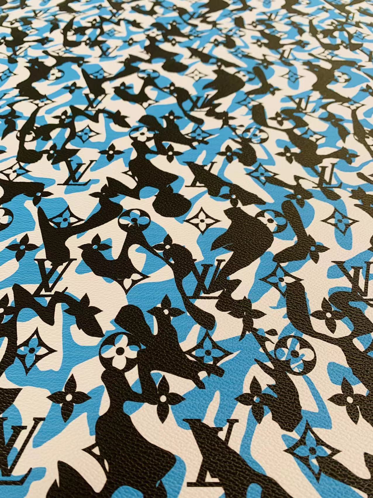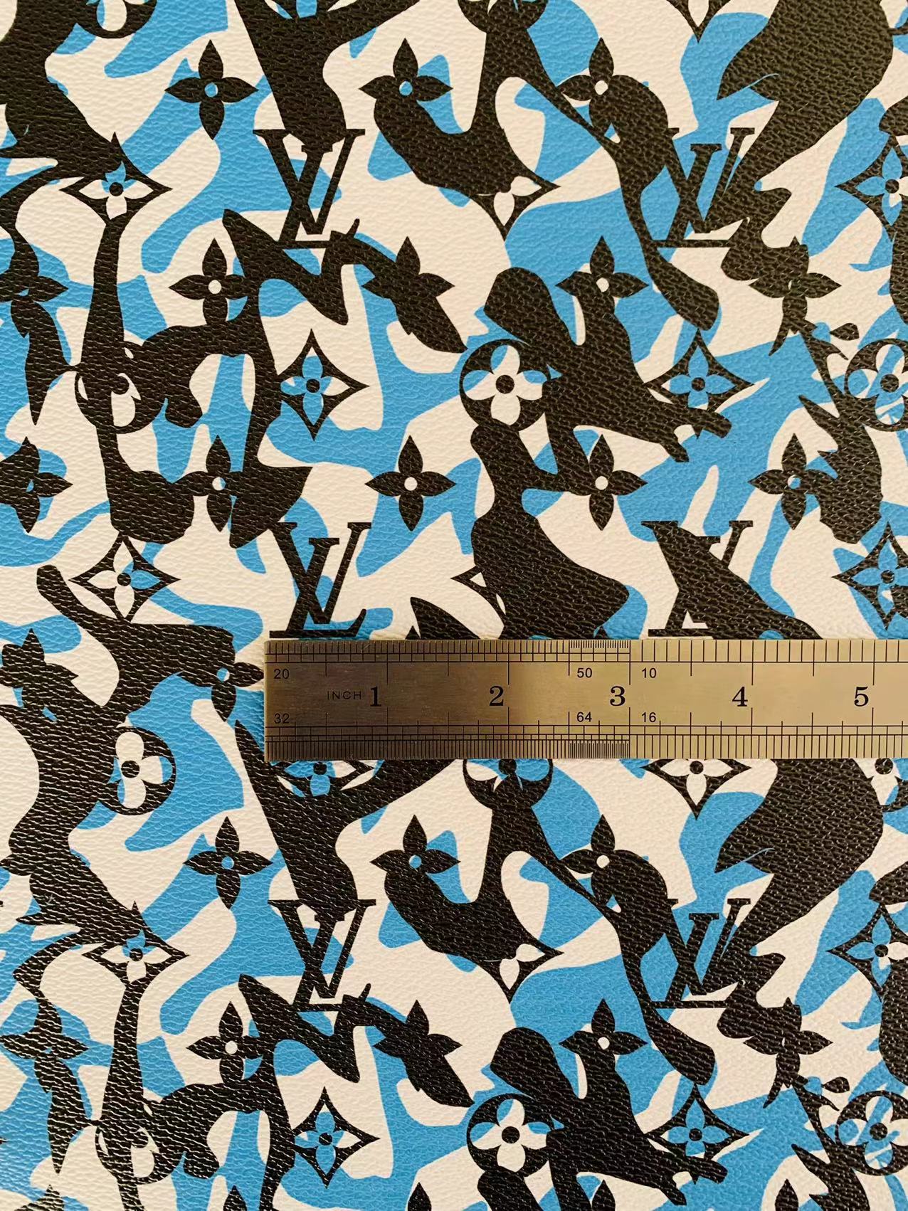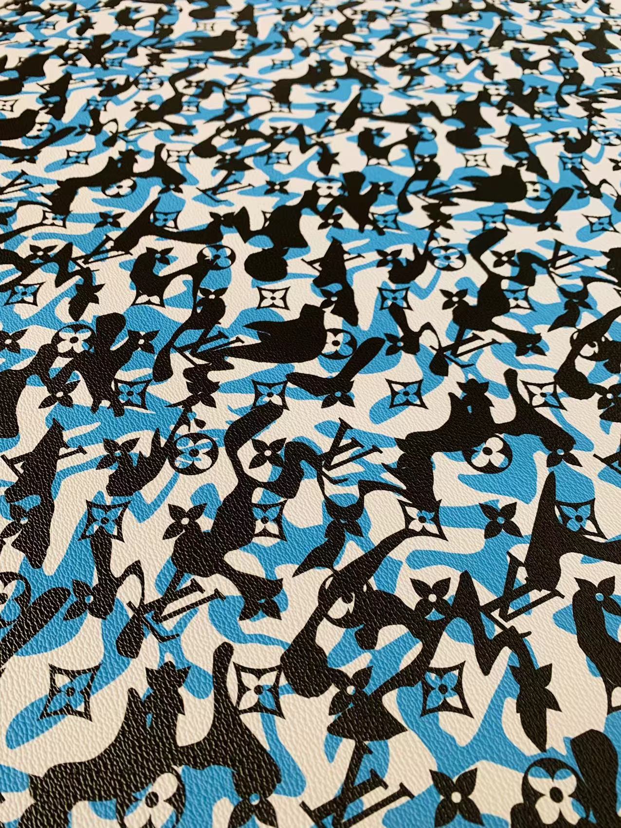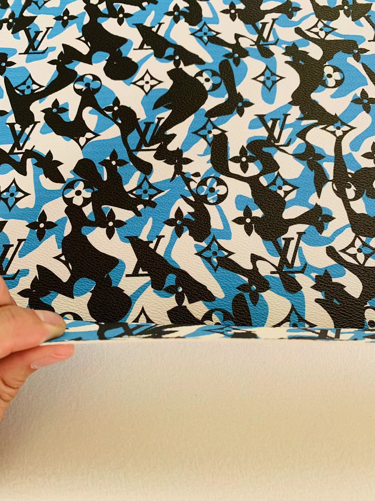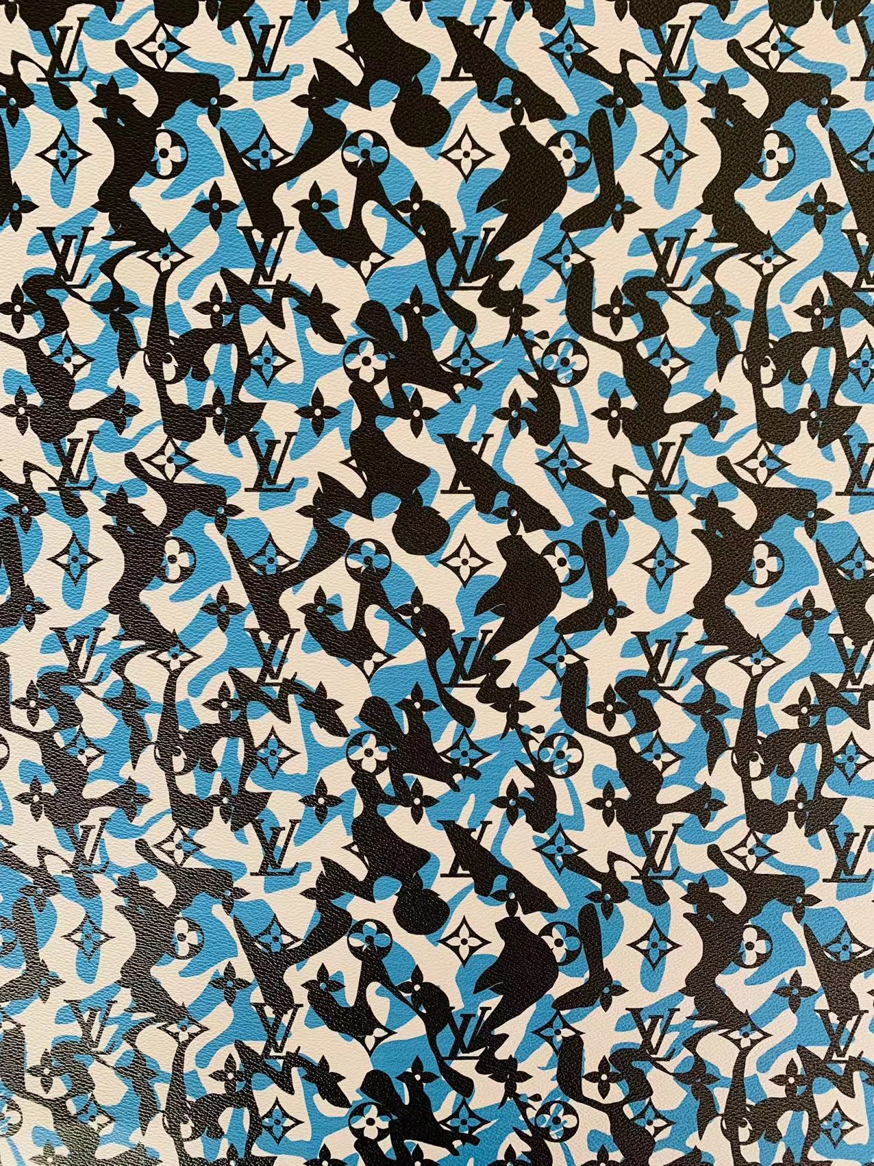 Fashion LV Blue White Black camouflage Leather Case Fabric,Handmade Bag Fabric, Shoes Leather Fabric By Yard