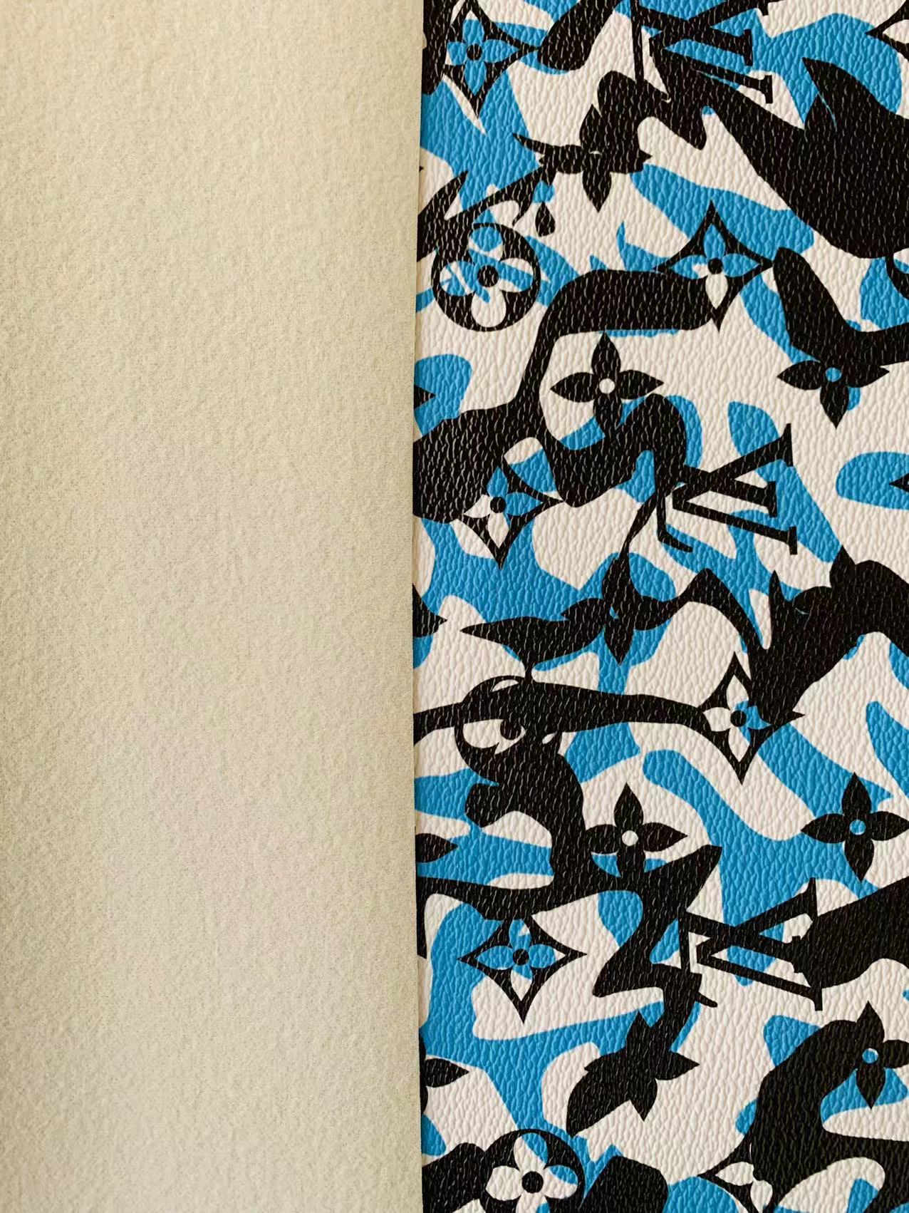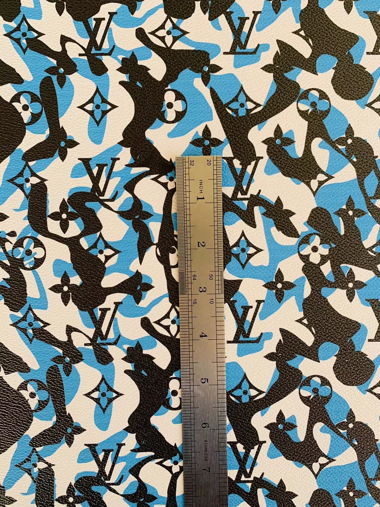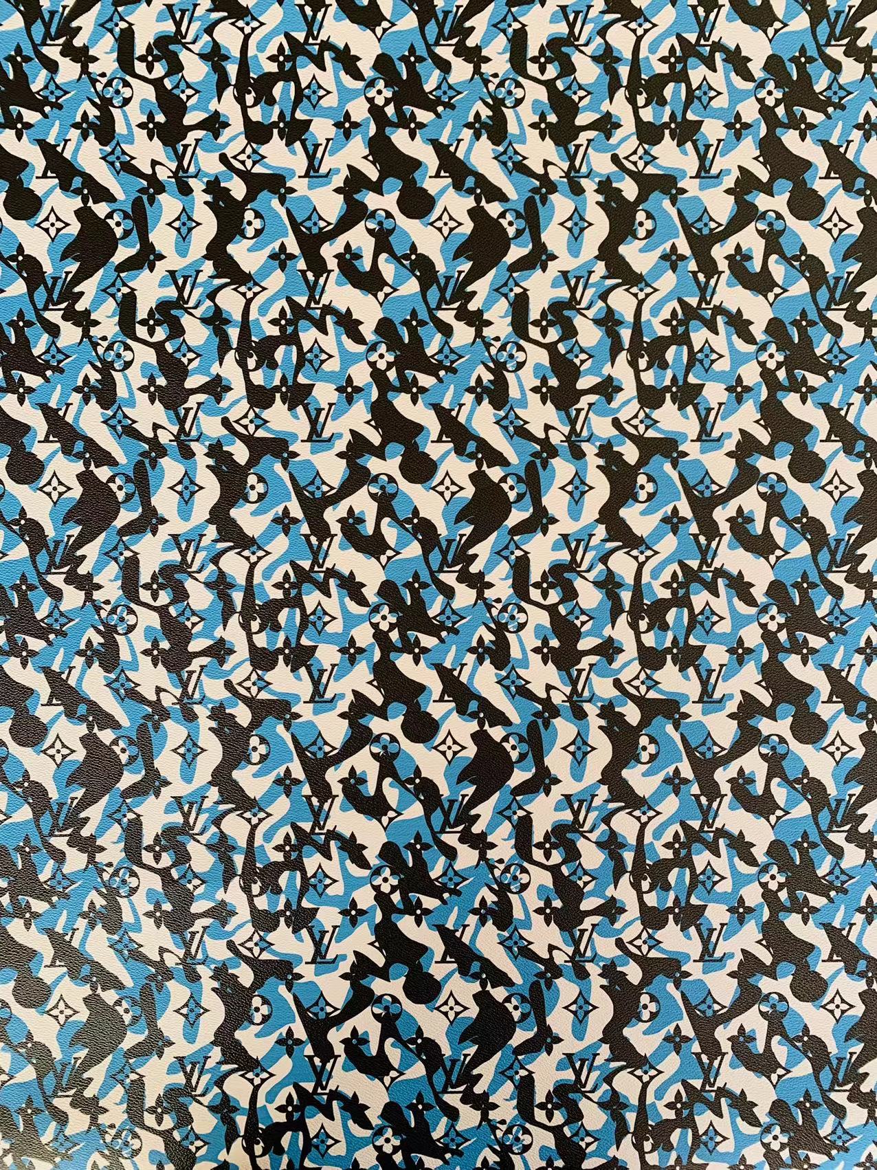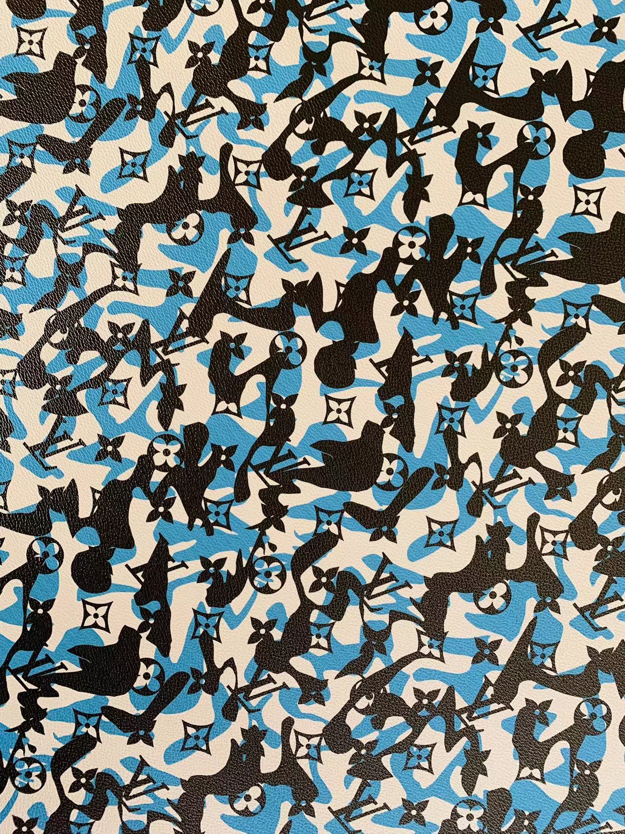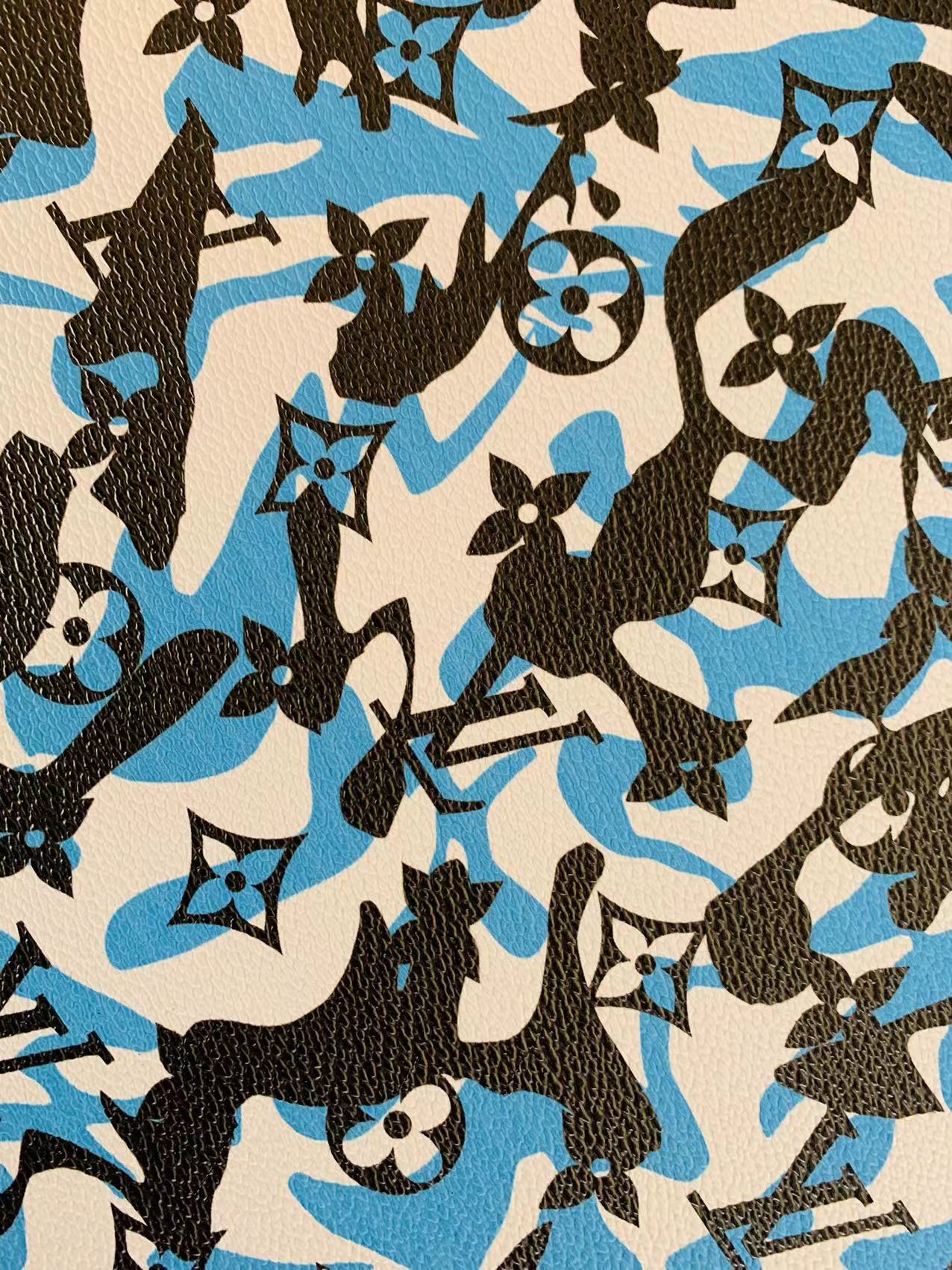 Fashion LV Blue White Black camouflage Leather Case Fabric,Handmade Bag Fabric, Shoes Leather Fabric By Yard