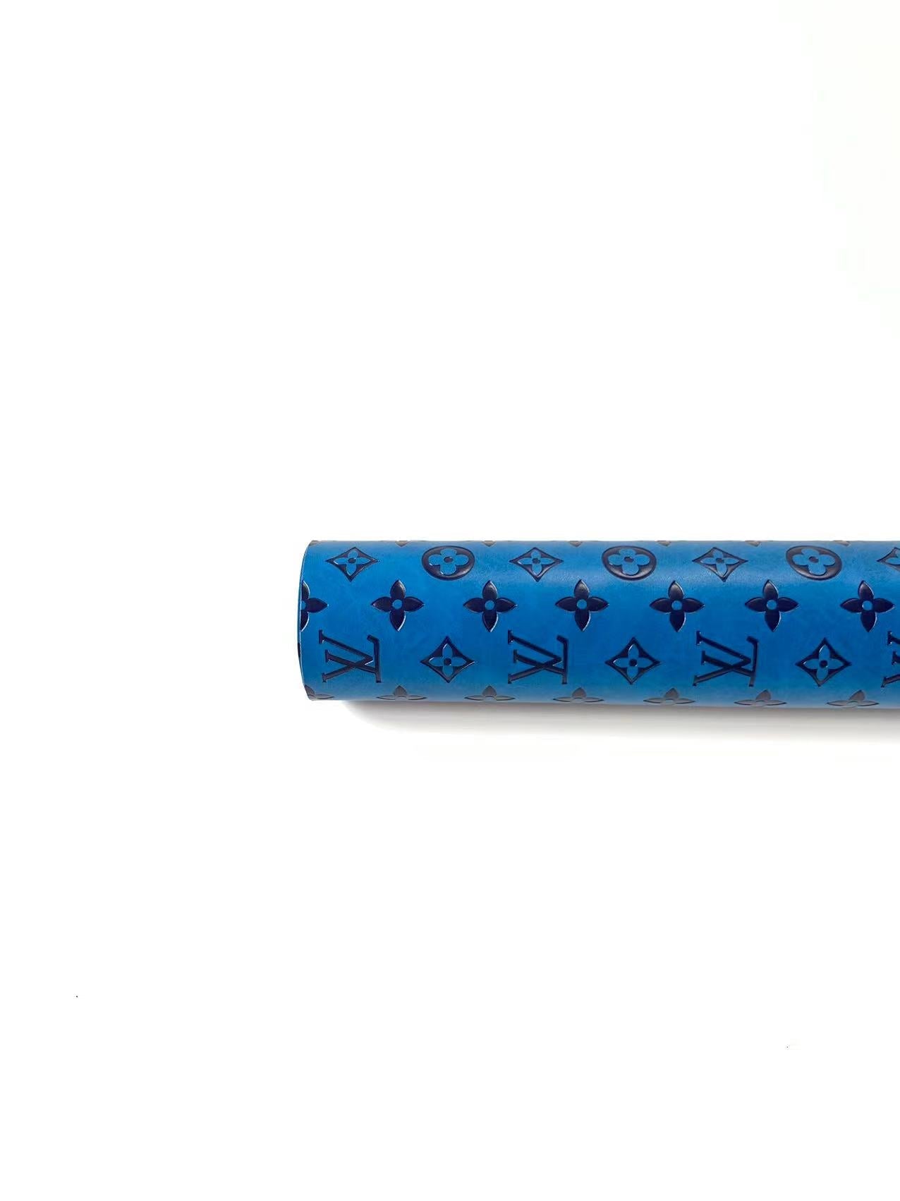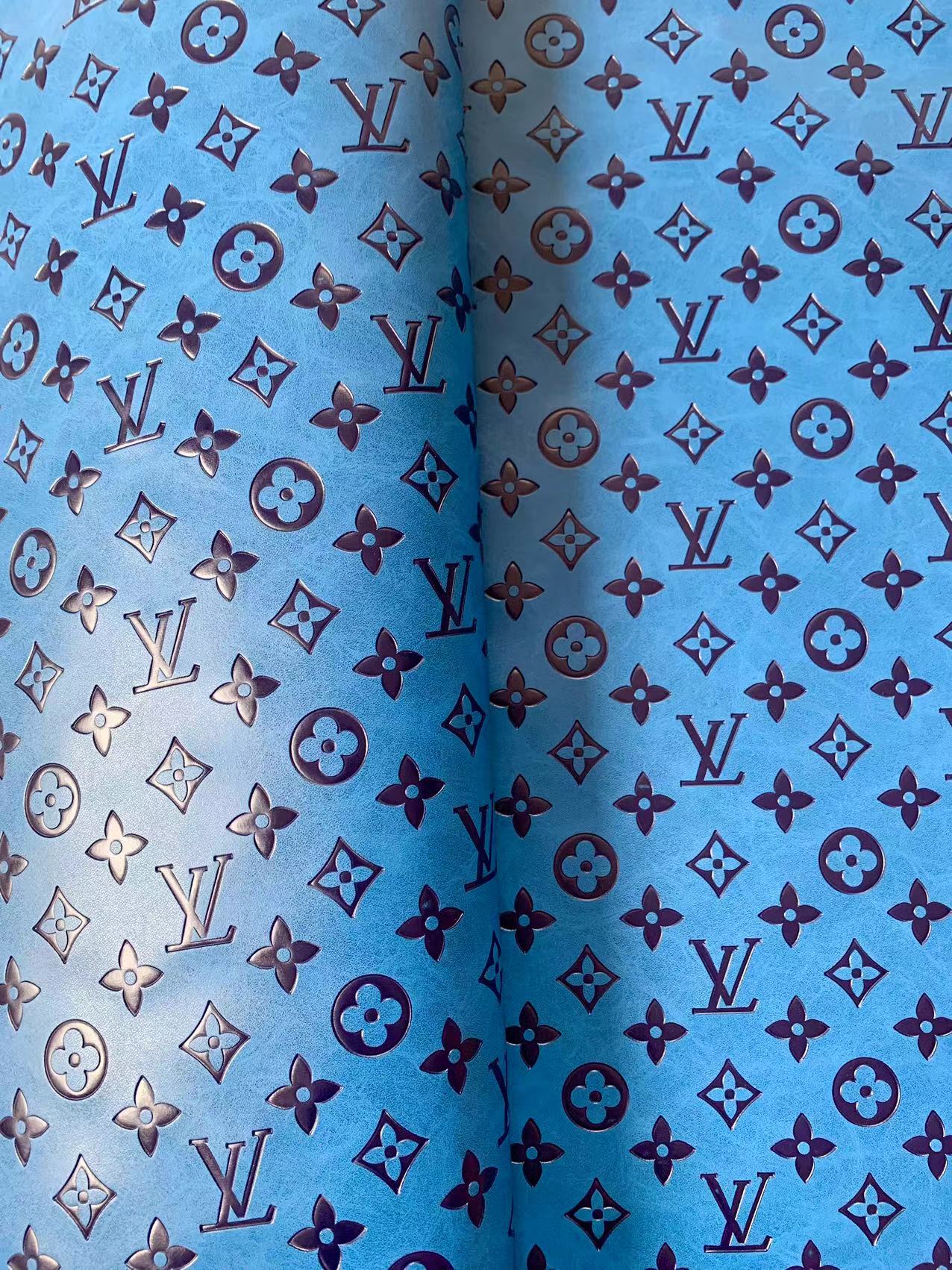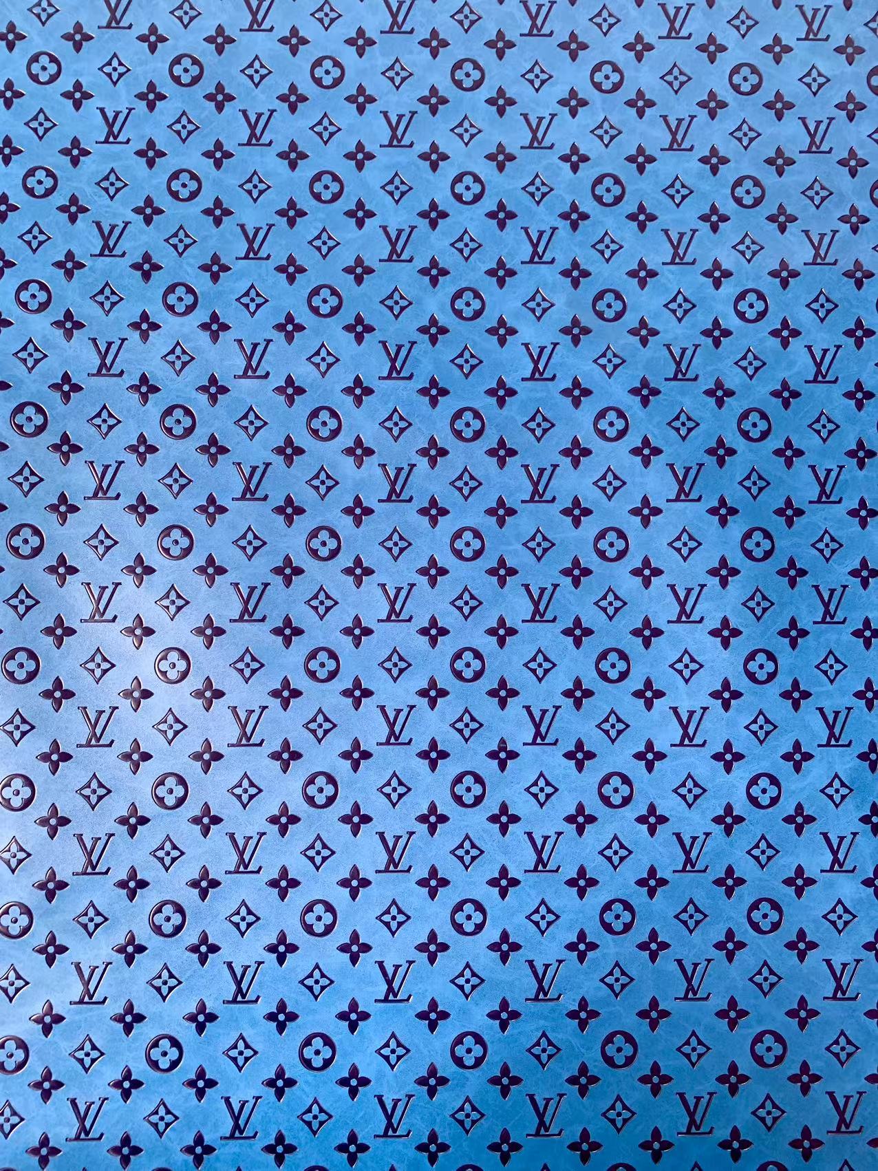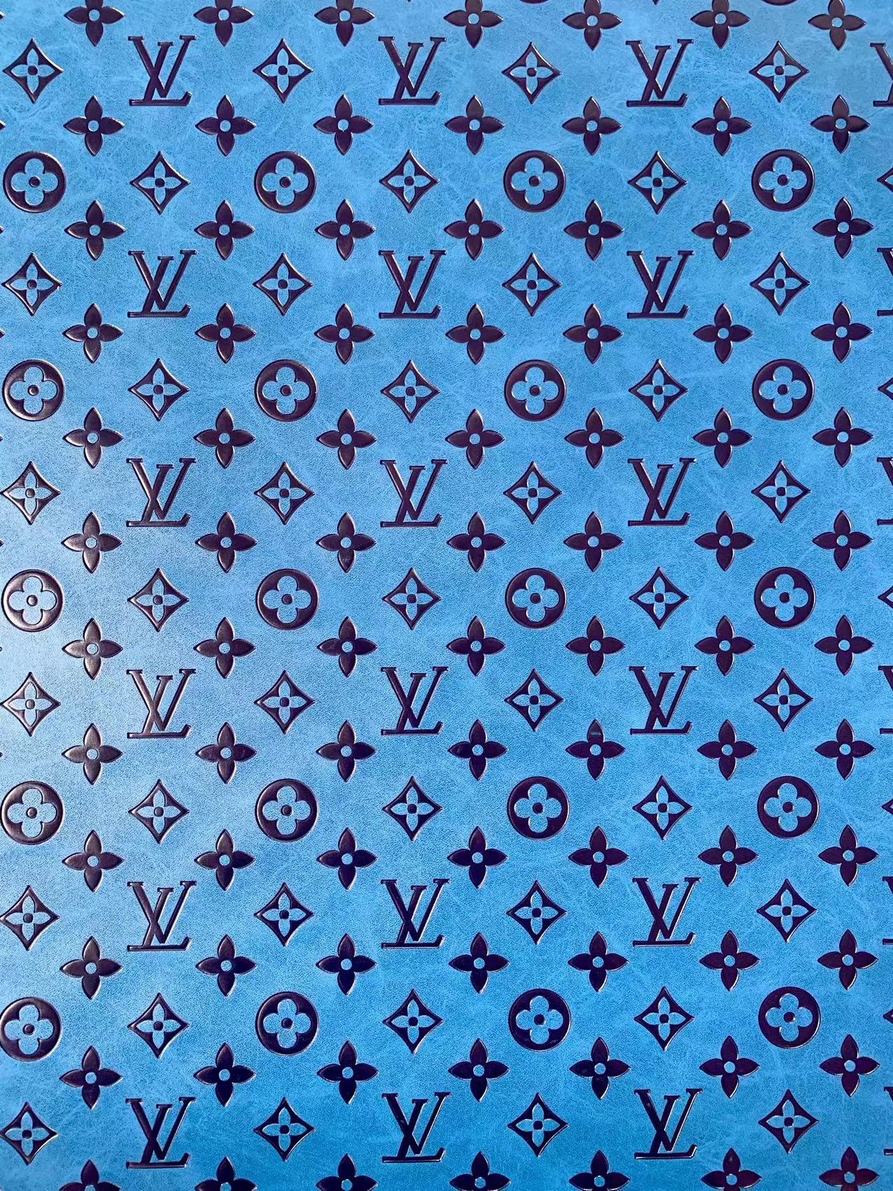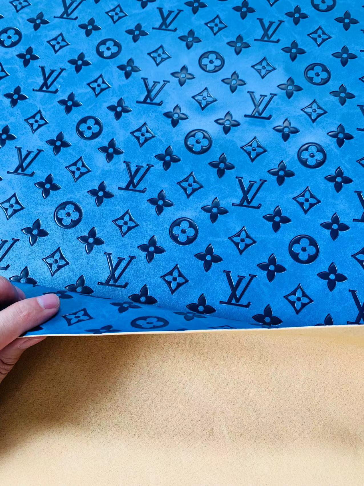 Fashion LV Vantage Embossed Leather Fabric For Handmade Handicrafts,DIY Shoes ,Customized Bags LV Design Leather By Yard (Blue)
