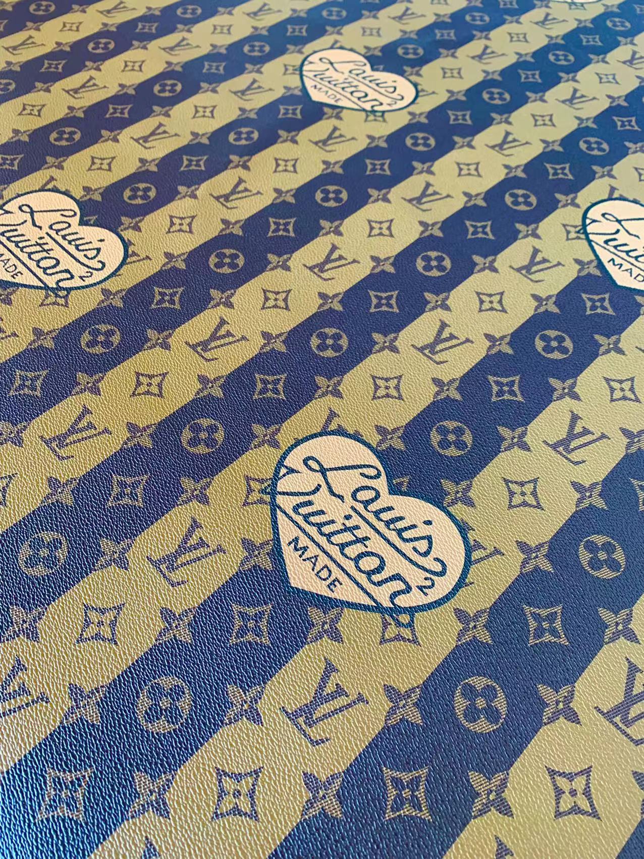 Fashion LV Yellow with Brown Stripe Leather Case Fabric,Handmade Bag Fabric,Hand-made Shoes Leather Fabric By Yard