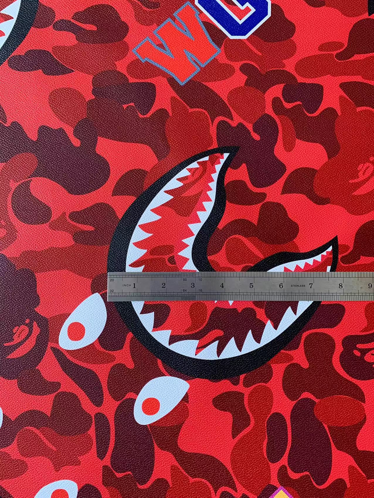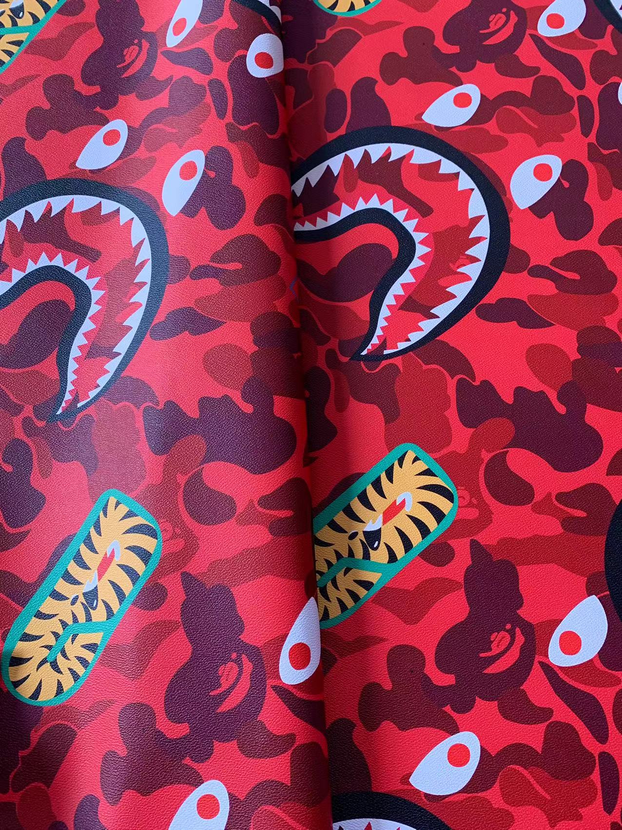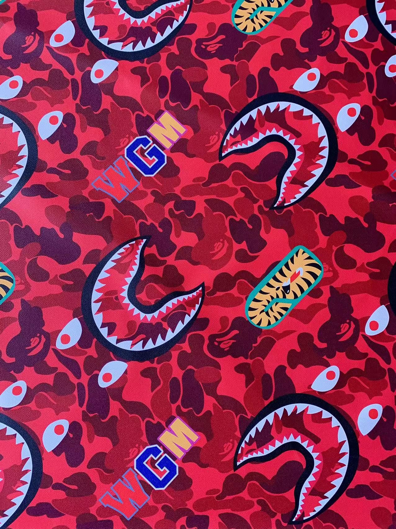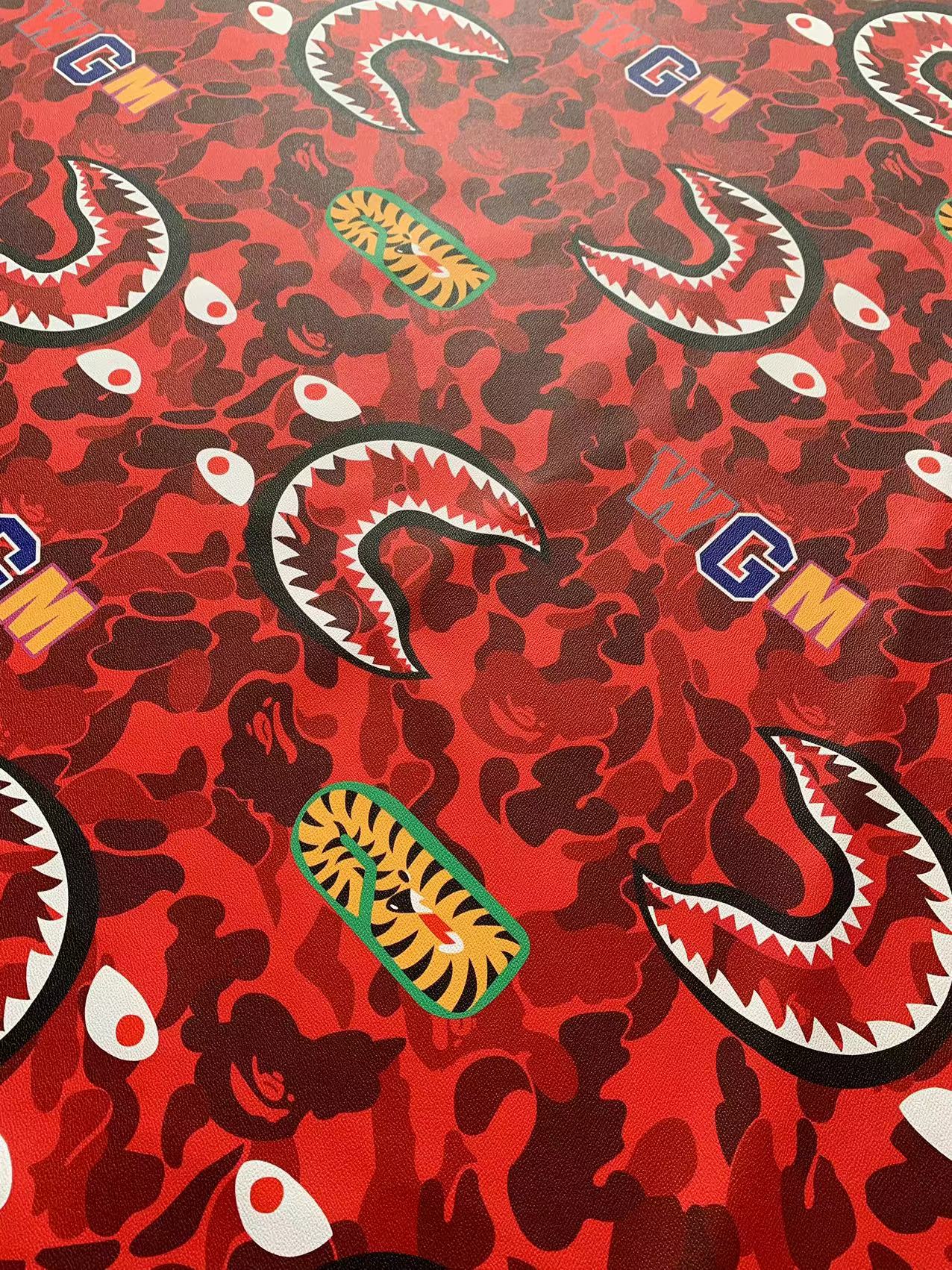 Fashion Red Bape Shark Teeth WGM Design Custom Leather Fabric For Bags Leather Shoes Custom Leather By Yard