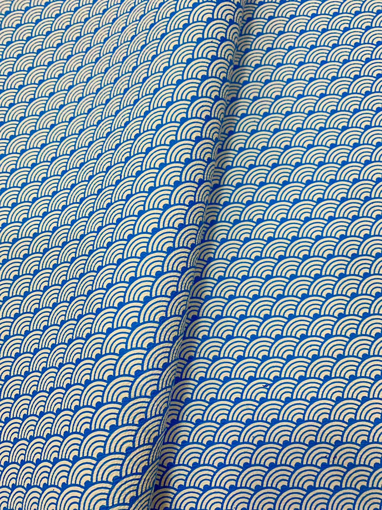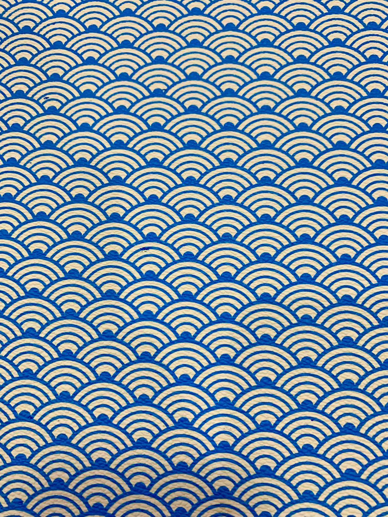 Fashion Sky Blue and Brown Wave Design Leather Fabric For Handmade Goods