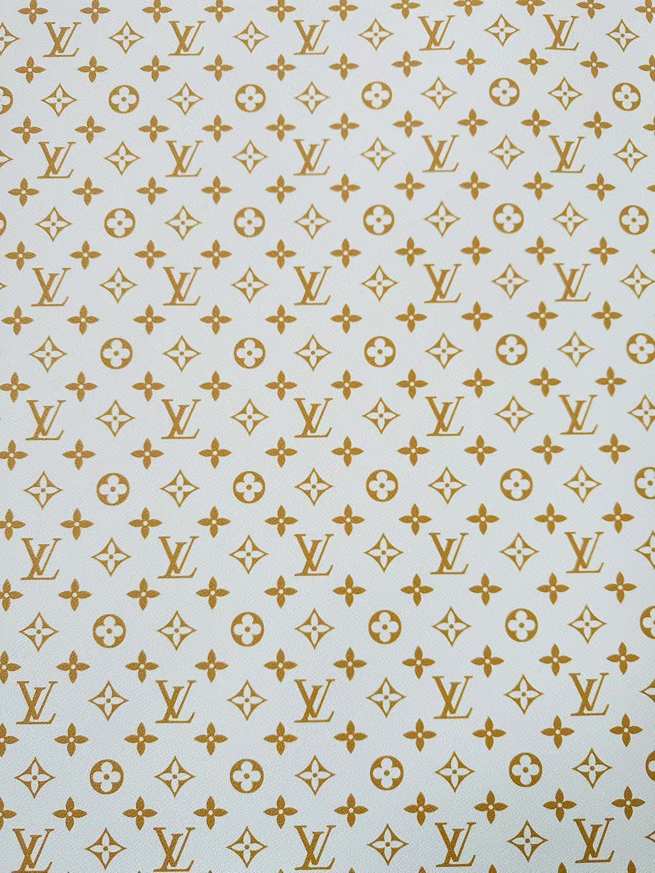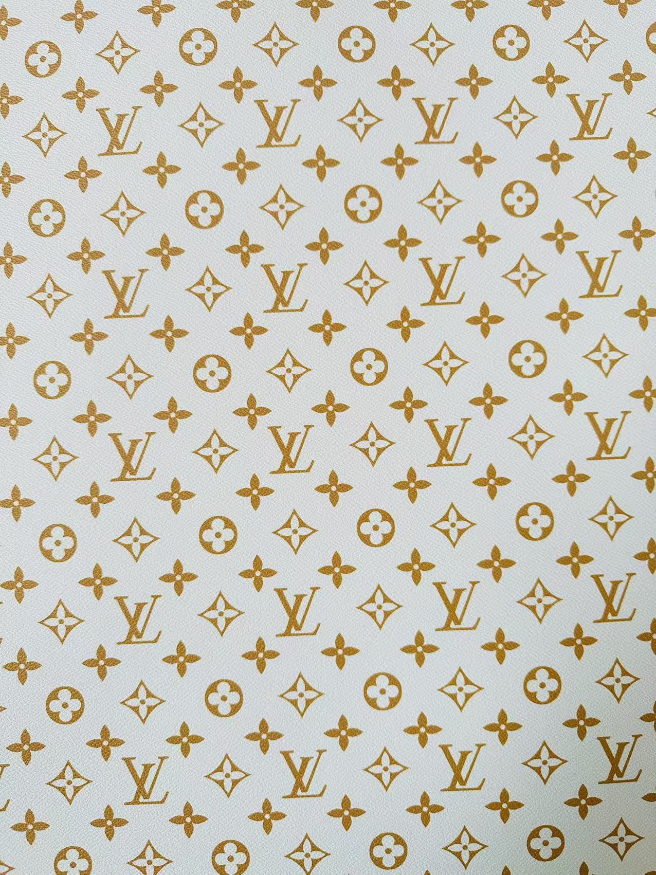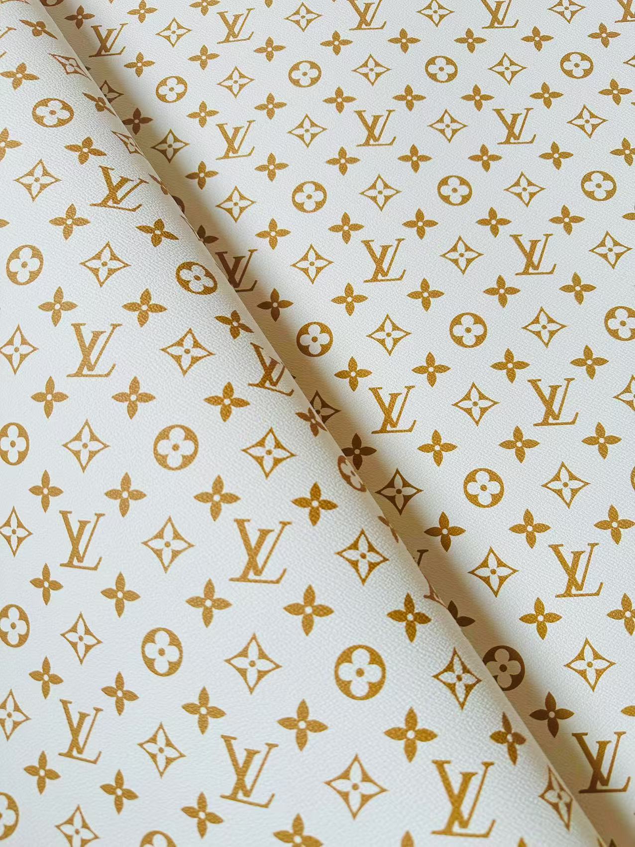 Fashion White With Gold LV Vinyl Leather For Handmade Sneaker, Upholstery Handicraft By Yard