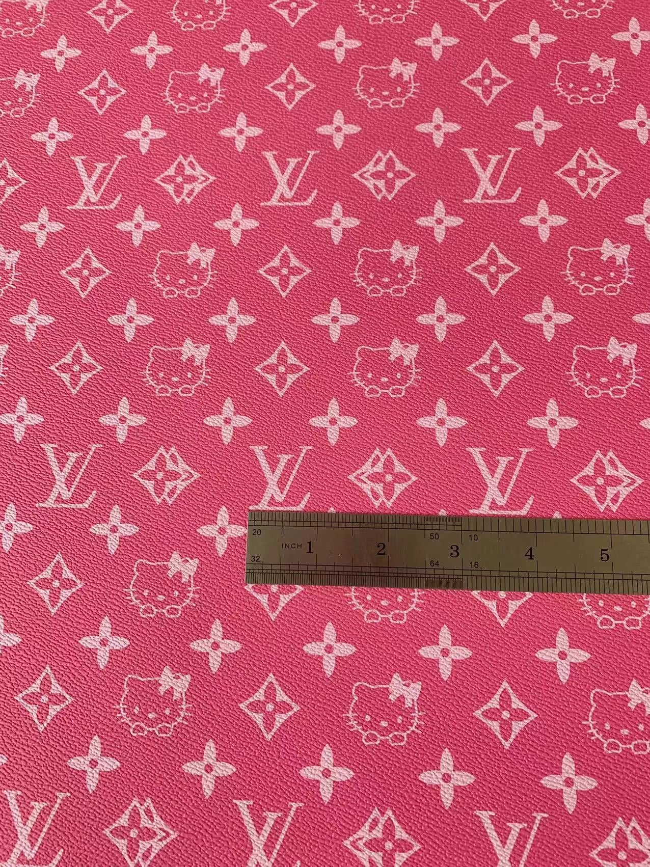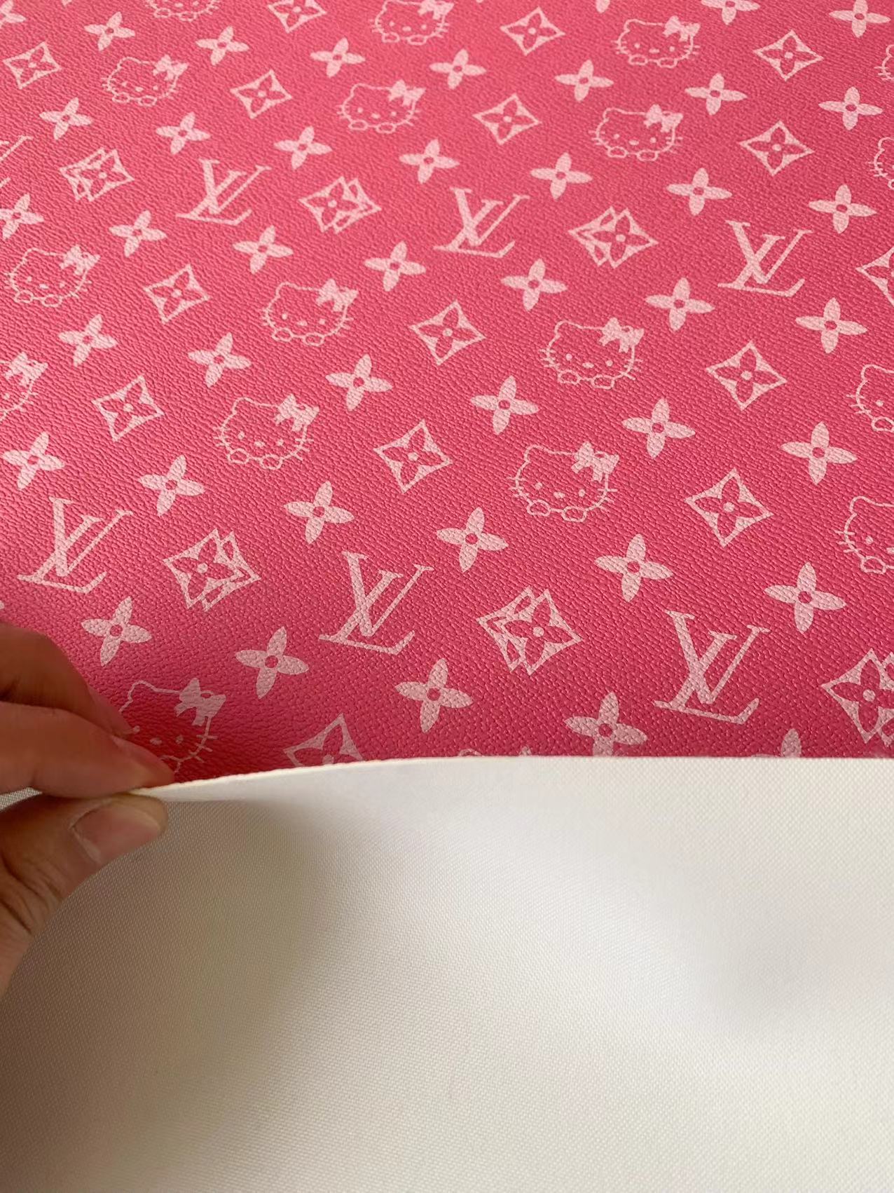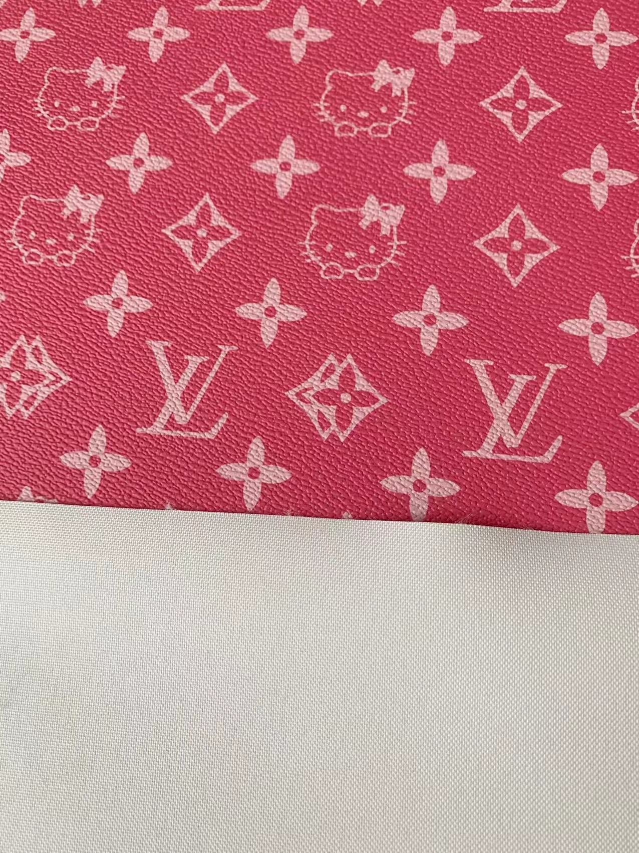 Fashion White With Pink LV Hello Kitty Vinyl Leather For Bag ,Shoes ,Handicraft Upholstery By Yards