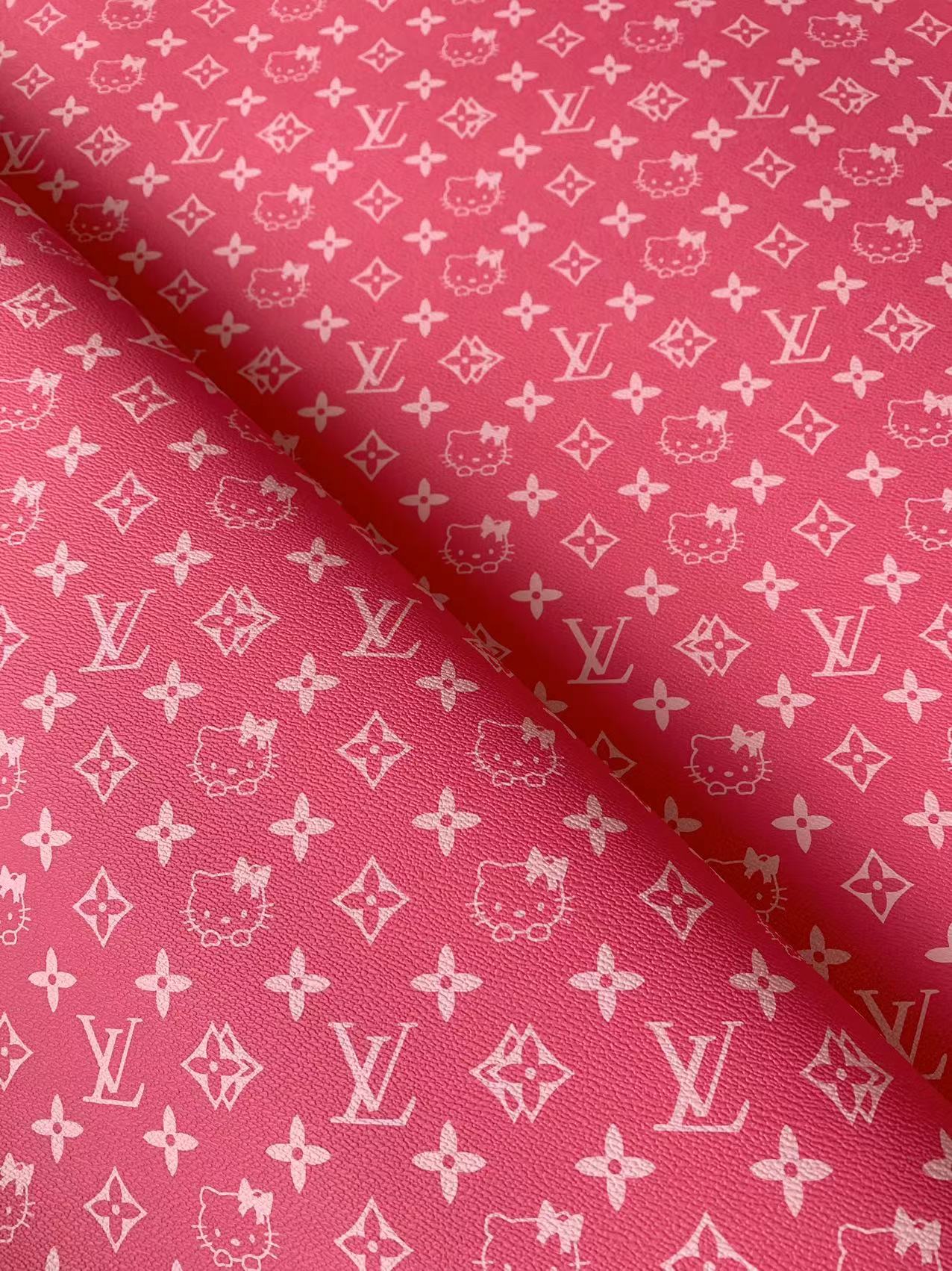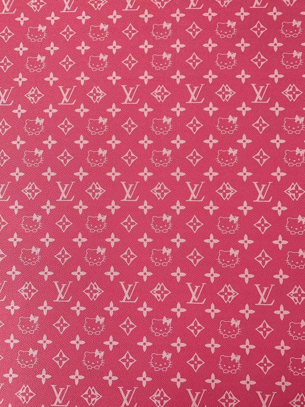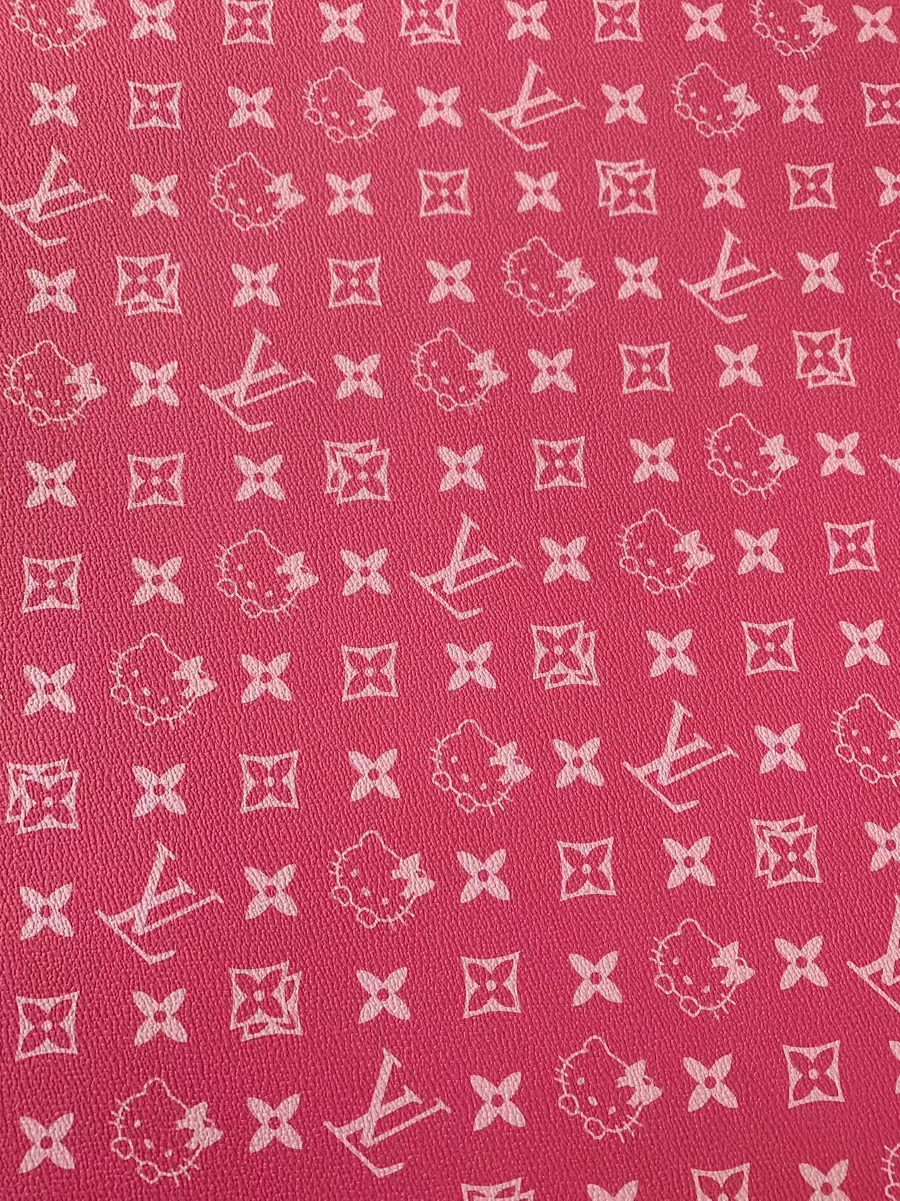 Fashion White With Pink LV Hello Kitty Vinyl Leather For Bag ,Shoes ,Handicraft Upholstery By Yards