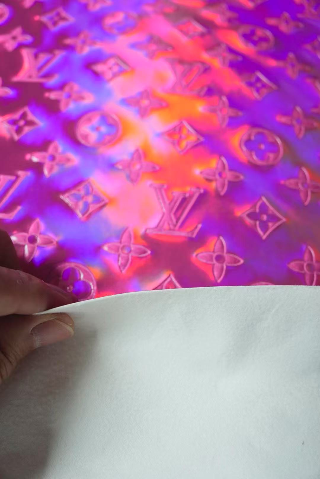 Jewelry Rose Red Embossed LV Crafting Lacquer Leather Fabric For Handmade Bags ,Shoes and DIY Handicrafts By Yards